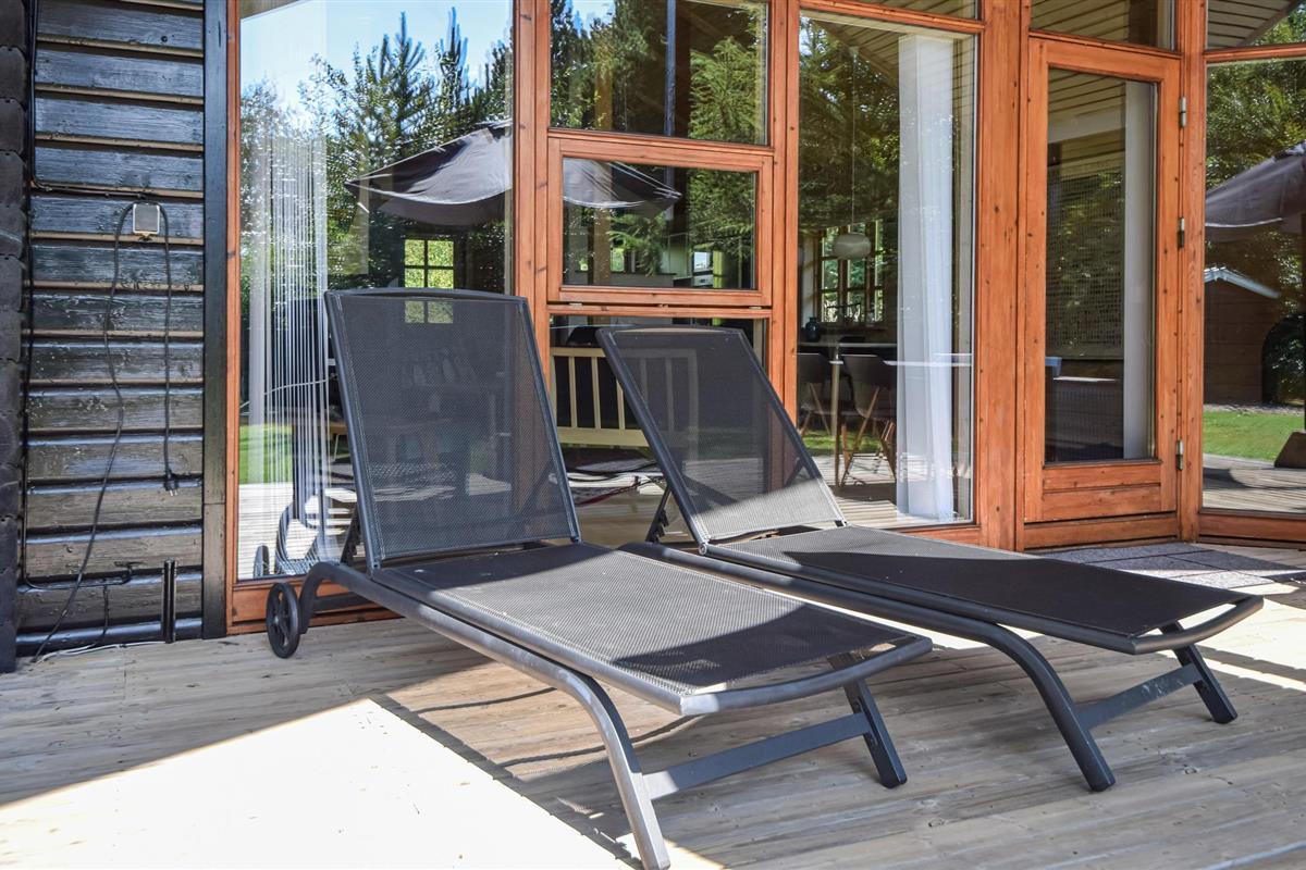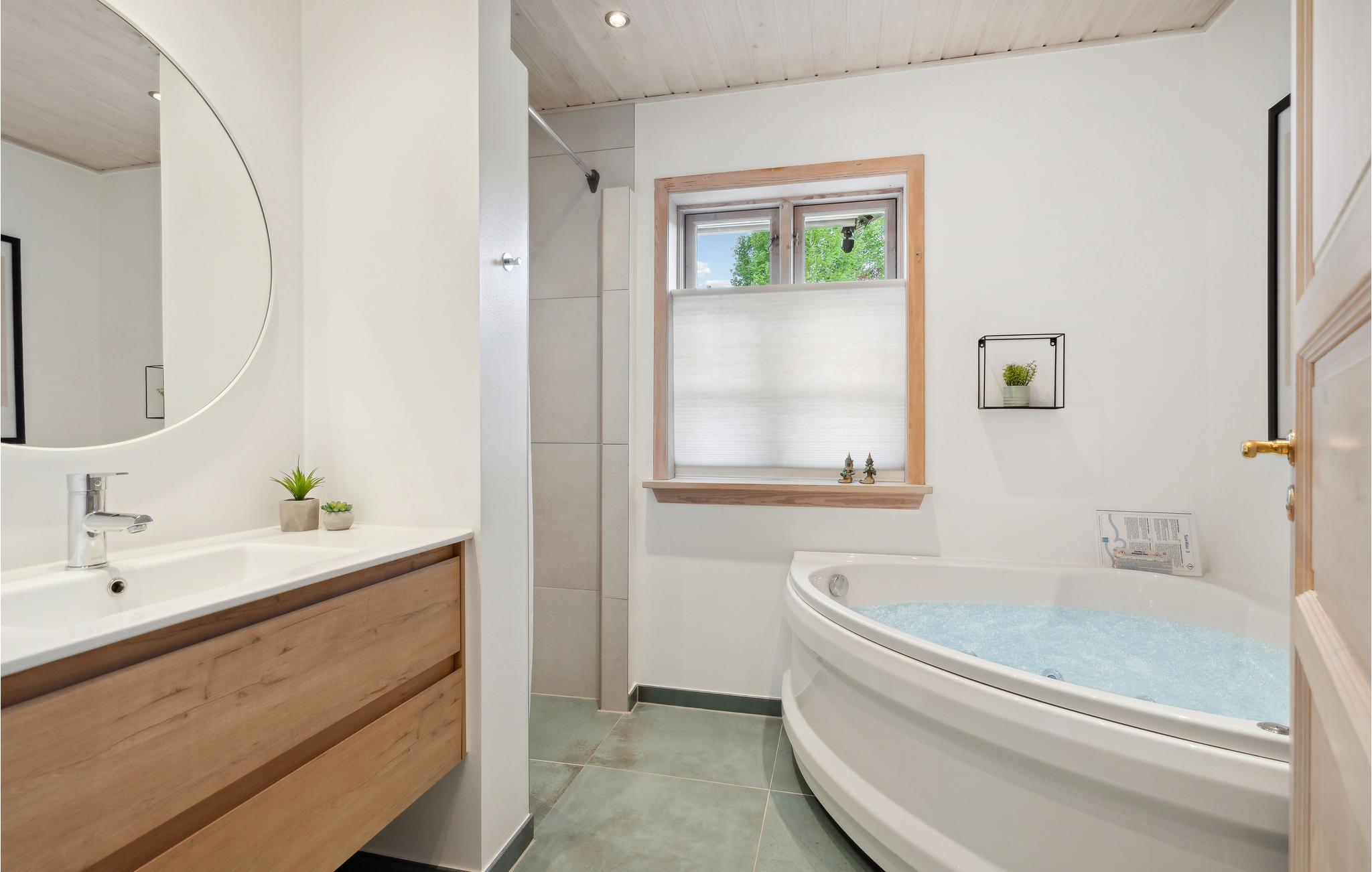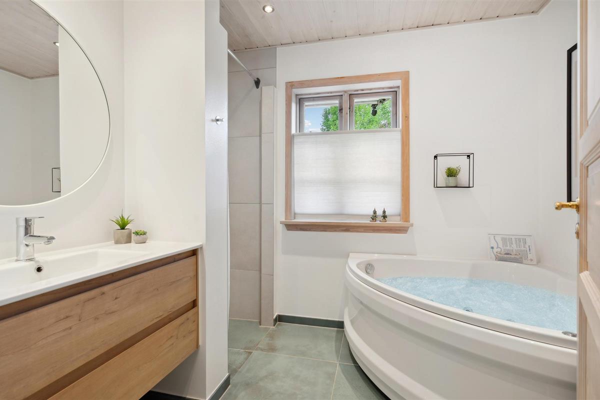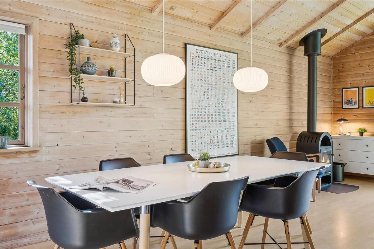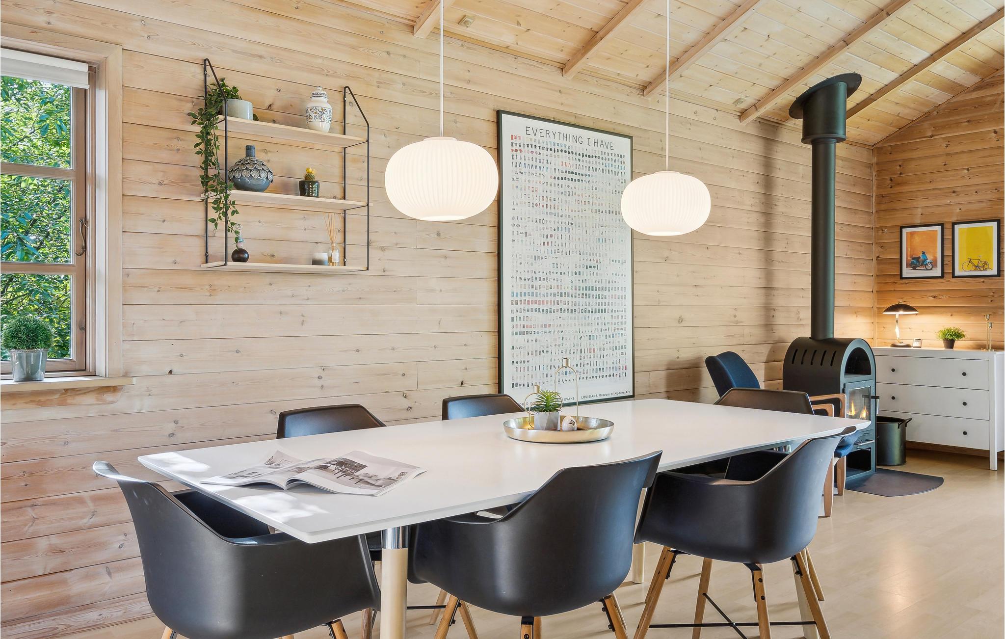 Zeer gezellig en bijzonder houten vakantiehuis op een groter, omheind en ongestoord perceel met een in de grond verankerde trampoline. Mooie, ruime keuken-woonkamer met uitgang naar het gedeeltelijk overdekte terras, waar u tot laat in de avond na het vallen van de dauw kunt zitten. In de grote badkamer met vloerverwarming kunt u heerlijk ontspannen in de whirlpool. Er zijn drie slaapkamers - twee daarvan zijn uitgerust met tweepersoonsbedden, één met eenpersoonsbedden. Er is een warmtepomp en een houtkachel om de energiekosten laag te houden. Het huis ligt aan het einde van een grindweg met zeer weinig verkeer. Korte wandeling naar de activiteiten en het winkelcentrum in het dorp.
