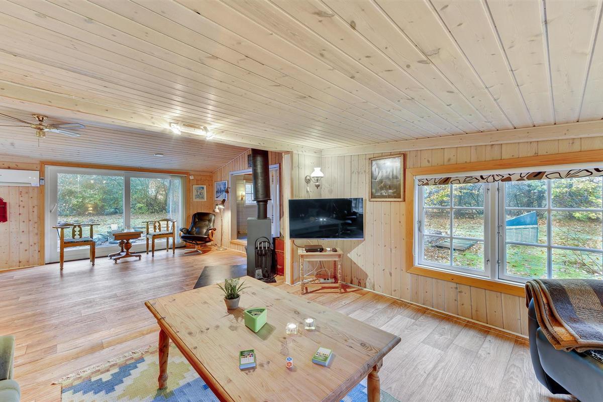Een grote, gezellige keuken met eethoek wacht op u, waar u van elkaars gezelschap kunt genieten terwijl de maaltijden worden bereid en anderen aan de eettafel spelen. Kijk uit naar ontspanning voor de kachel met een goed boek op kille avonden.