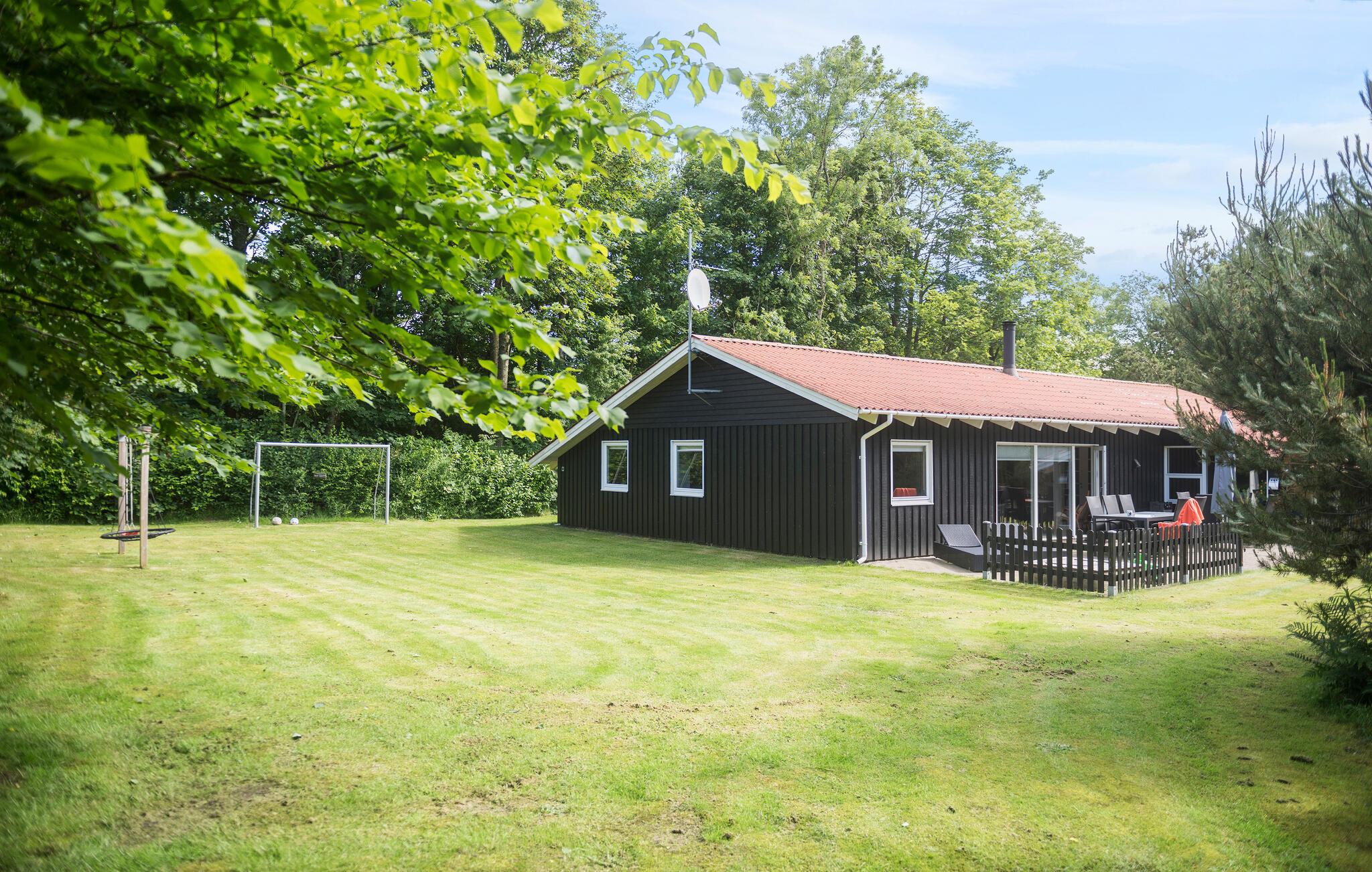 Gezinsvriendelijk vakantiehuis in Jegum Ferieland met zwembad, sauna, bubbelbad en grote tuin voor ontspanning en plezier.