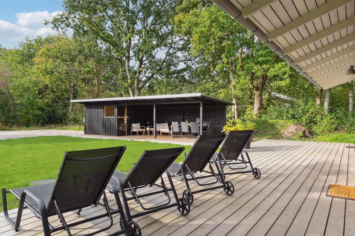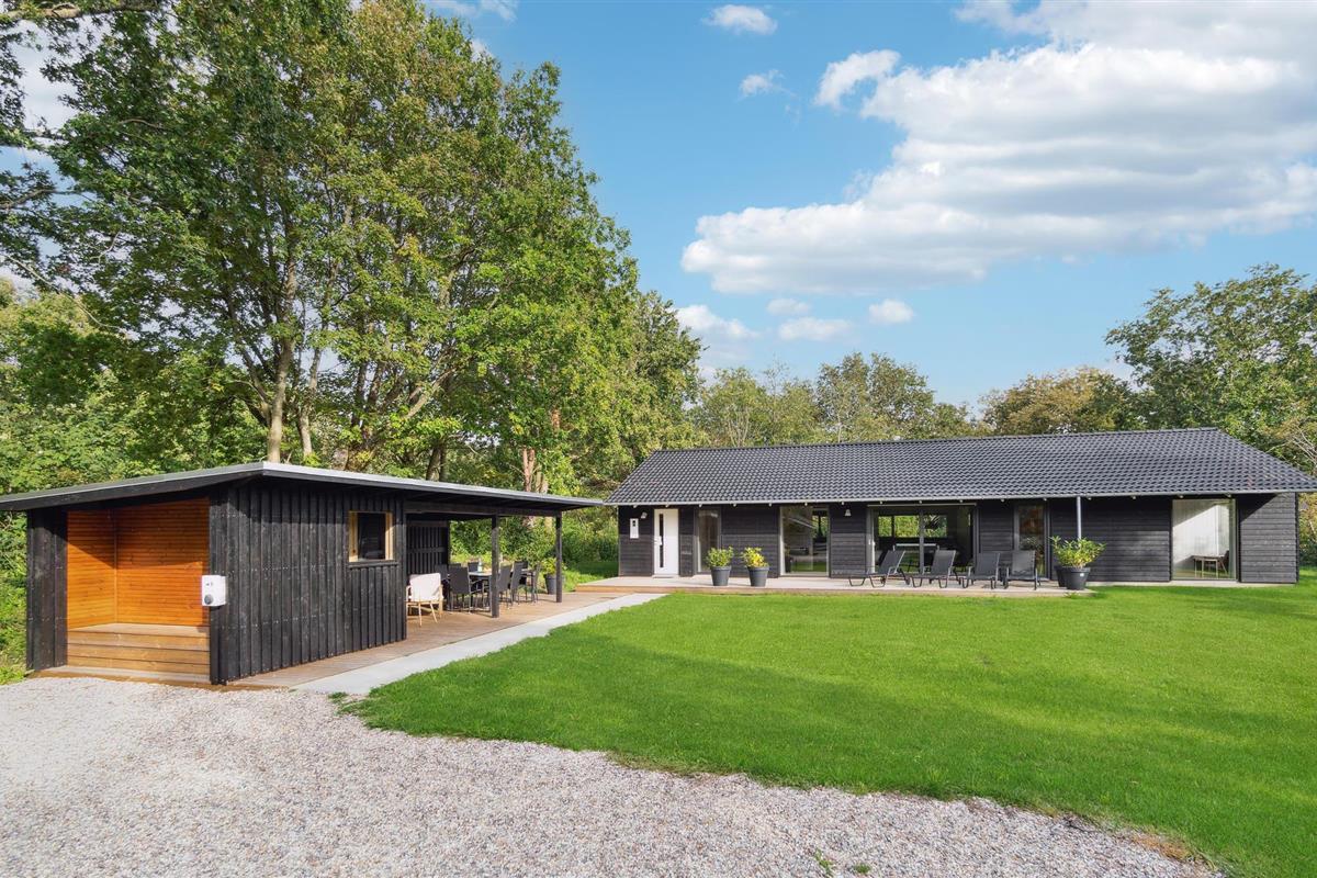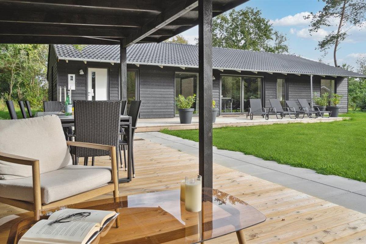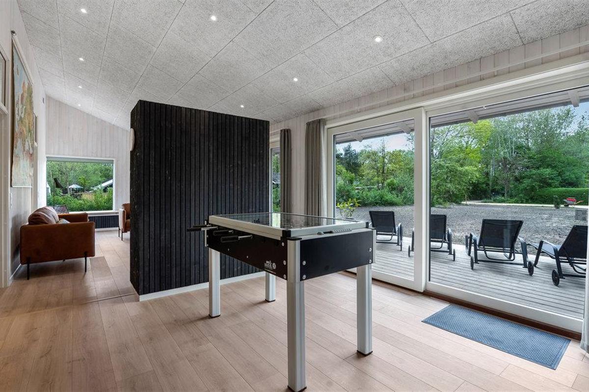 Modern vakantiehuis met outdoor wellness, sauna, pooltafel en barbecue, perfect voor een ontspannen familie-uitje.