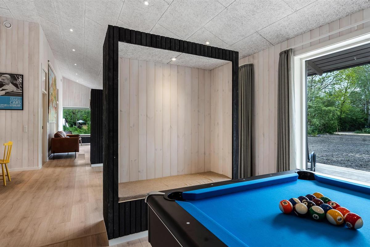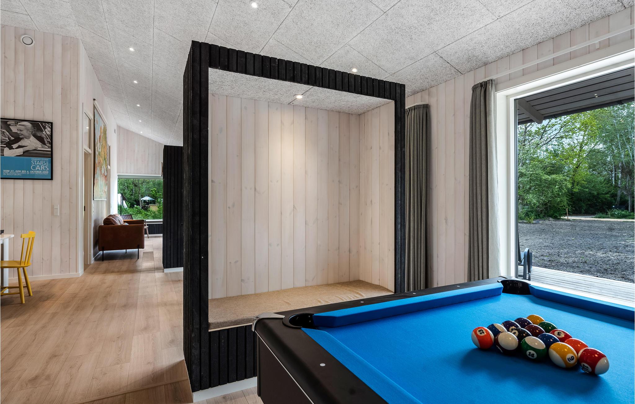 In het lichte huis is er alles aan gedaan om ervoor te zorgen dat u hier met het hele gezin een heerlijke tijd buiten kunt doorbrengen. De moderne en huiselijke inrichting maken het een gezellige plek waar u rust kunt vinden en de drukte van alledag achter u kunt laten. Geniet van gezamenlijke maaltijden en ontspannen avonden in de woonkamer, waar u plaats kunt nemen op de bank, samen een film kunt kijken of een familietoernooi kunt uitvechten aan de pooltafel met een prachtig uitzicht op het buitenleven.