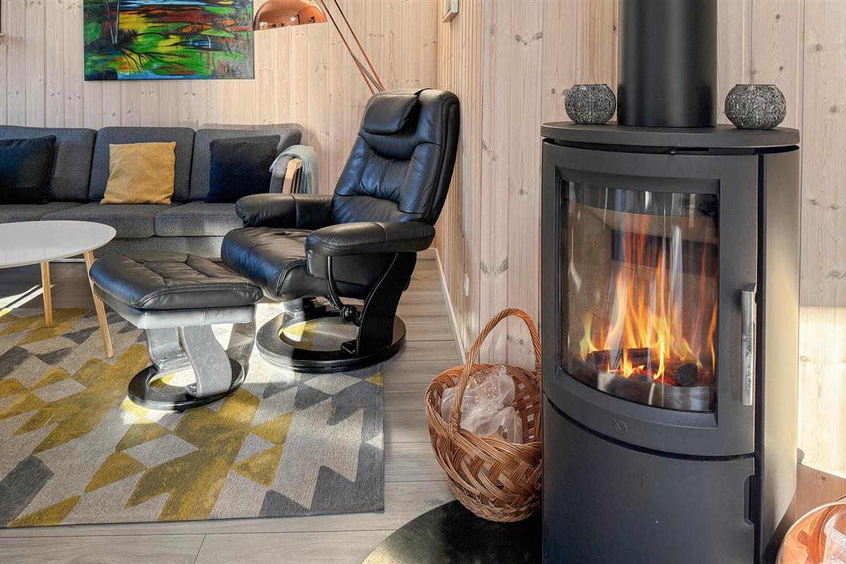 Dit huis maakt indruk met zijn gezellige elegantie en liefdevol geselecteerde details. Ramen van vloer tot plafond laten veel daglicht binnen terwijl je geniet van een prachtig uitzicht op de natuurlijke omgeving. Een comfortabele zithoek nodigt je uit om gezellige uurtjes door te brengen met kletsen of lezen en als de dagen koeler worden, kun je de houtkachel aansteken voor knusse warmte.