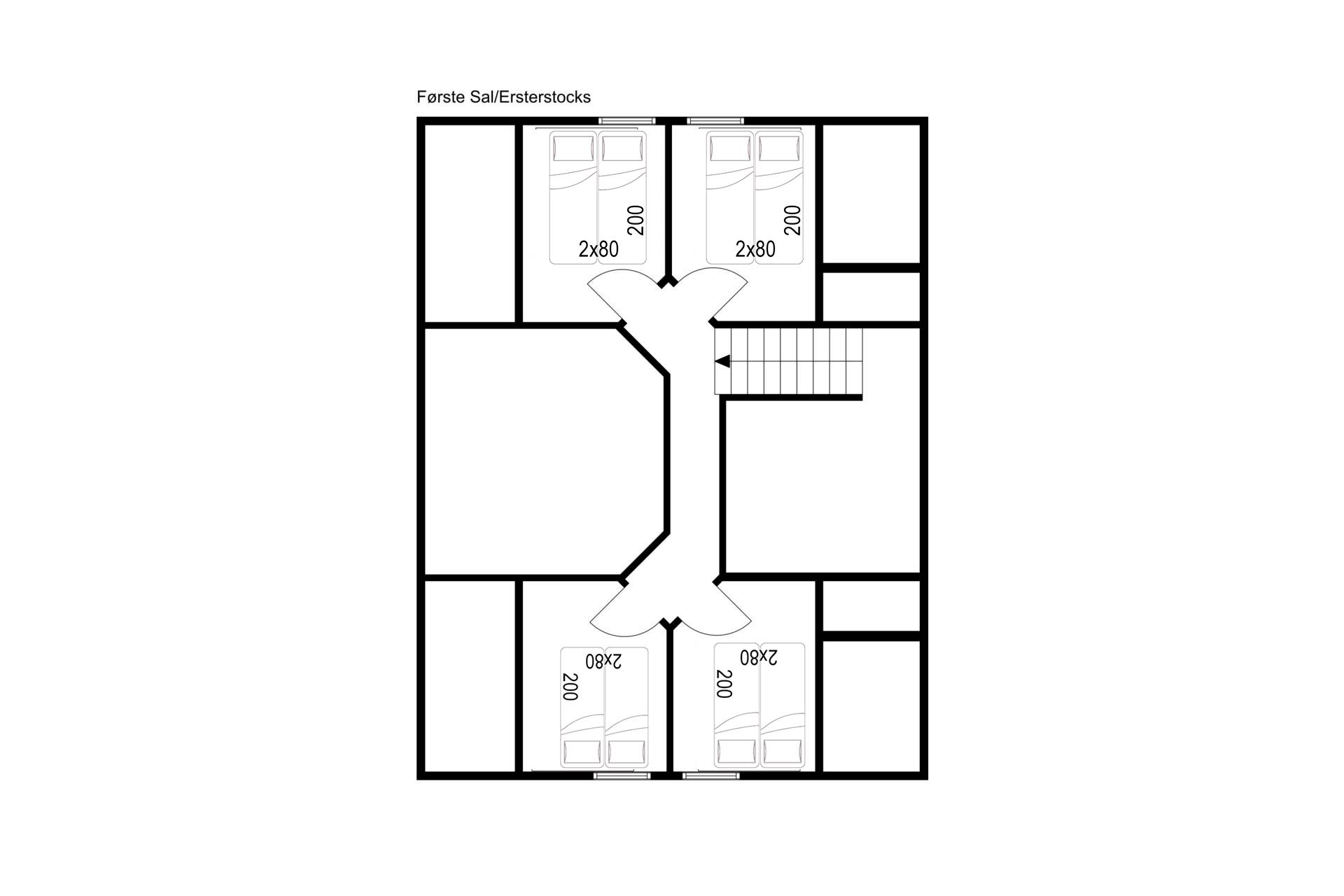 Bettengröße: 6 Doppelbetten mit je 2 Matratzen á 80 x 200 cm.