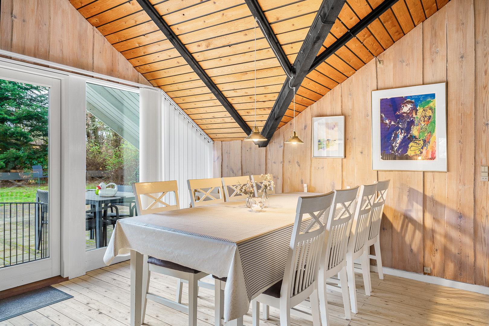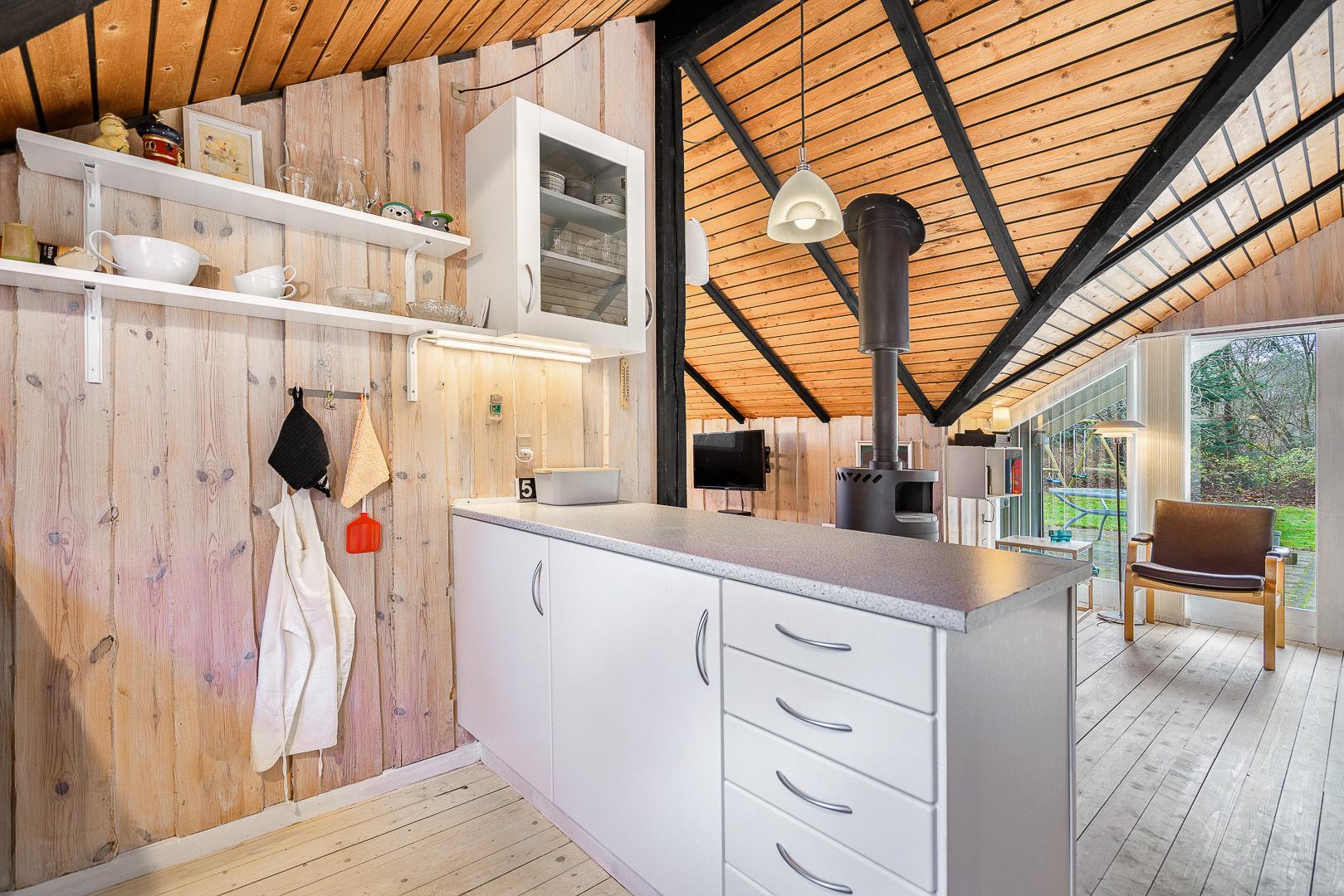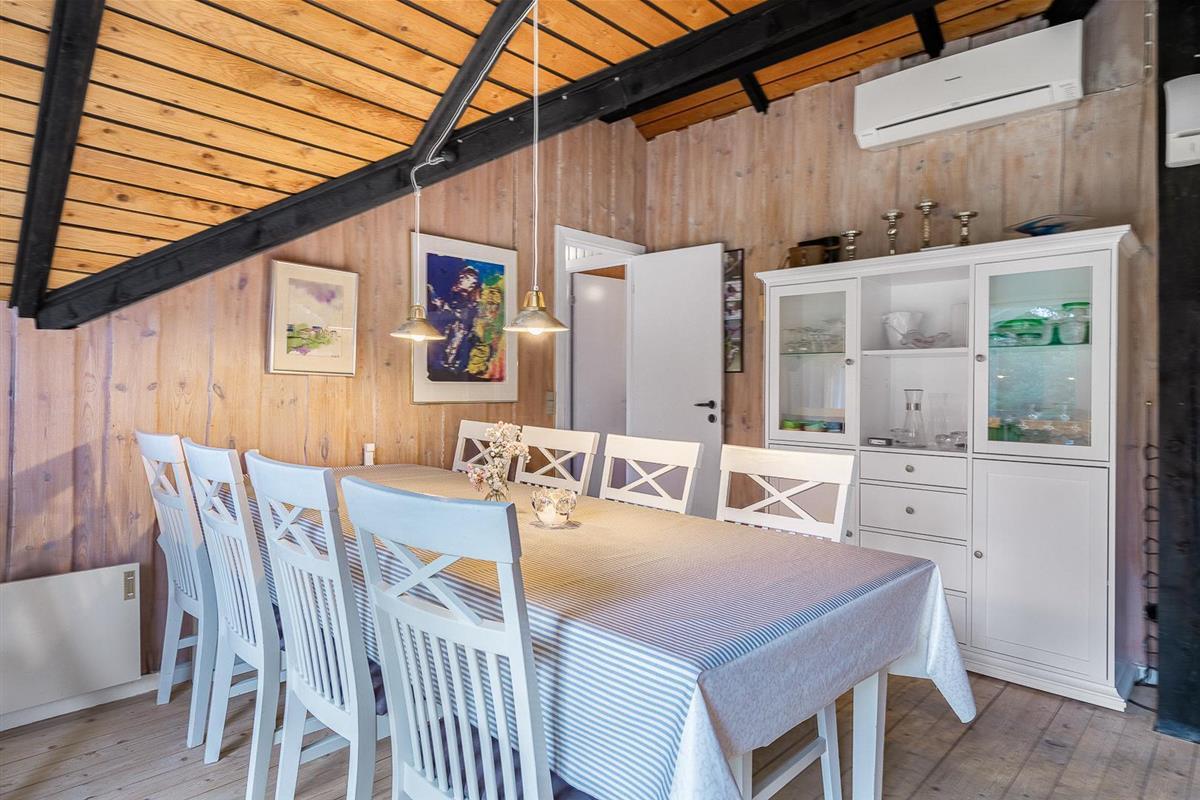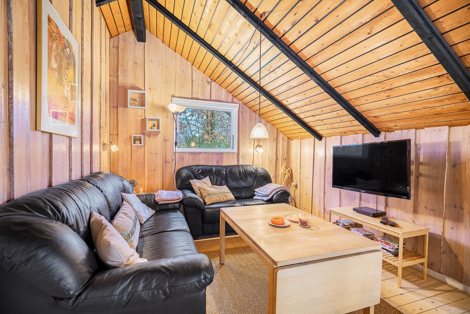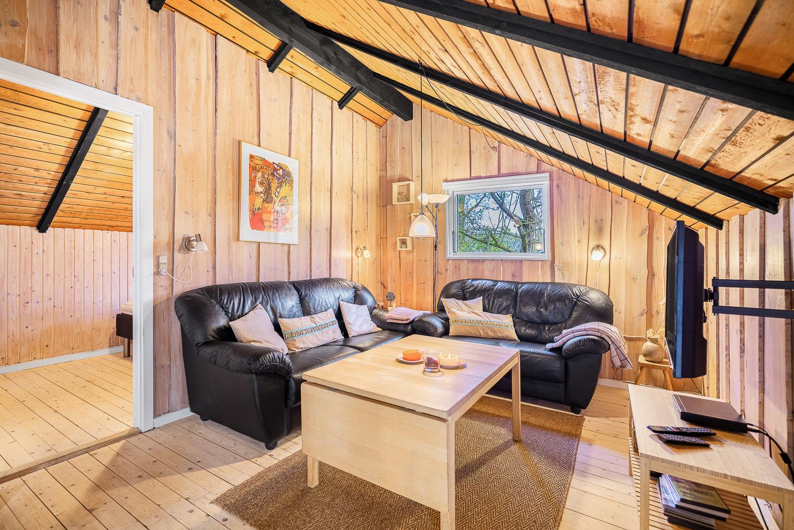 Der helle Wohnbereich mit Kamin ist der gemütliche Mittelpunkt des Ferienhauses. Durch die offene Raumgestaltung wirkt alles freundlich, verbunden und ideal für gemeinsame Stunden. Die moderne Wärmepumpe sorgt dafür, dass es im Sommer angenehm kühl und im Winter wohlig warm bleibt – perfekte Bedingungen für euren Urlaub in Dänemark zu jeder Jahreszeit.
