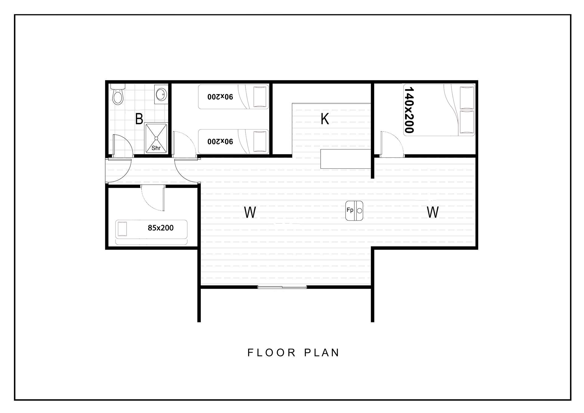 Bettengröße: 1 Schlafzimmer mit Doppelbett (140 x 200 cm), 1 Schlafzimmer mit 2 Einzelbetten (90 x 200 cm), 1 Schlafzimmer mit Etagenbett (85 x 200 cm)