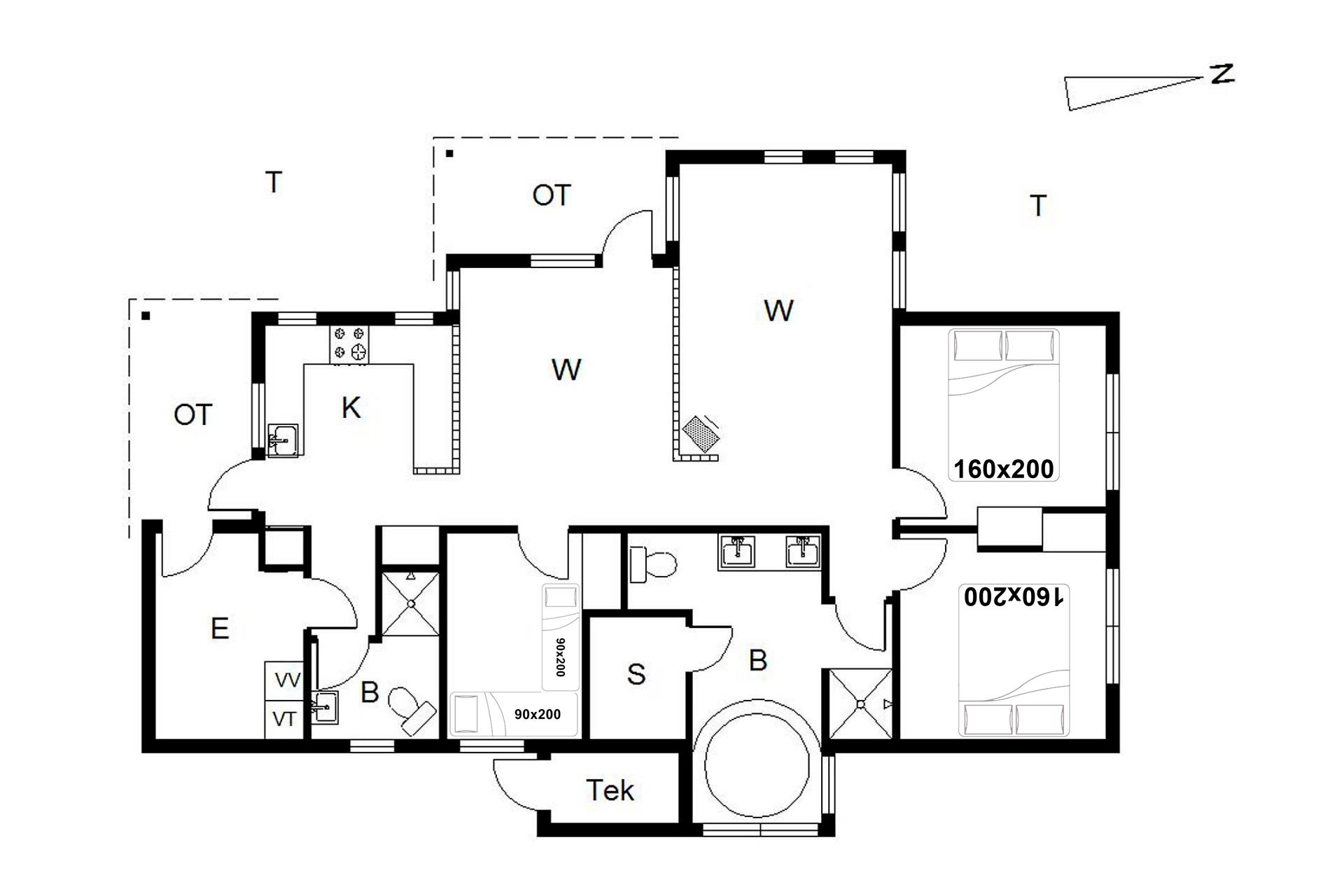 Bettengrösse: 2 Doppelbetten 160 x 200 cm + 2 Einzelbetten 90 x 200 cm.