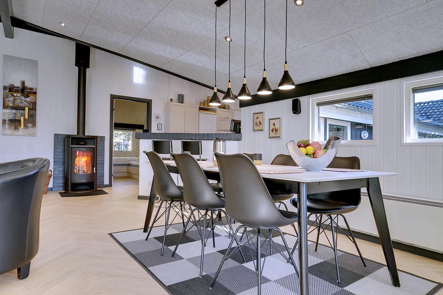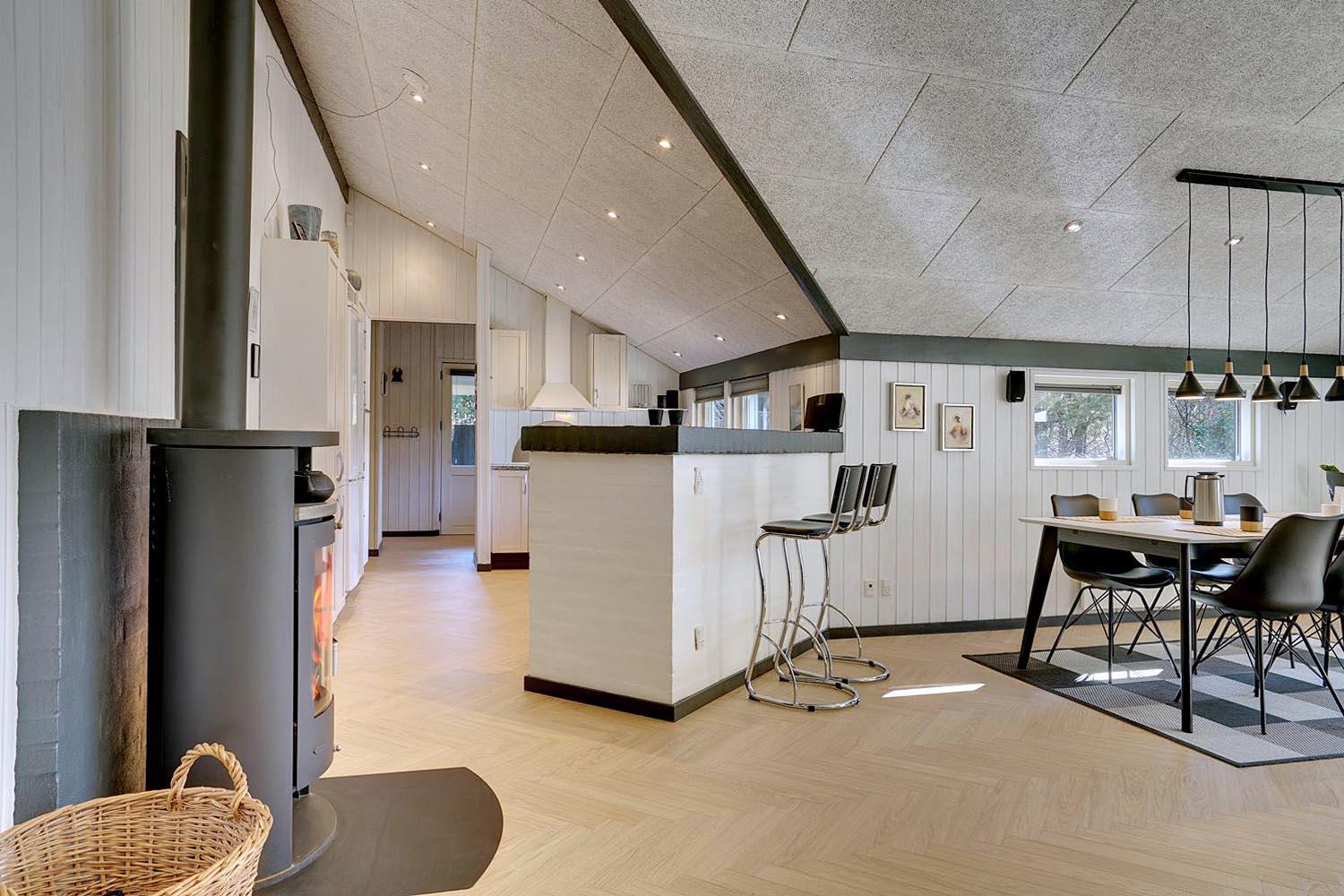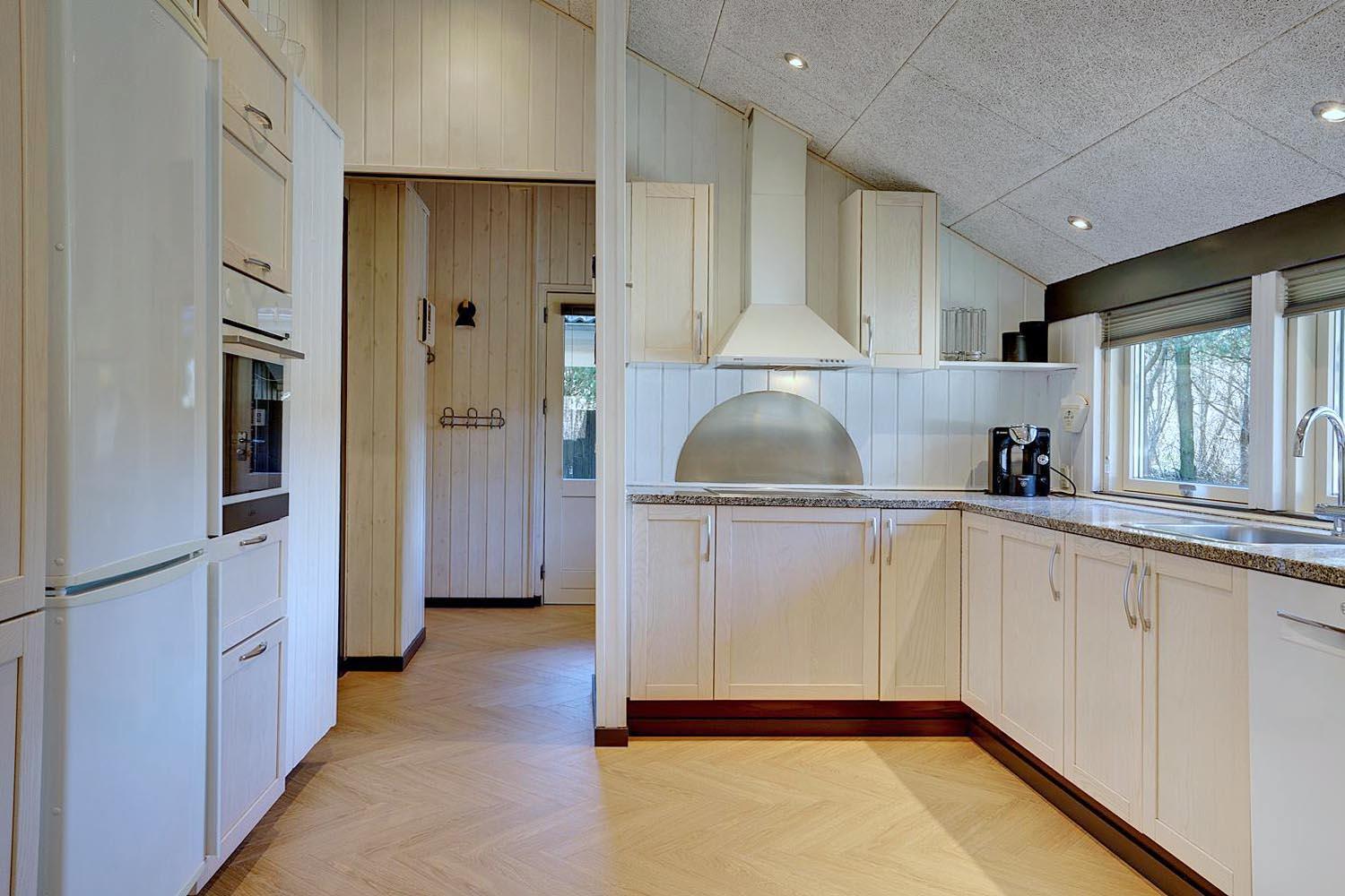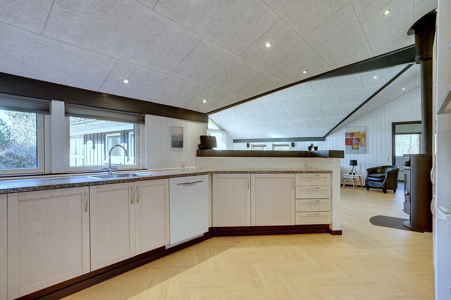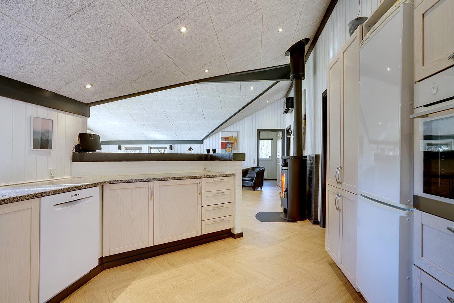 Die offene Küche ist hochwertig ausgestattet: mit Spülmaschine, Backofen, Kühlschrank und Fußbodenheizung. So macht das Kochen im Urlaub richtig Spaß. Eine Wärmepumpe sorgt für angenehme Temperaturen und schont dabei auch noch die Umwelt.