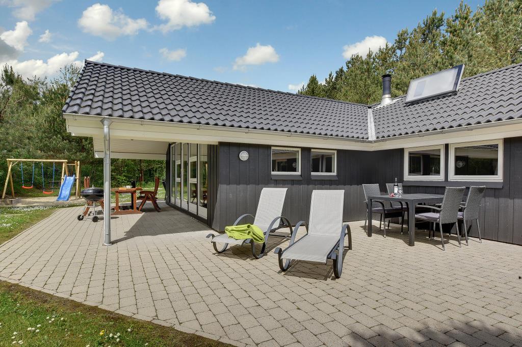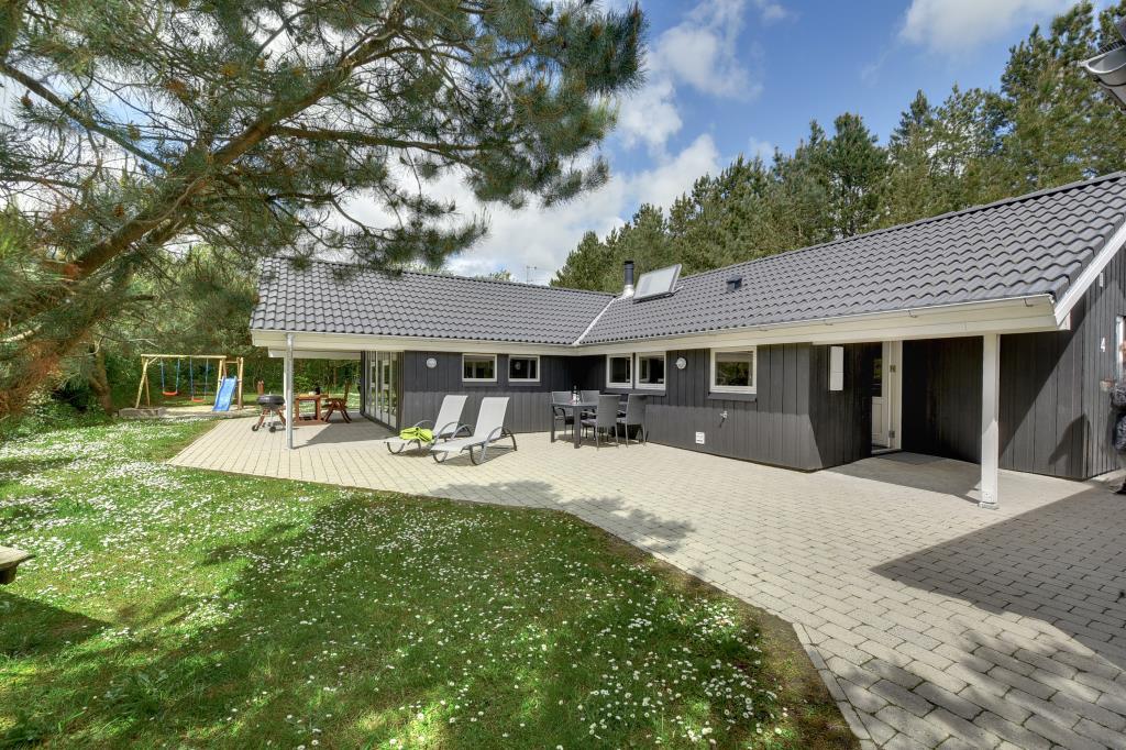 Im Hybenvangen 4 in Jegum Ferieland erwartet dich ein modernes und gemütliches Ferienhaus für bis zu 8 Personen auf 135m². Hier kannst du mit Familie oder Freunden die Ruhe Westjütlands genießen – nur 11 km von der Nordsee entfernt.