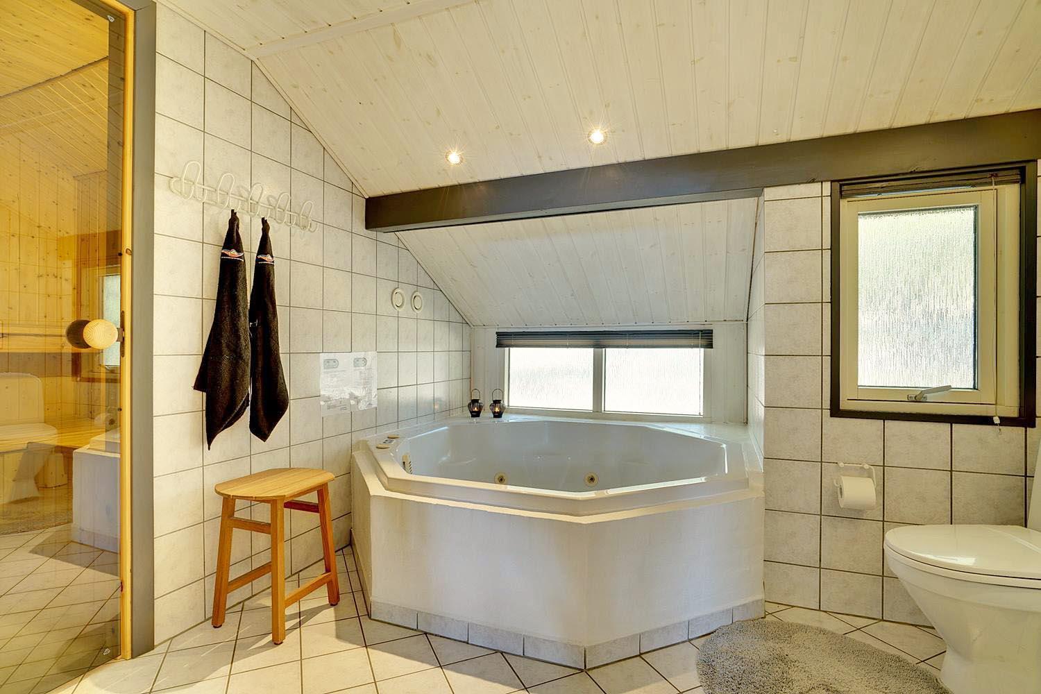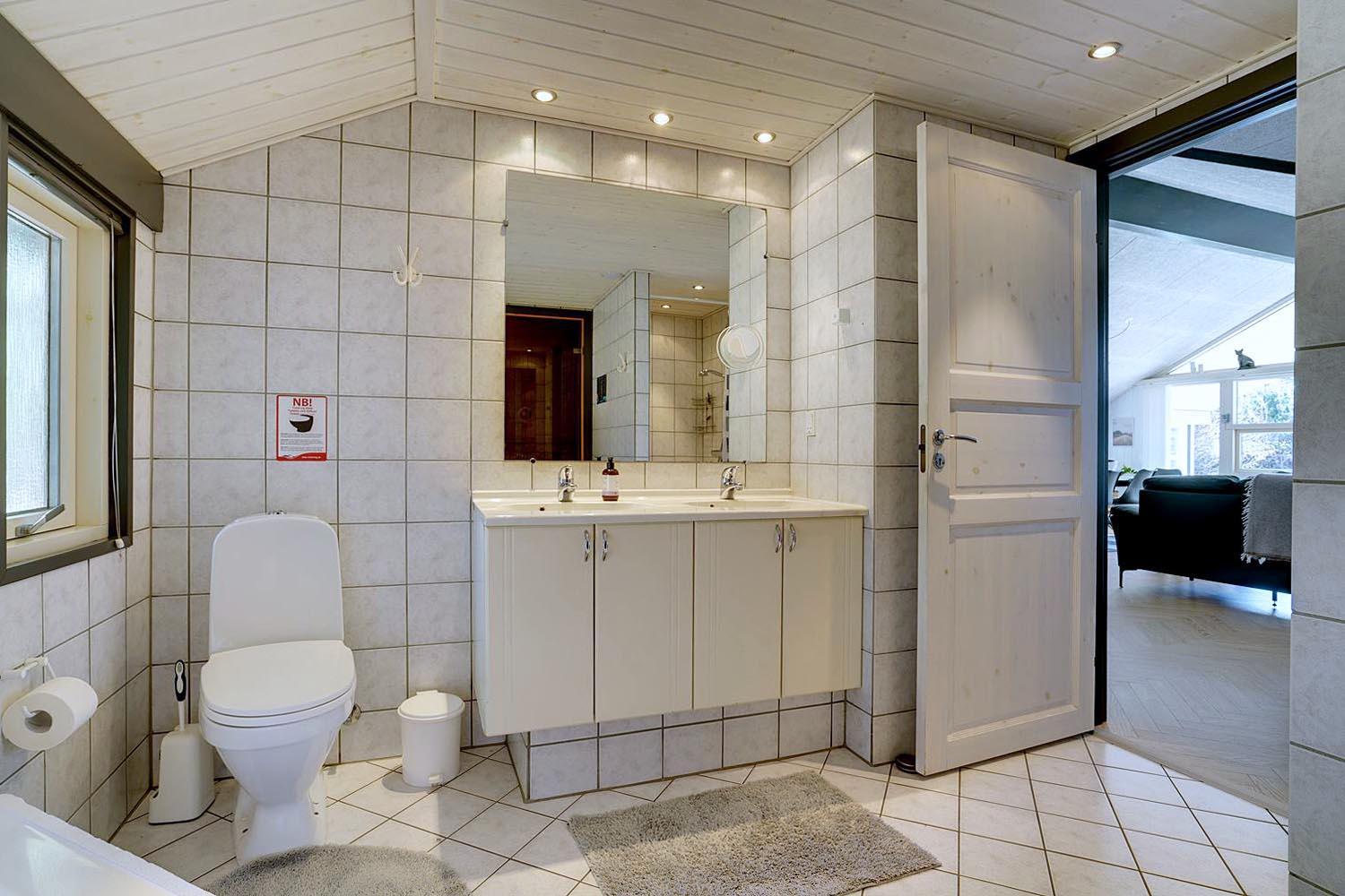 Mit 4 Schlafzimmern bietet das Ferienhaus genug Platz für alle. Zwei moderne Badezimmer mit Fußbodenheizung sorgen dafür, dass Du dich rundum wohlfühlst. Im großen Bad kannst du in der privaten Sauna entspannen oder im Standwasser-Whirlpool neue Energie tanken – Wellness pur, ganz für dich allein.