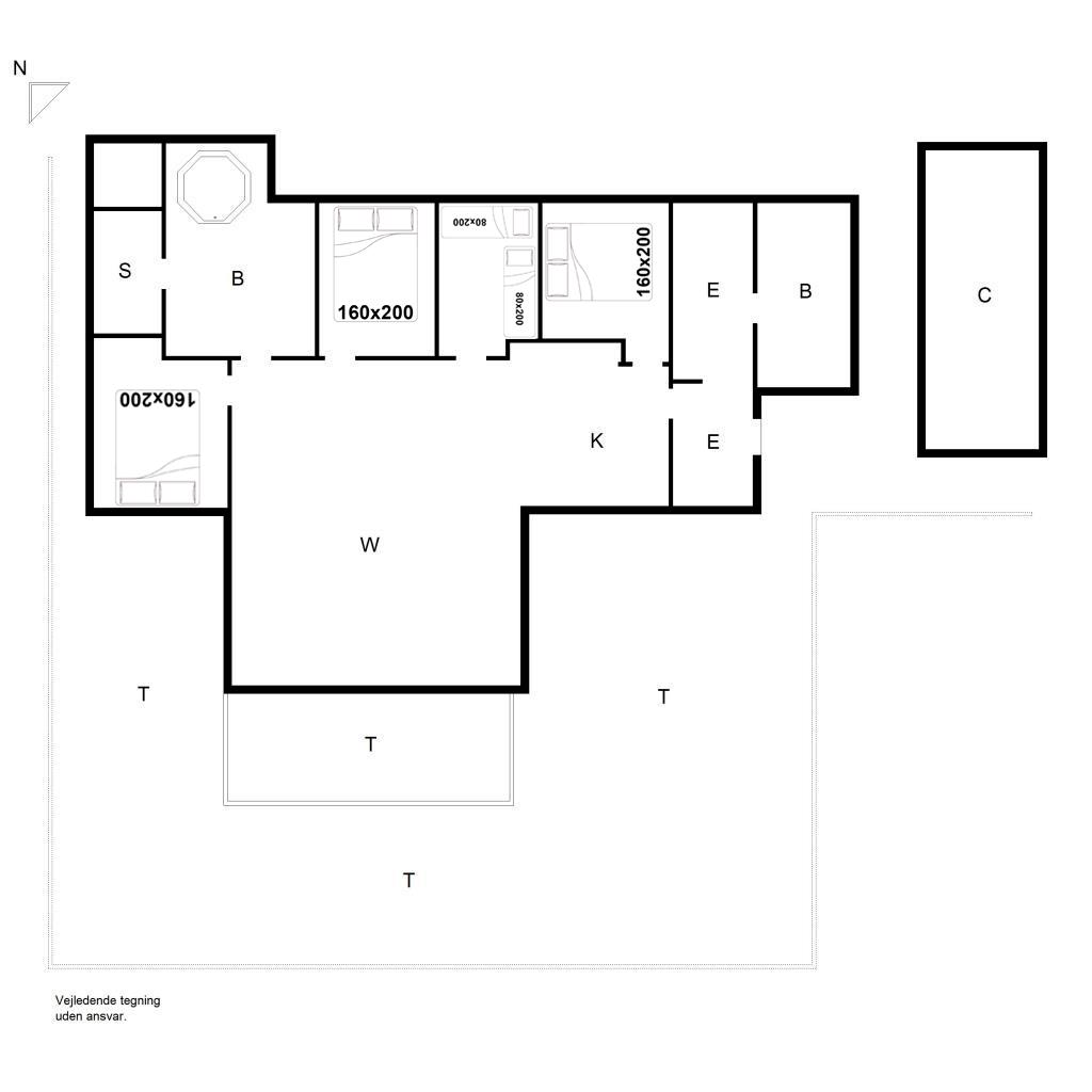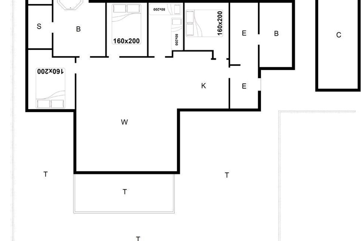 Bettengröße: 3 Doppelbetten 160 x 200 cm + 2 Einzelbetten 80 x 200 cm.