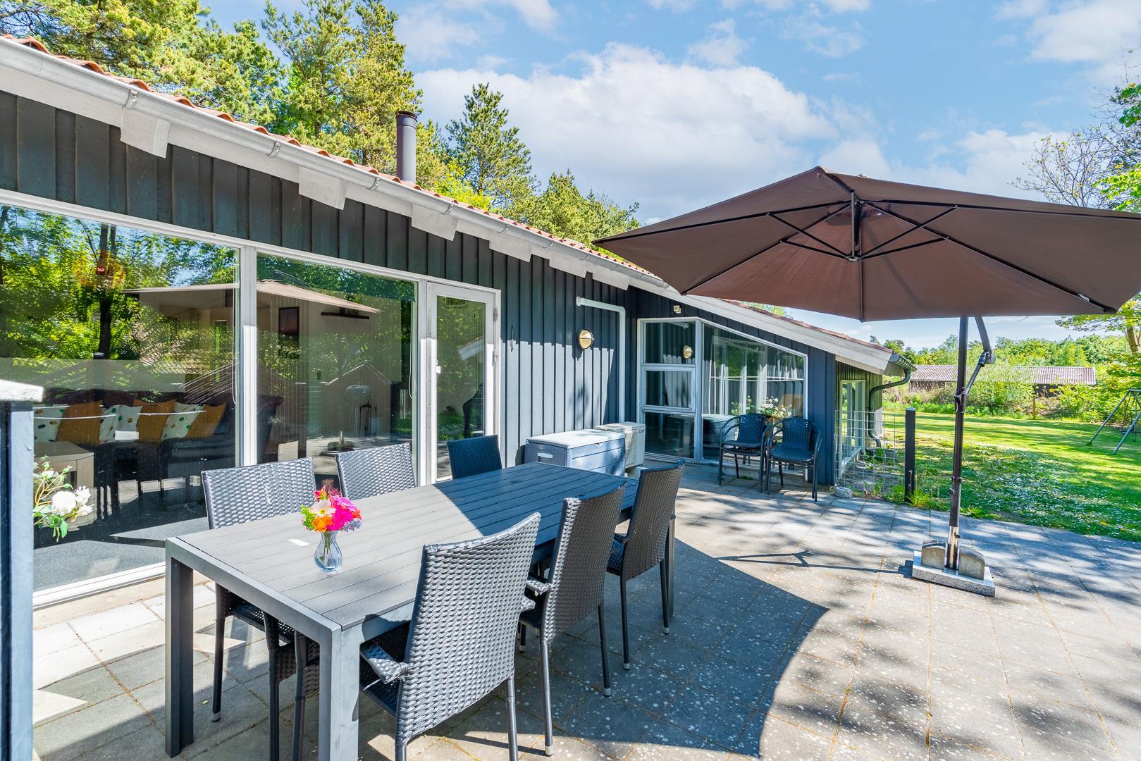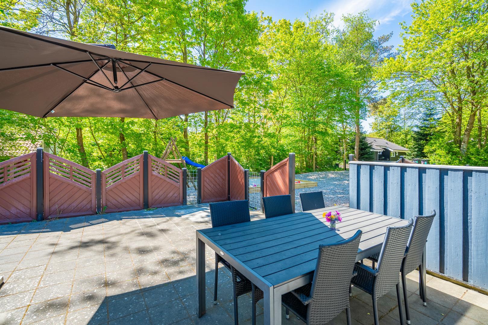 Draußen sein, durchatmen, genießen – der Außenbereich dieses Ferienhauses ist wie gemacht für unvergessliche Urlaubsmomente. Das komplett eingezäunte Grundstück bietet Sicherheit für Kinder und Hunde und schafft ein Gefühl von Geborgenheit mitten in der Natur.