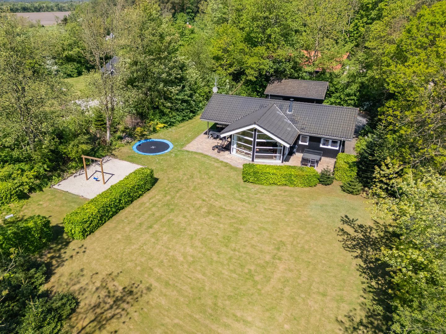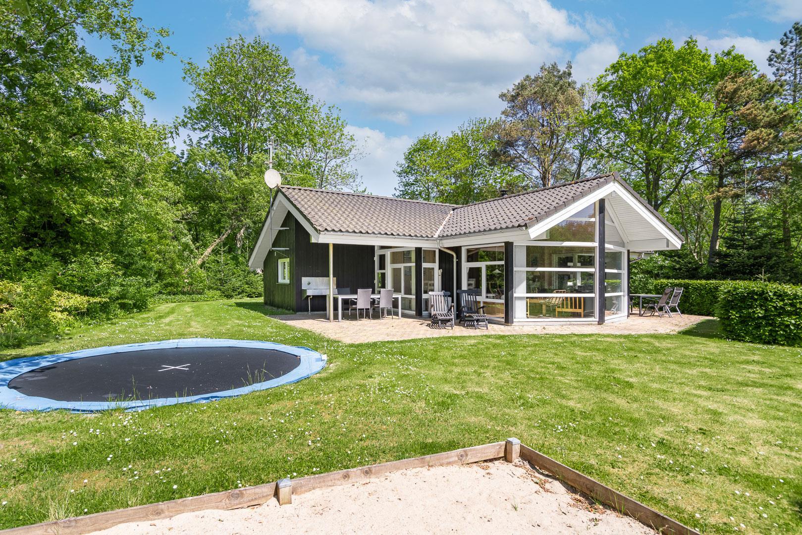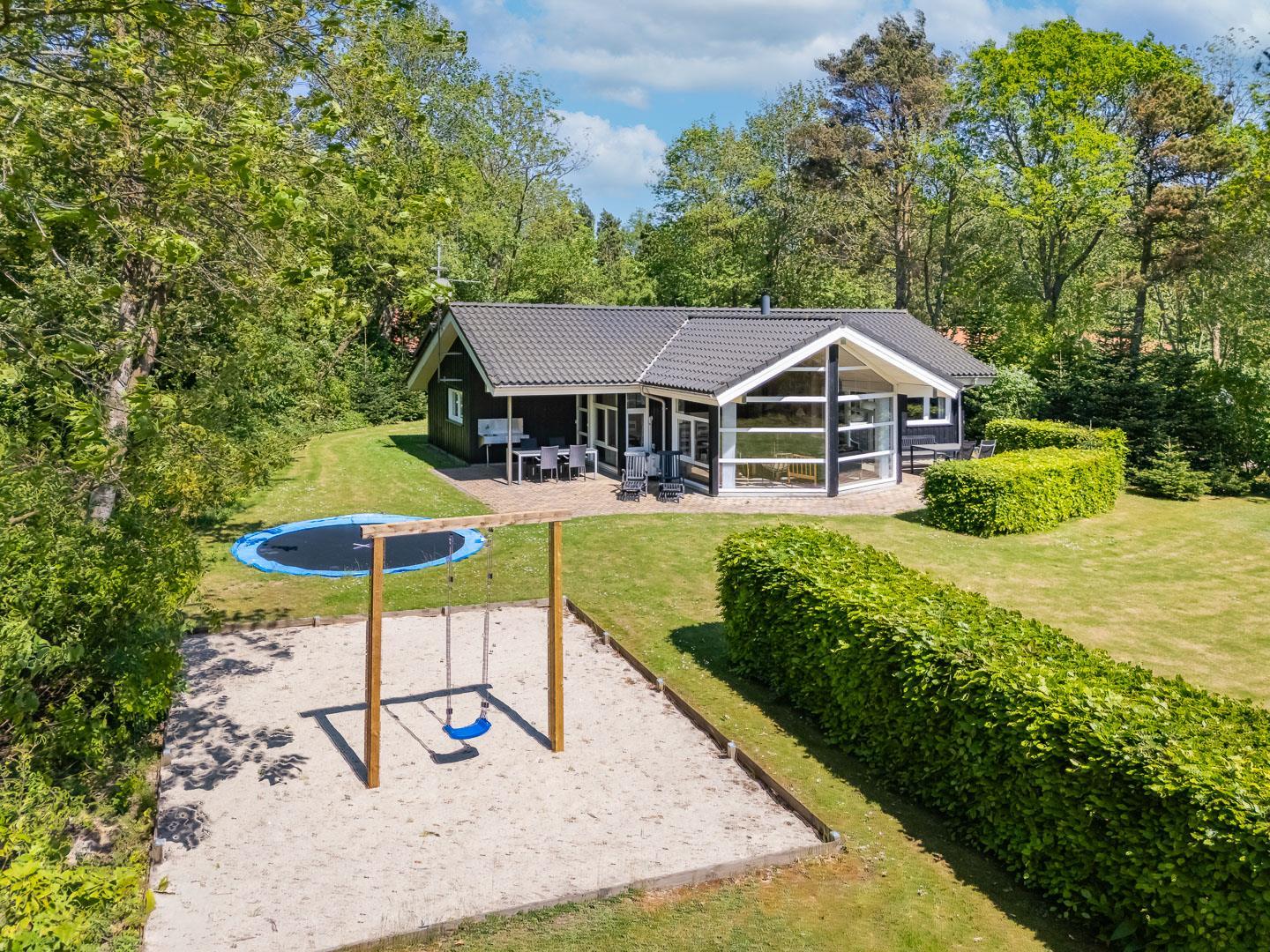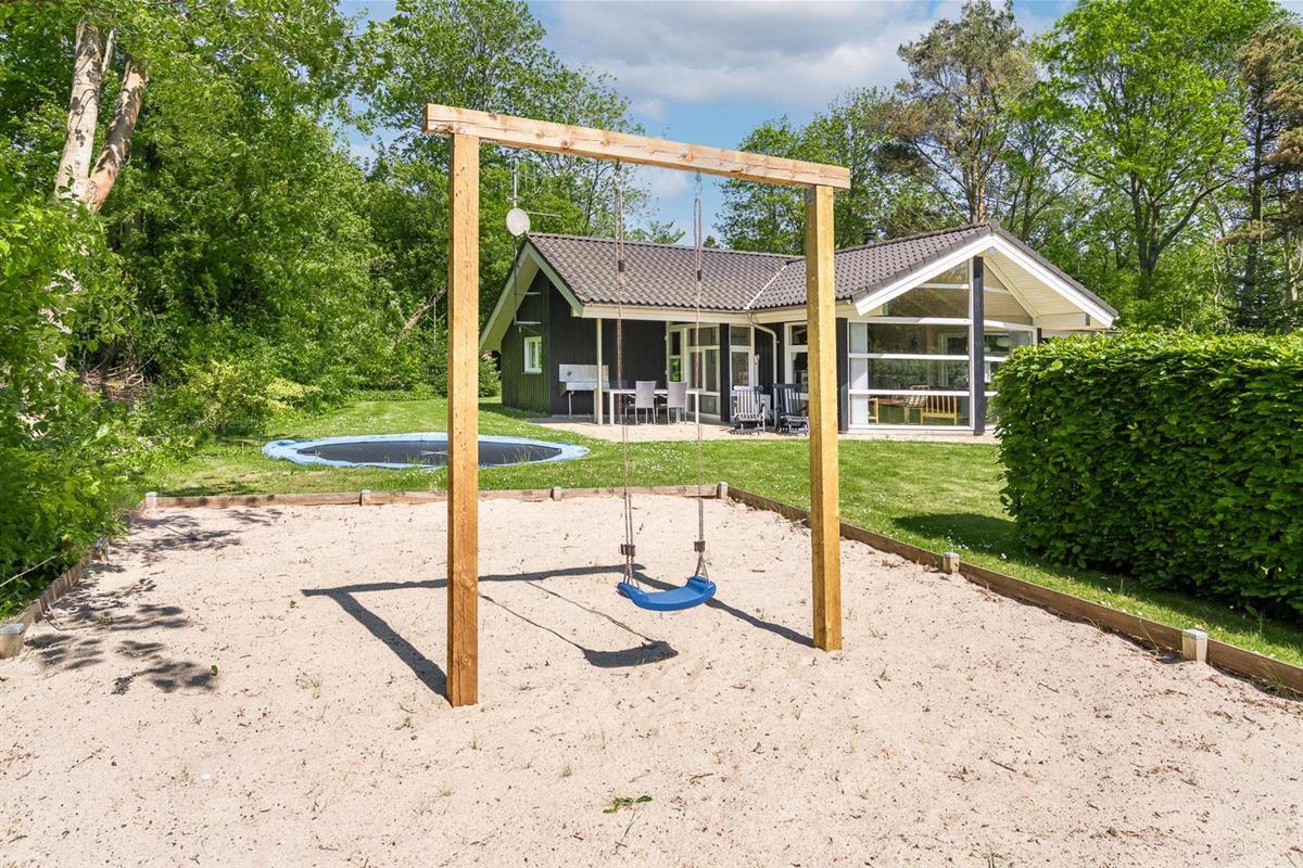 Auch die kleinen Gäste kommen hier voll auf ihre Kosten: Im Garten warten Schaukel, Sandkasten und ein Trampolin auf fröhliche Stunden an der frischen Luft. Zwei Hunde sind im Fyrrelunden 24 herzlich willkommen – das große Naturgrundstück lädt zu gemeinsamen Spaziergängen und Spielrunden ein. So fühlt sich wirklich jeder wohl.