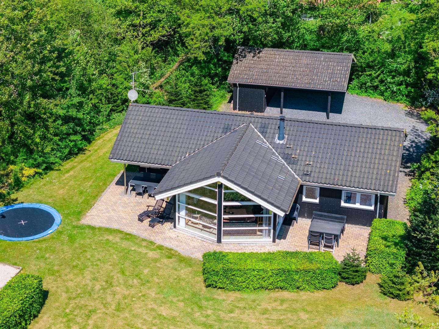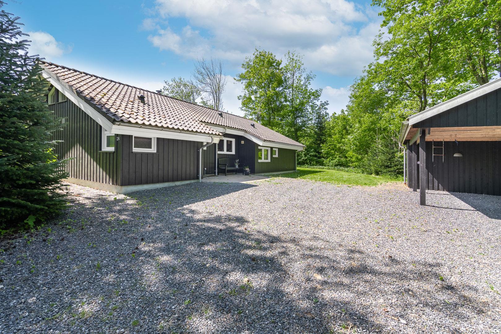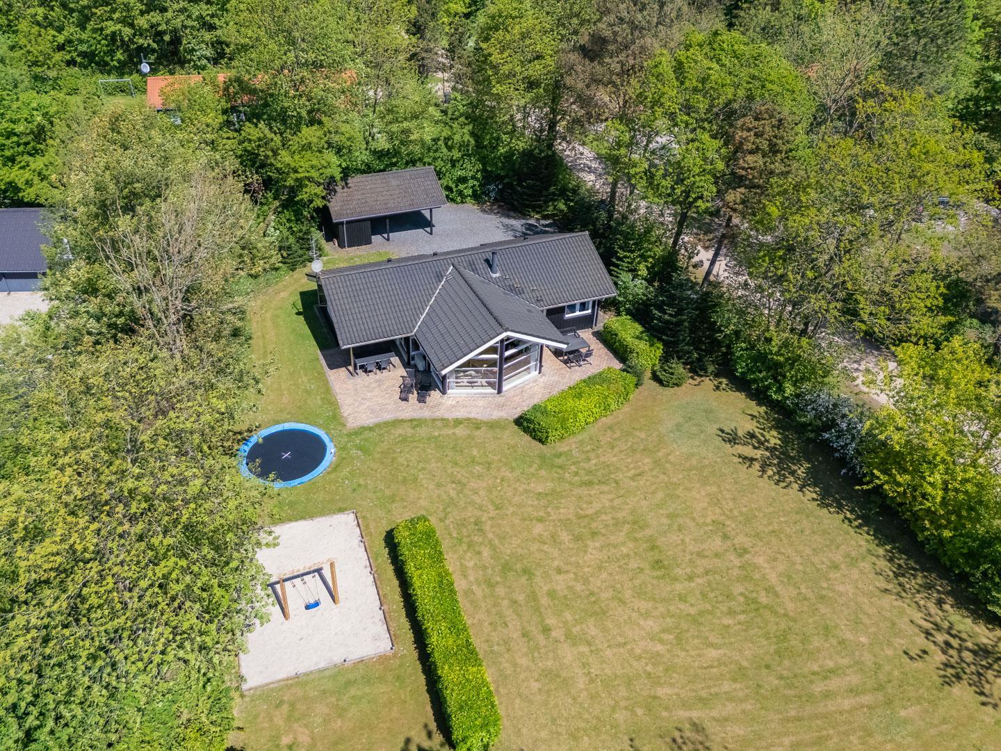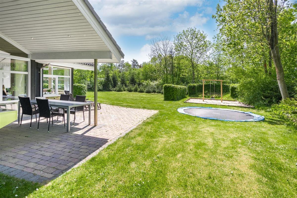 Auch die kleinen Gäste kommen hier voll auf ihre Kosten: Im Garten warten Schaukel, Sandkasten und ein Trampolin auf fröhliche Stunden an der frischen Luft. Zwei Hunde sind im Fyrrelunden 24 herzlich willkommen – das große Naturgrundstück lädt zu gemeinsamen Spaziergängen und Spielrunden ein. So fühlt sich wirklich jeder wohl.