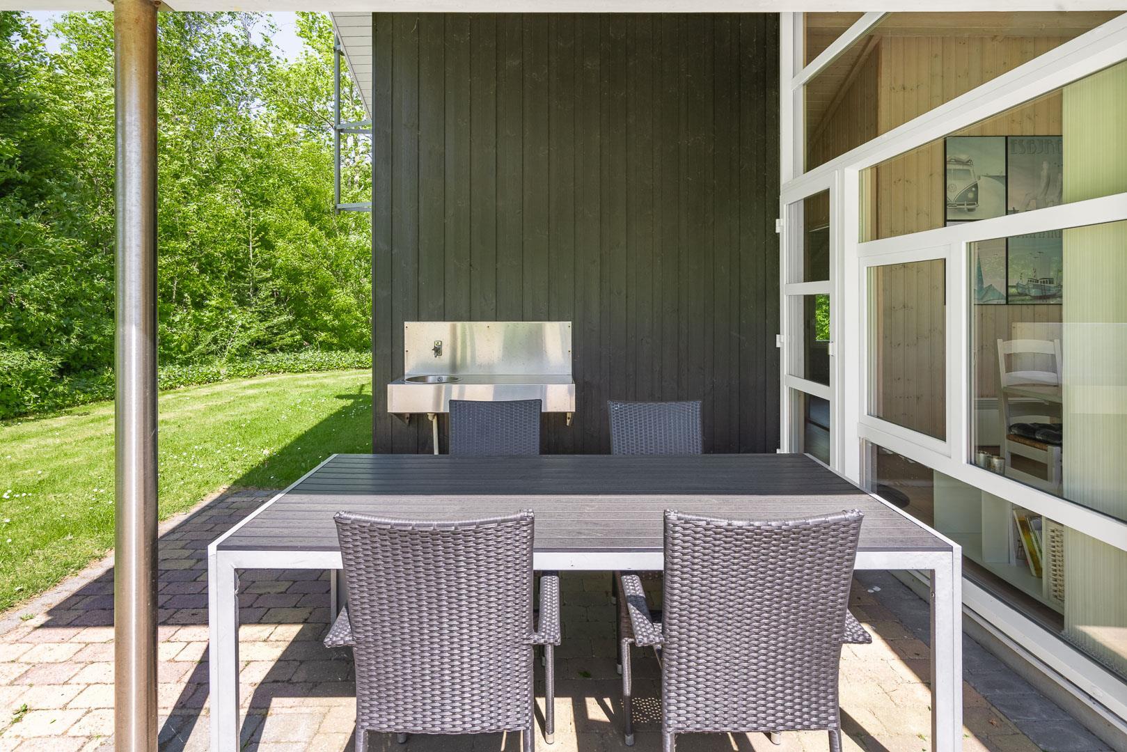 Das Ferienhaus liegt in einer ruhigen Straße im beliebten Jegum Ferieland, nur 400 Meter vom nächsten Einkauf entfernt. Zum Meer sind es 10 Kilometer – ideal für einen Ausflug an die breite Nordseestrand von Henne oder Houstrup. Nach einem Strandtag kannst du dein Auto bequem im Carport abstellen und auf der überdachten Terrasse den Tag gemütlich ausklingen lassen – vielleicht bei einem Grillabend oder einem Glas dänischem Bier.