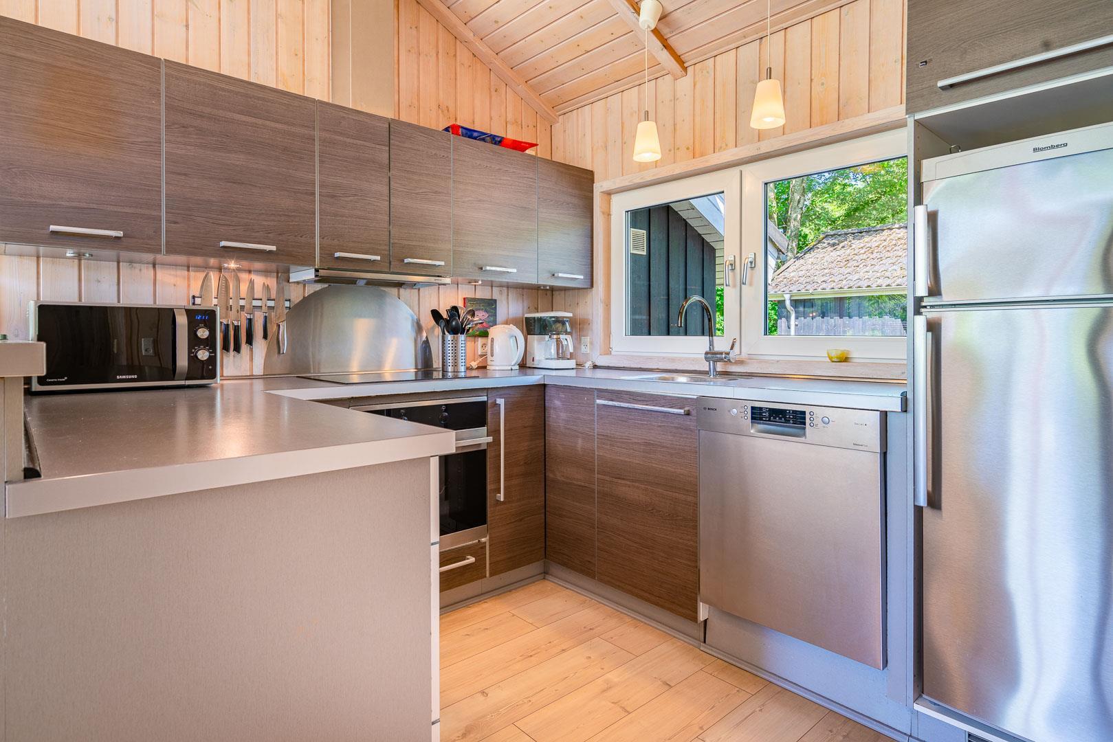 Die moderne Küche ist mit allem ausgestattet, was du brauchst – inklusive Spülmaschine, Backofen und reichlich Platz zum gemeinsamen Kochen. Insgesamt bietet das Ferienhaus vier Schlafzimmer, ideal für bis zu 8 Personen. Ein Gäste-WC ergänzt das große Badezimmer, das mit Sauna, Badewanne und Fußbodenheizung pure Wellnessmomente verspricht.