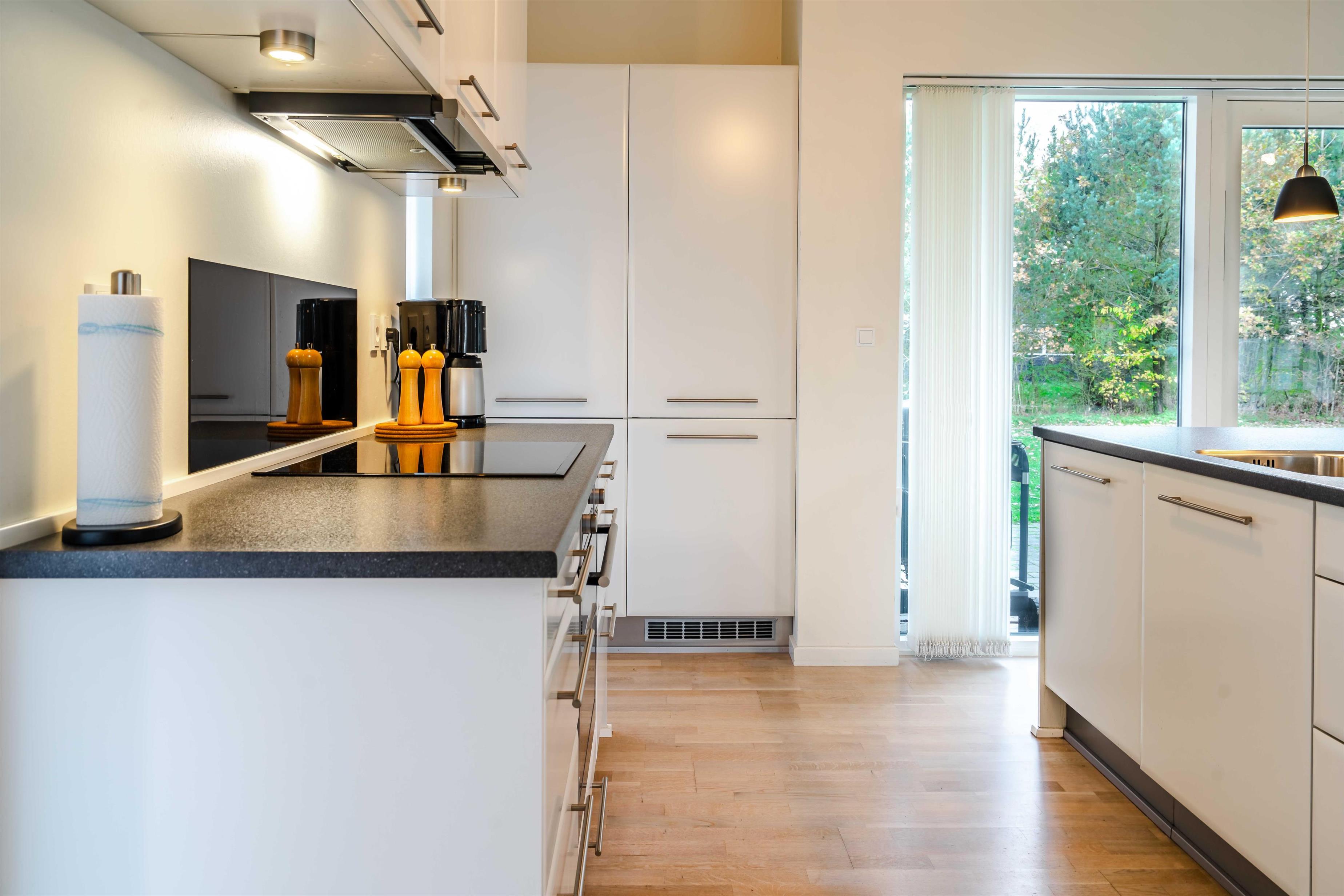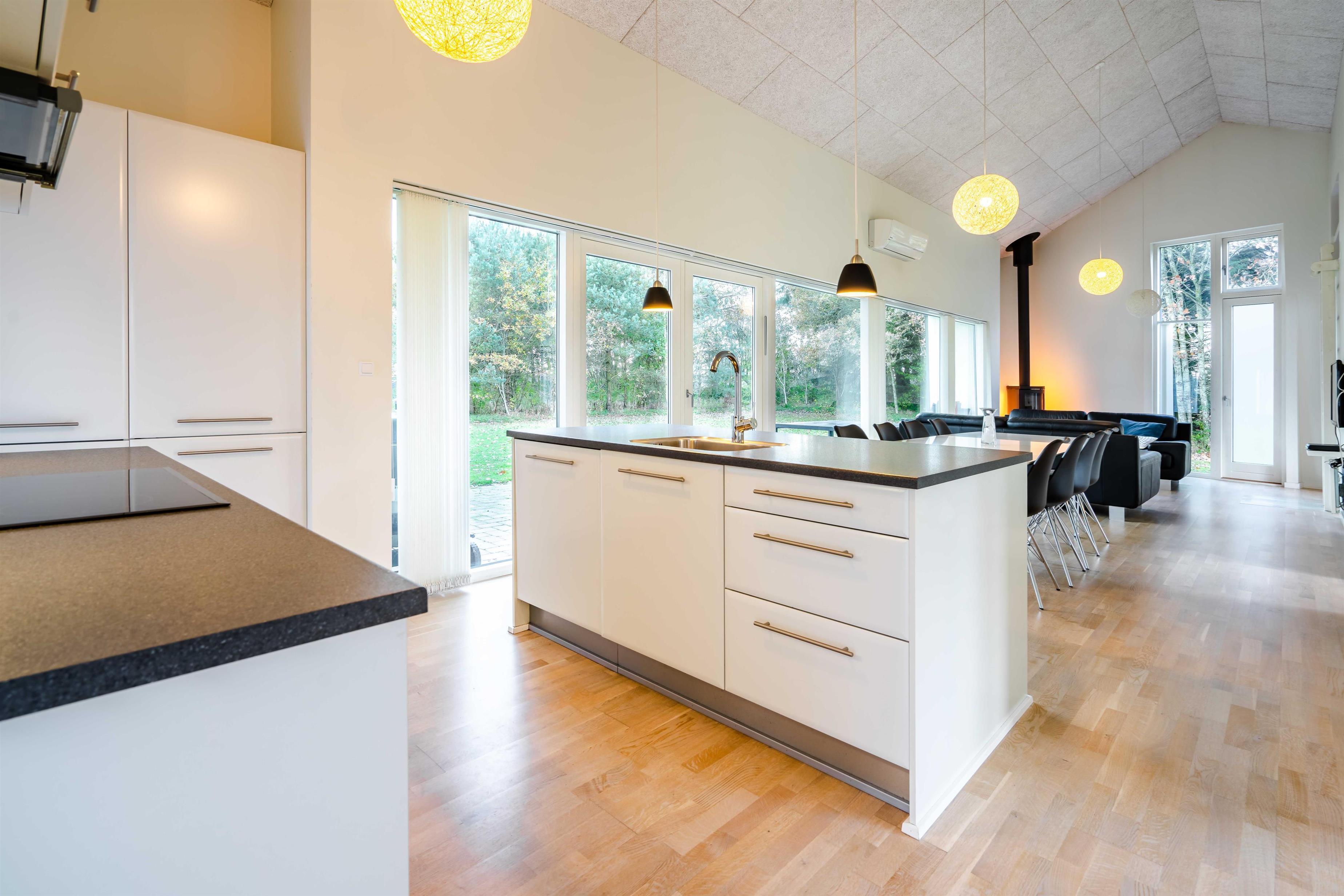 Auf großzügigen 149m² erwartet euch im Blomstervangen 157 ein helles, modernes Ferienhaus, das Gemütlichkeit und Freizeitspaß perfekt verbindet. Der offene Wohnbereich mit Kamin lädt zum Entspannen ein – ideal nach einem langen Tag an der frischen Luft. In der modern ausgestatteten Küche mit Spülmaschine könnt ihr gemeinsam kochen und essen, ohne auf Komfort zu verzichten.