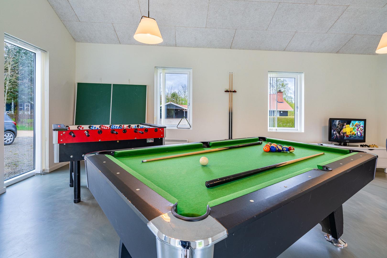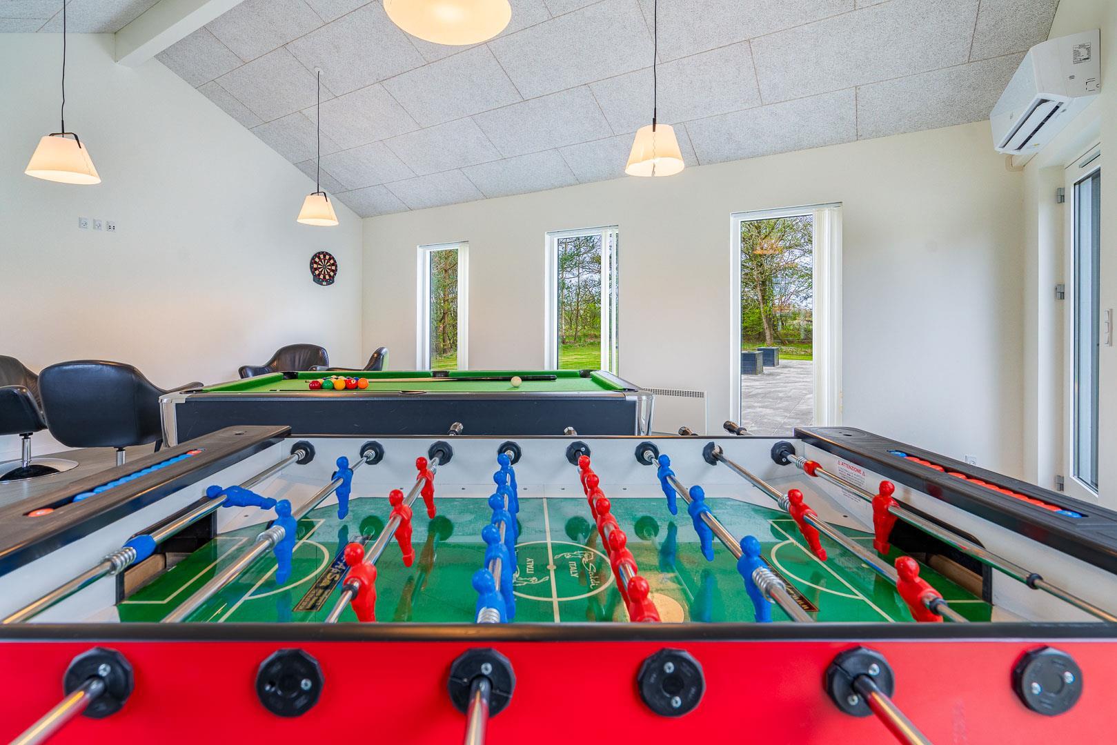Für reichlich Unterhaltung ist ebenfalls gesorgt: Im Aktivitätsraum findet ihr Billard, Tischfußball, Tischtennis und Darts – perfekt für kleine Turniere mit Familie oder Freunden. Eine Spielkonsole sorgt für zusätzlichen Spaß an Regentagen.