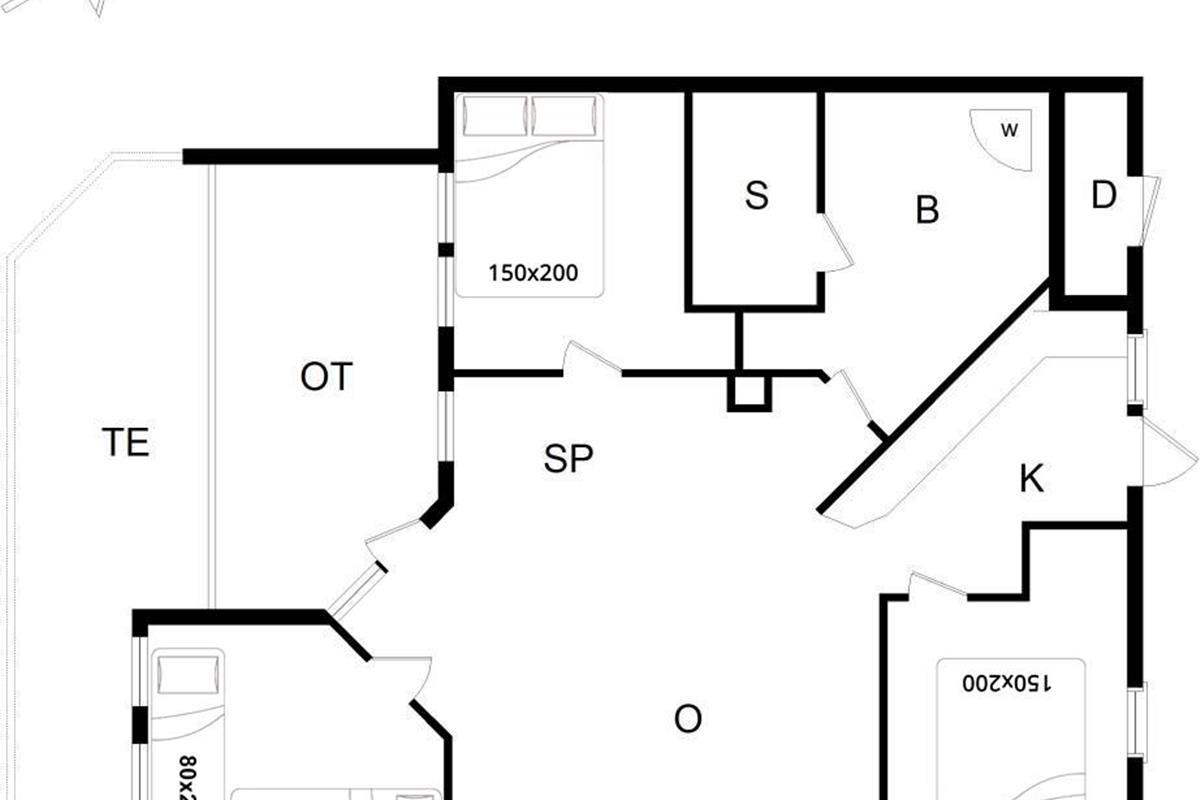 Bettengrösse: 2 Doppelbetten 150 x 200 cm + 2 Einzelbetten 80 x 200 cm.