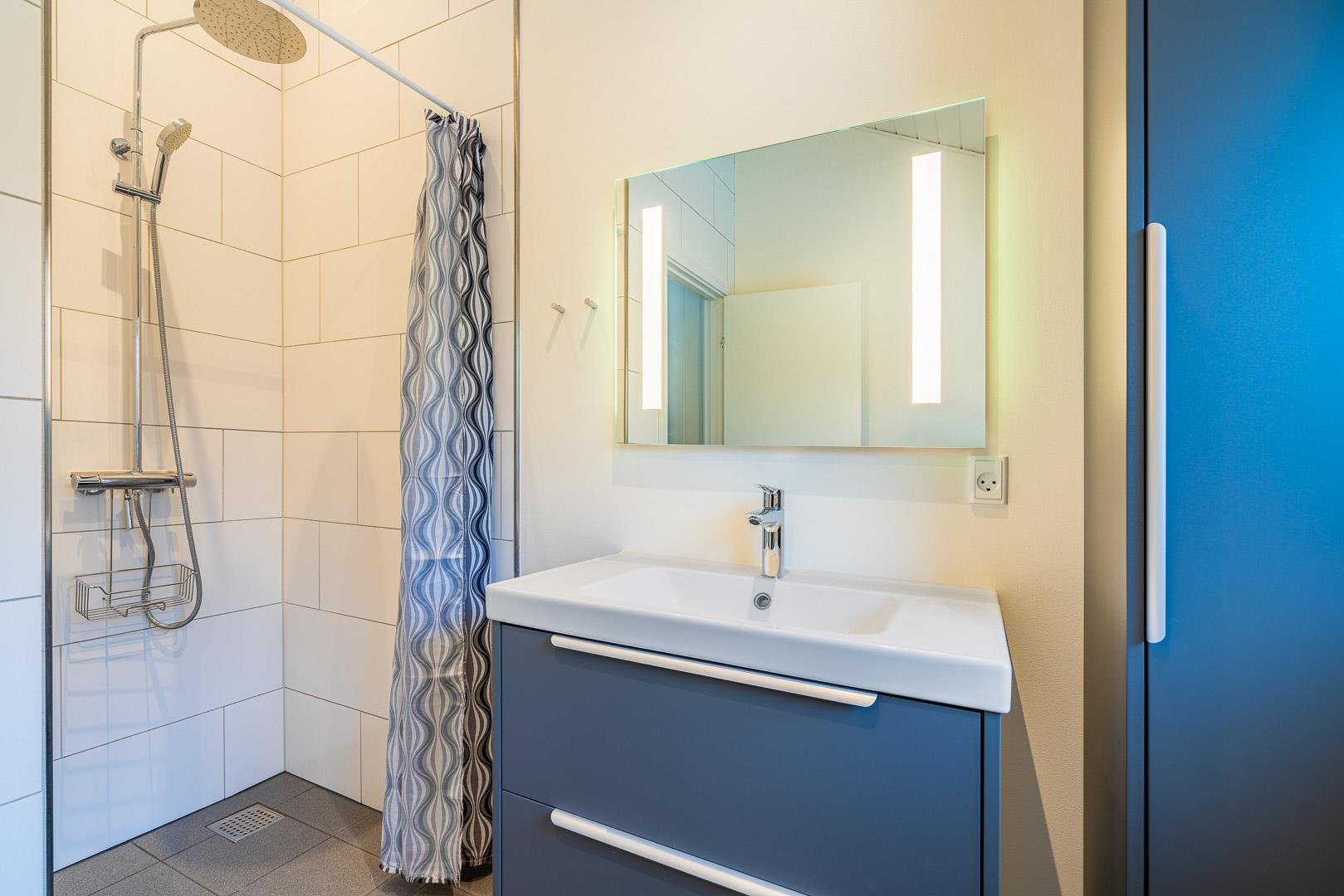 Auch das Badezimmer lässt keine Wünsche offen: Die Fußbodenheizung sorgt für wohlige Wärme und mit Waschmaschine und Trockner seid ihr jederzeit bestens ausgestattet – praktisch für Familien oder längere Aufenthalte.