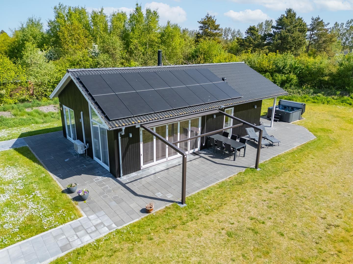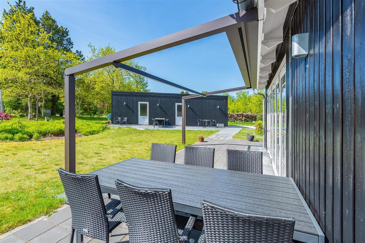 Im Außenbereich des Ferienhauses im Blomstervangen 105 findet ihr alles, was ihr für entspannte Urlaubstage braucht. Auf der teilweise überdachten Terrasse könnt ihr in Ruhe frühstücken, den Sonnenuntergang genießen oder einfach die frische Luft Dänemarks auf euch wirken lassen – ganz egal, ob im Sommer oder in der Nebensaison. Die ruhige Lage im Grünen sorgt dafür, dass ihr hier wirklich zur Ruhe kommt.