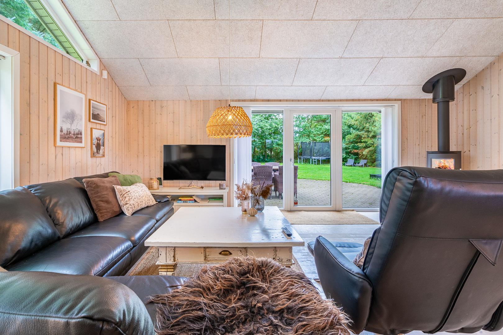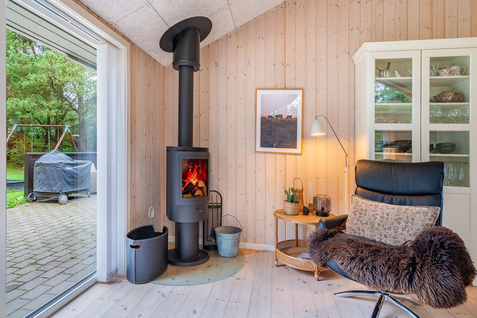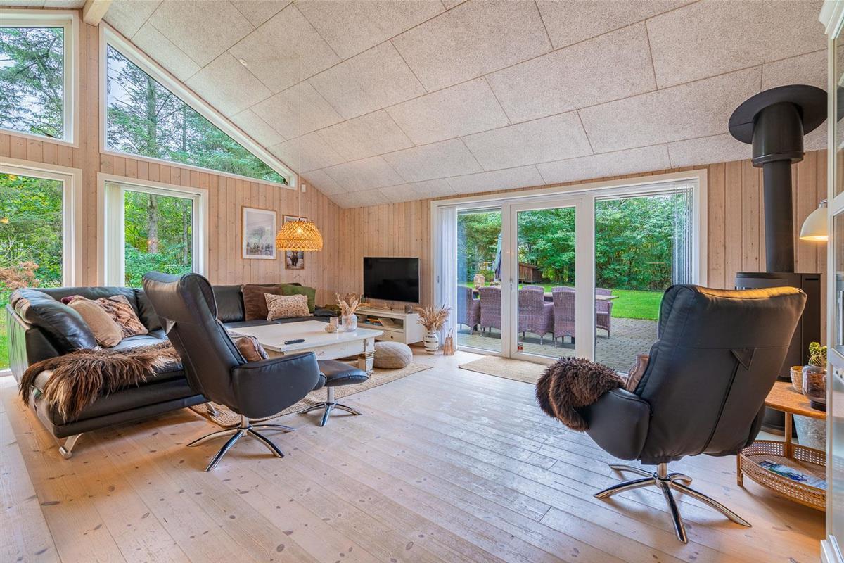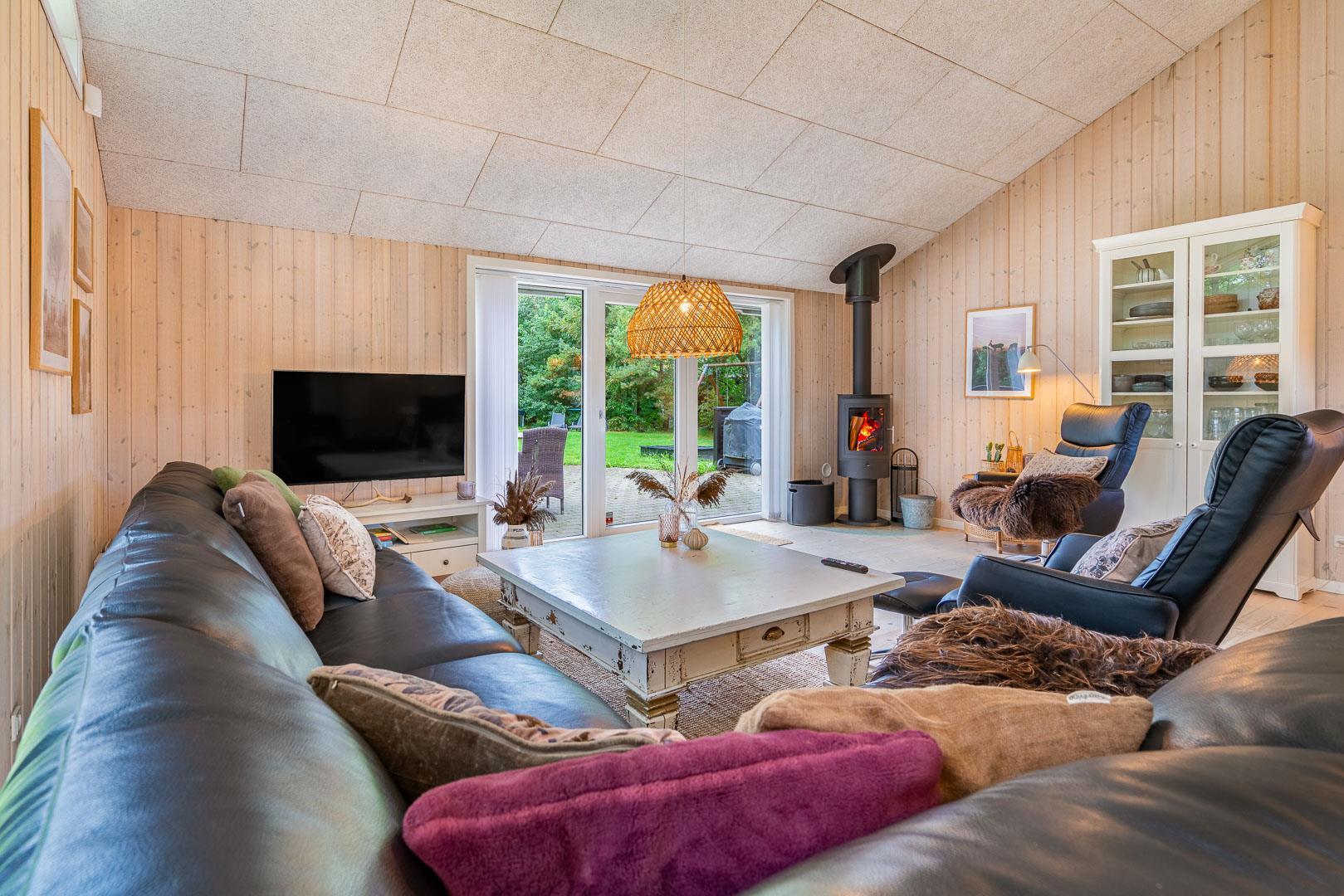 Im Ferienhaus Blomstervangen 114 erwartet Dich eine helle, freundliche Atmosphäre, die sofort Urlaubsstimmung aufkommen lässt. Das großzügige Wohnzimmer ist mit einem Kamin ausgestattet – perfekt, um es Dir an kühlen Tagen gemütlich zu machen. Die energieeffiziente Wärmepumpe sorgt dabei für angenehme Temperaturen zu jeder Jahreszeit.