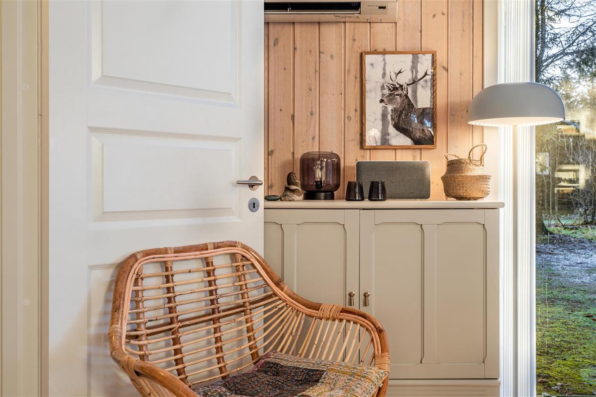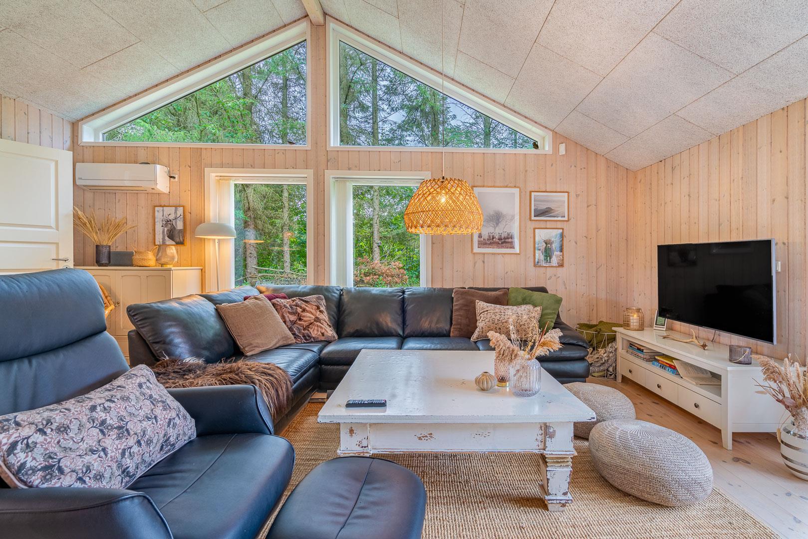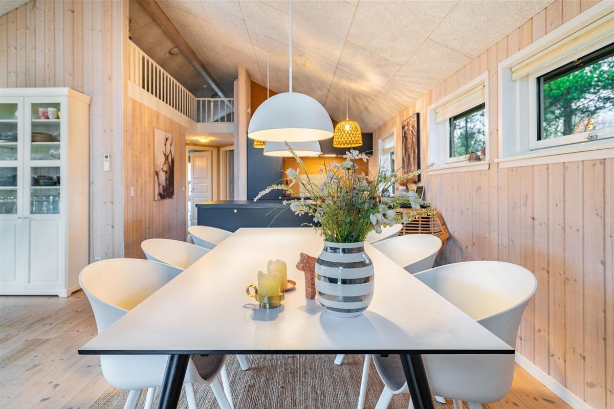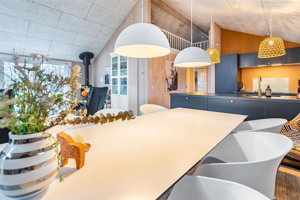 Im Ferienhaus Blomstervangen 114 erwartet Dich eine helle, freundliche Atmosphäre, die sofort Urlaubsstimmung aufkommen lässt. Das großzügige Wohnzimmer ist mit einem Kamin ausgestattet – perfekt, um es Dir an kühlen Tagen gemütlich zu machen. Die energieeffiziente Wärmepumpe sorgt dabei für angenehme Temperaturen zu jeder Jahreszeit.