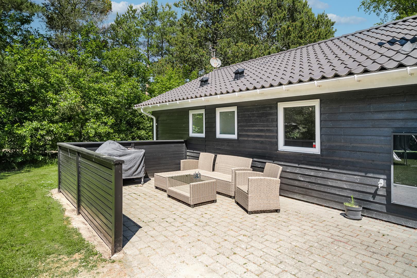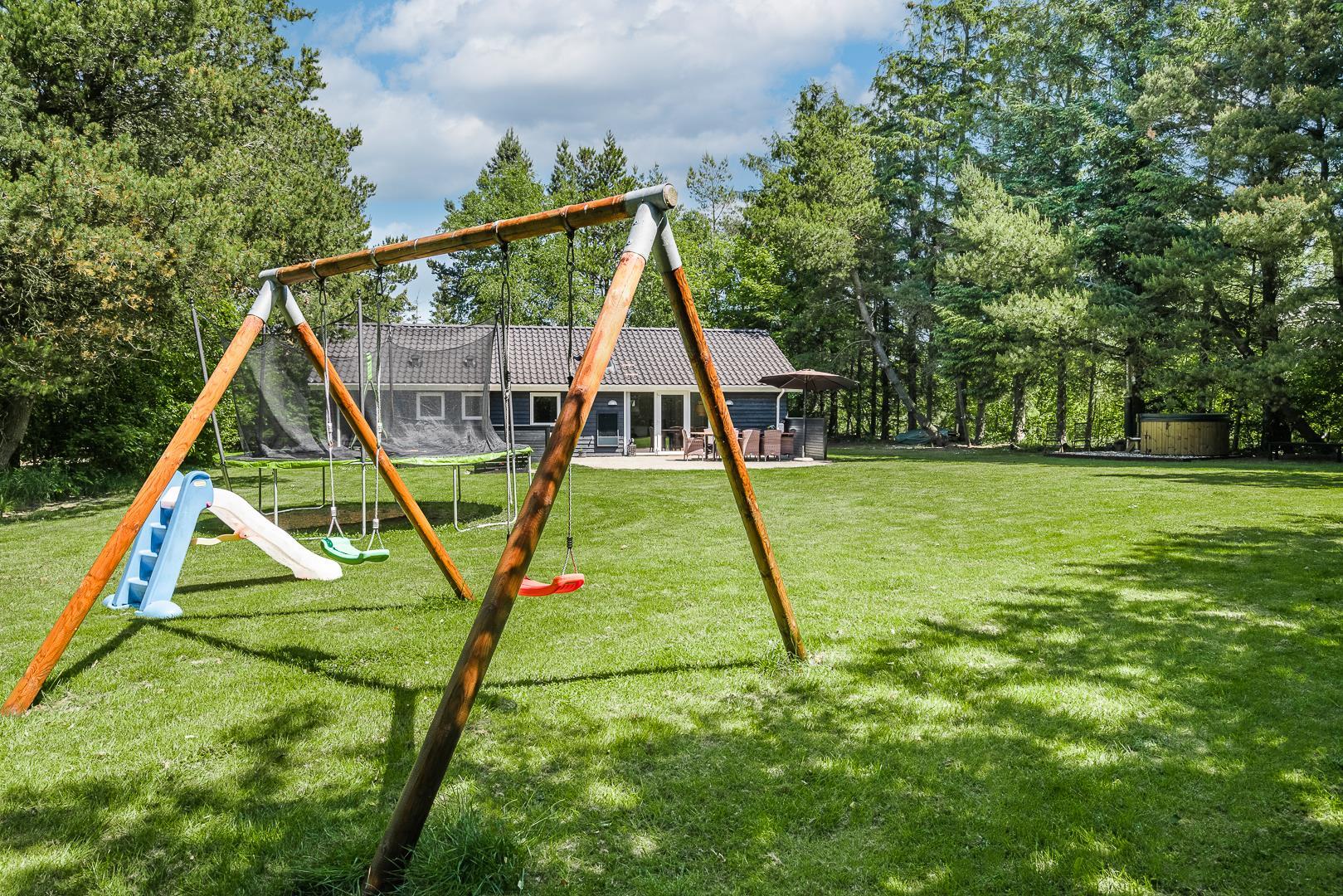 Während die Kleinen auf Trampolin, Schaukel oder im Sandkasten spielen, kannst Du auf der sonnigen Terrasse einfach abschalten.