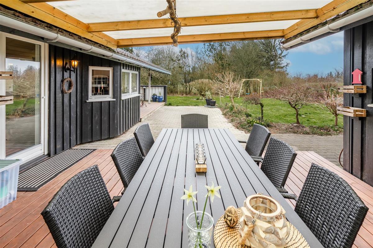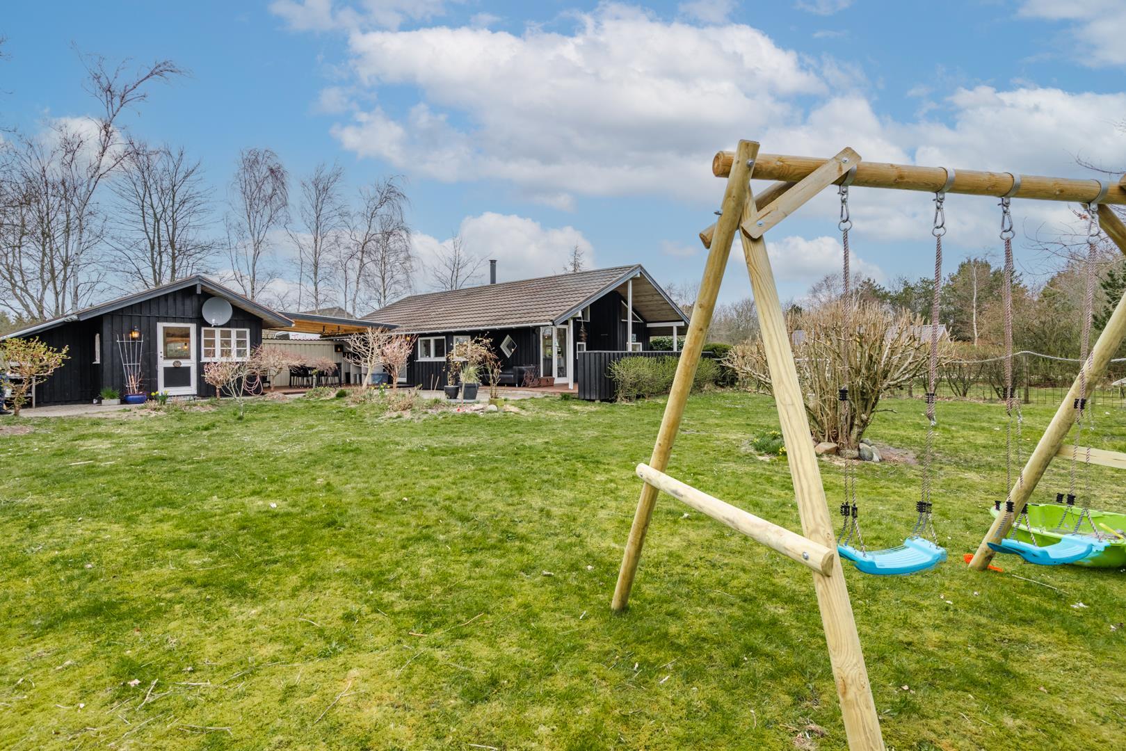 Der Außenbereich dieses familienfreundlichen Ferienhauses in Jegum Ferieland ist ein echtes Highlight – durchdacht, gepflegt und auf die Bedürfnisse von Familien mit Kindern und Hunden abgestimmt.
