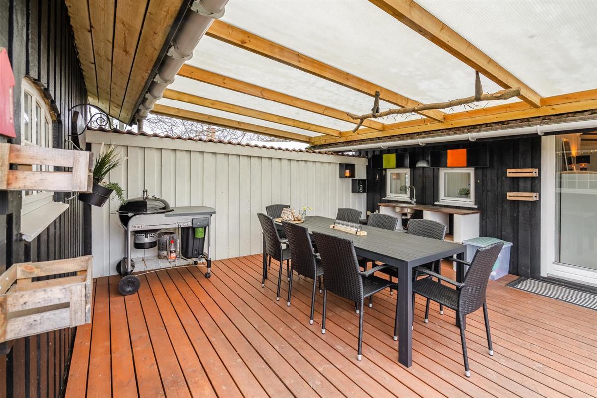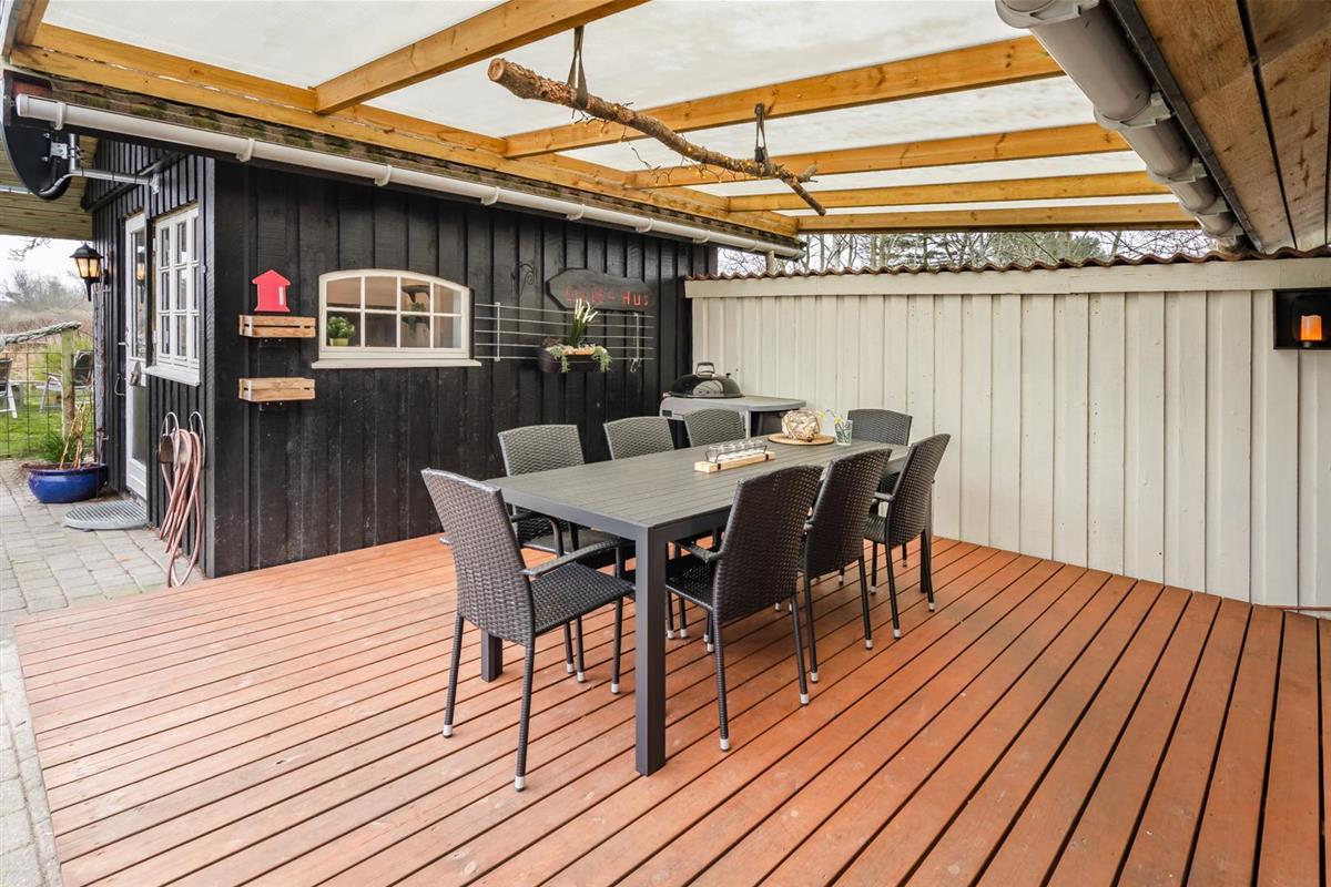 Ein weiteres Plus ist die geschlossene Terrasse: Sie bietet nicht nur Schutz vor Wind und neugierigen Blicken, sondern auch eine gemütliche Umgebung für Frühstück im Freien, Sonnenstunden oder gesellige Grillabende. Selbst bei nordischem Wetter könnt ihr die frische Luft auf der überdachten Terrasse genießen – ideal, wenn es mal nieselt oder schattig sein soll.