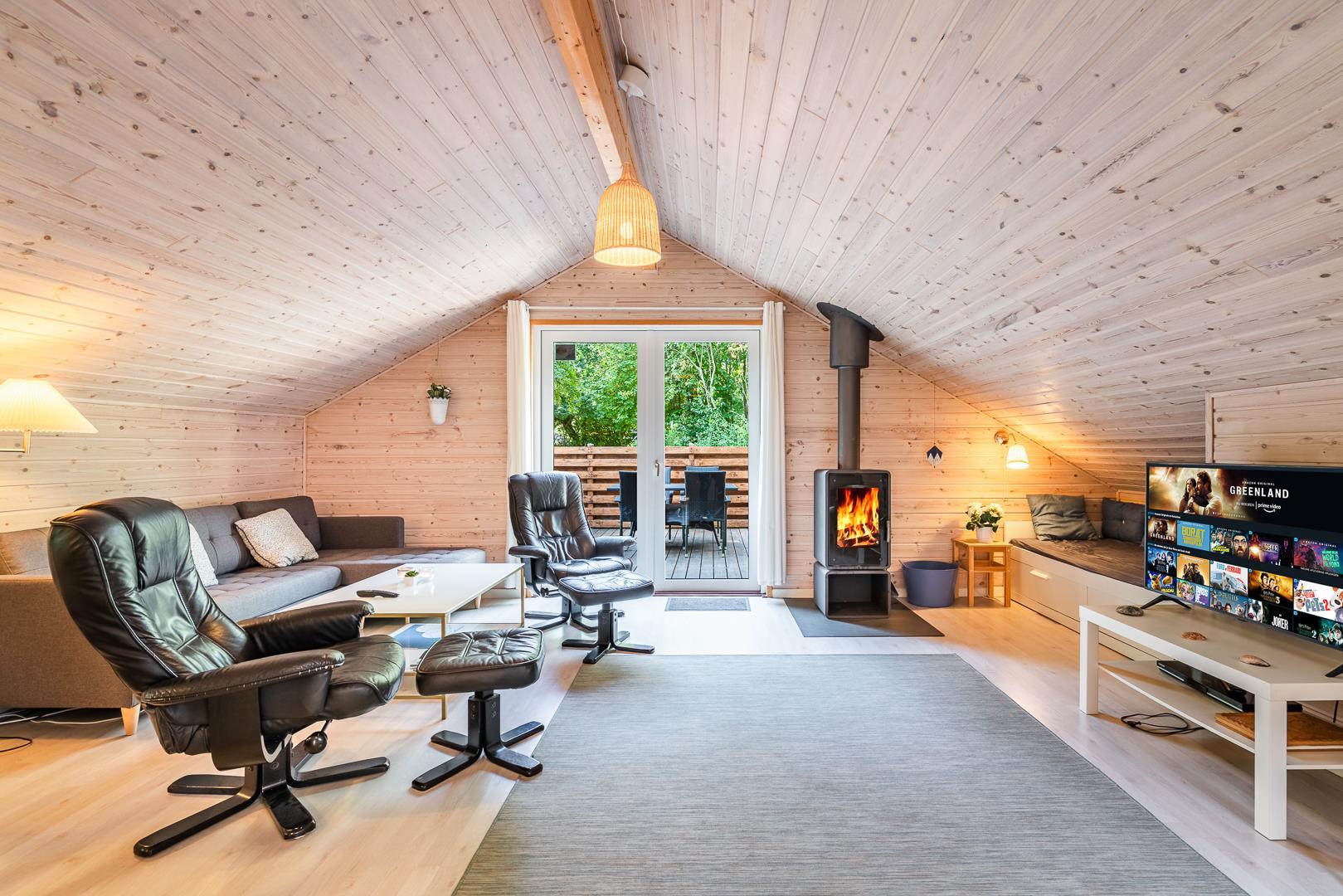 Gemütlicher Innenbereich mit Kamin, Wärmepumpe und moderner Ausstattung