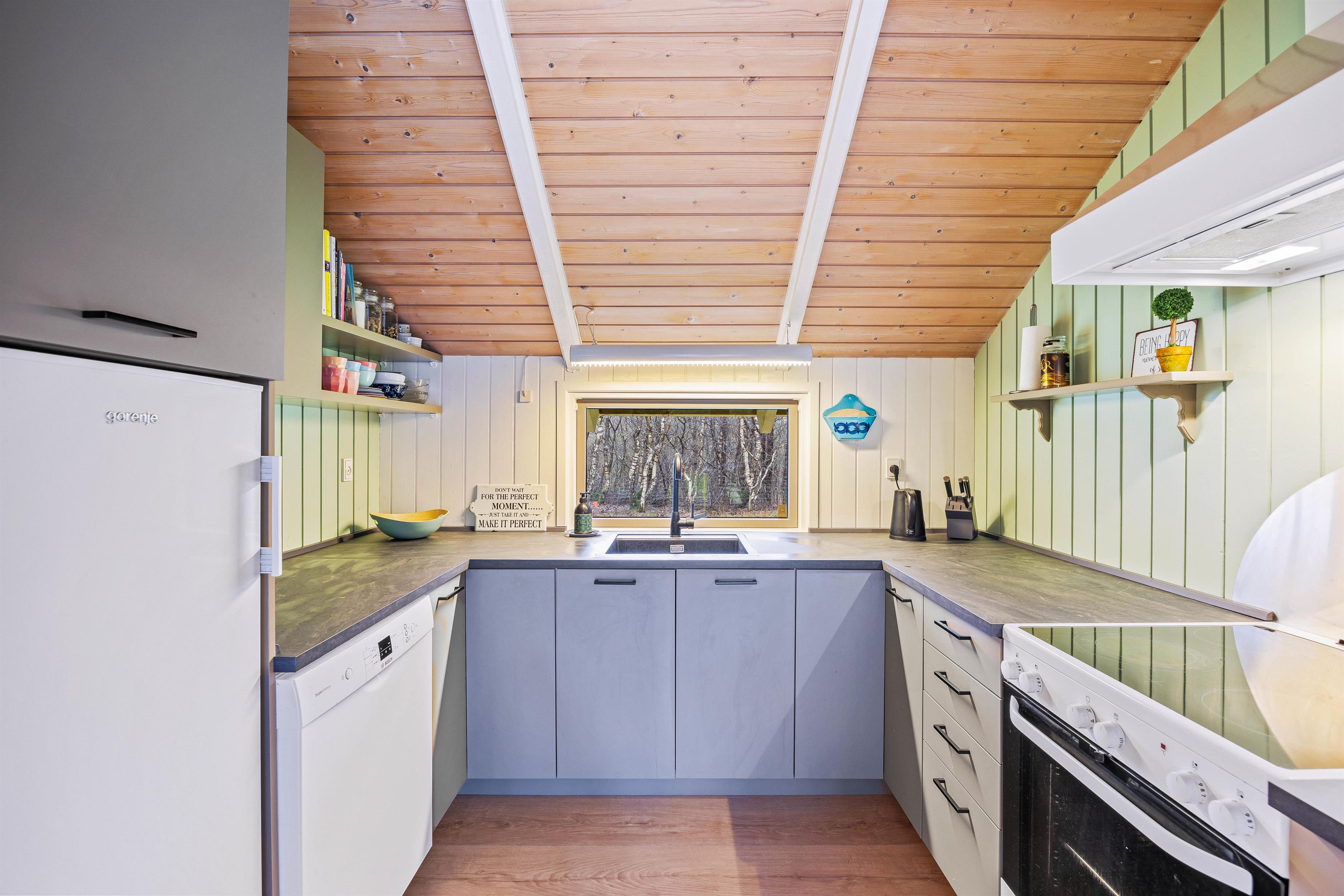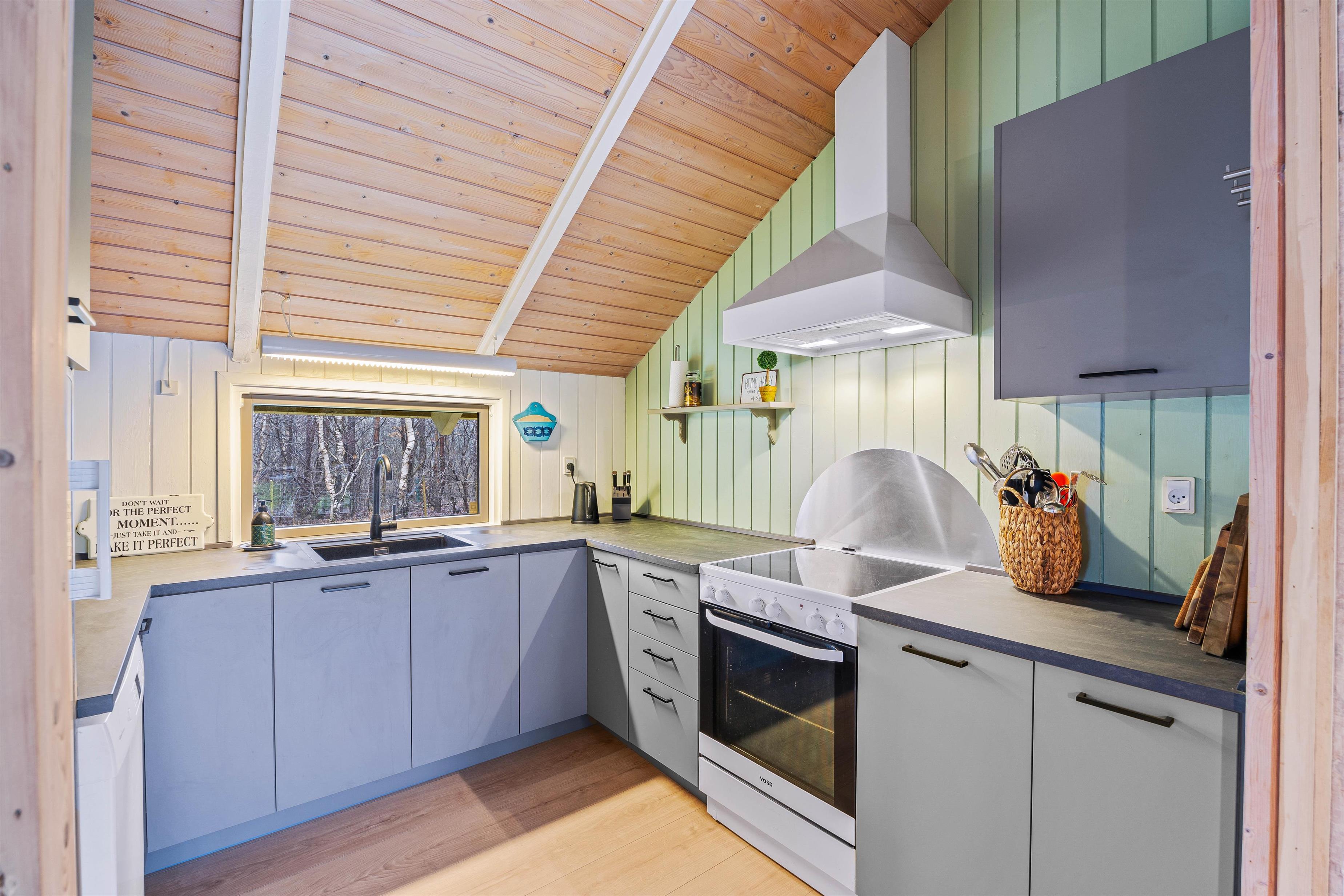 The open-plan living area is the heart of the holiday home, where you can relax in front of the wood-burning stove after an eventful day. The modern, well-equipped kitchen has everything you need for cooking, including a dishwasher to make cleaning up easier. You can treat your loved ones to delicious meals with ease.