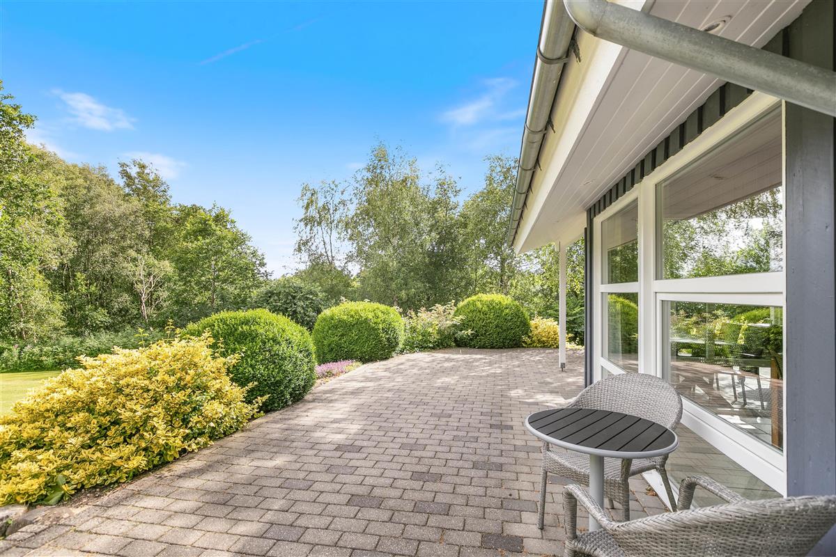 Set within spacious natural grounds, the outdoor area at Sydskrænten 23 invites various activities and moments of relaxation. The different terraces offer suitable spaces for every mood and weather condition.