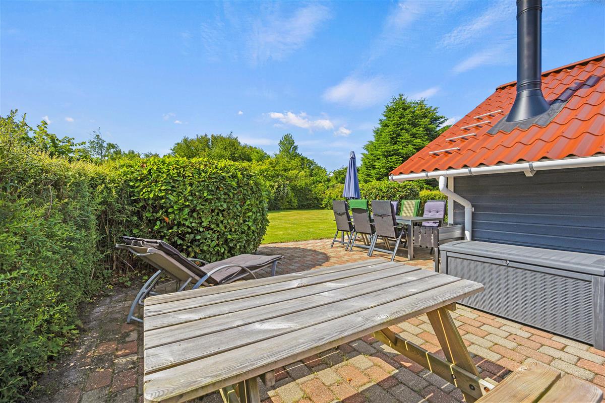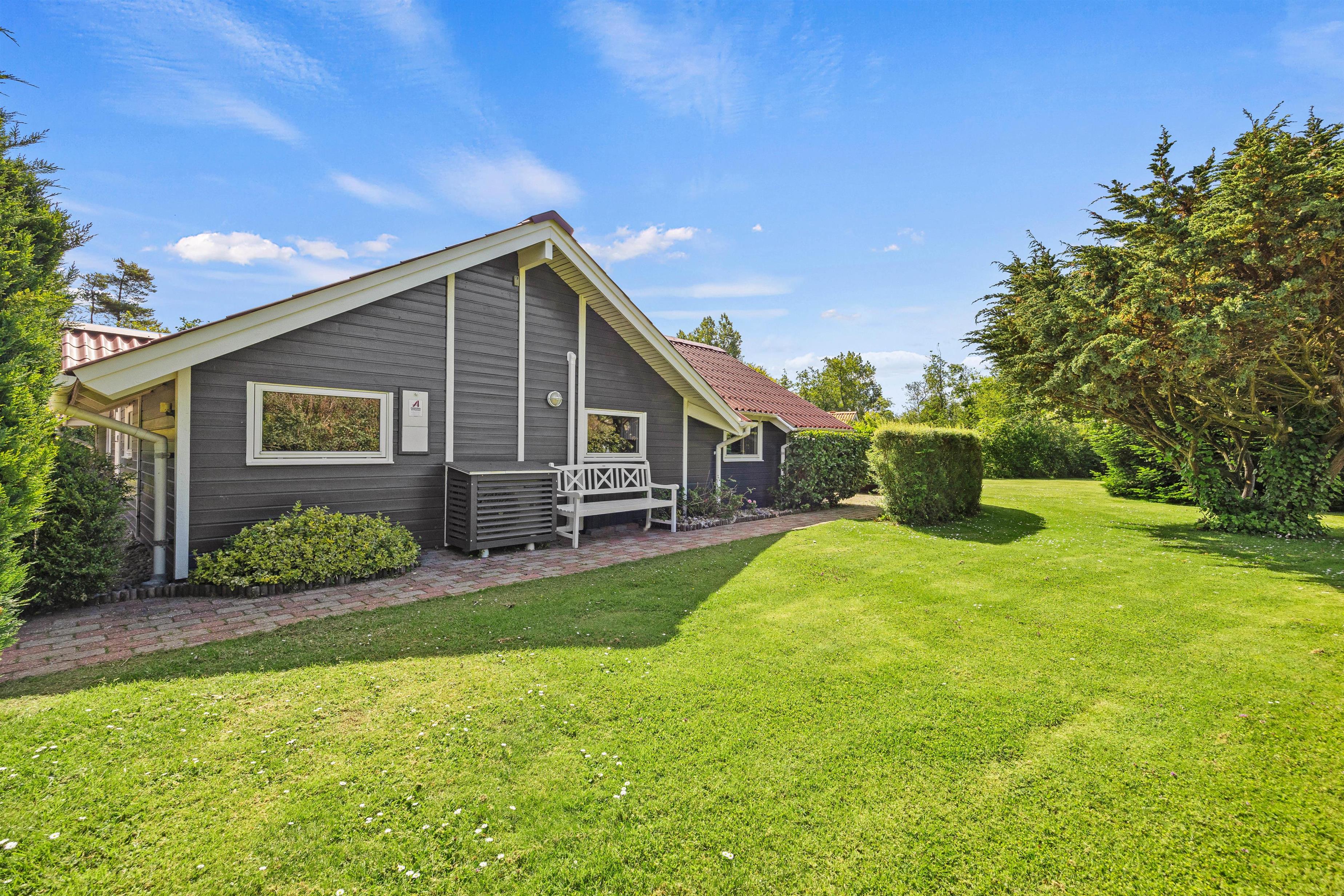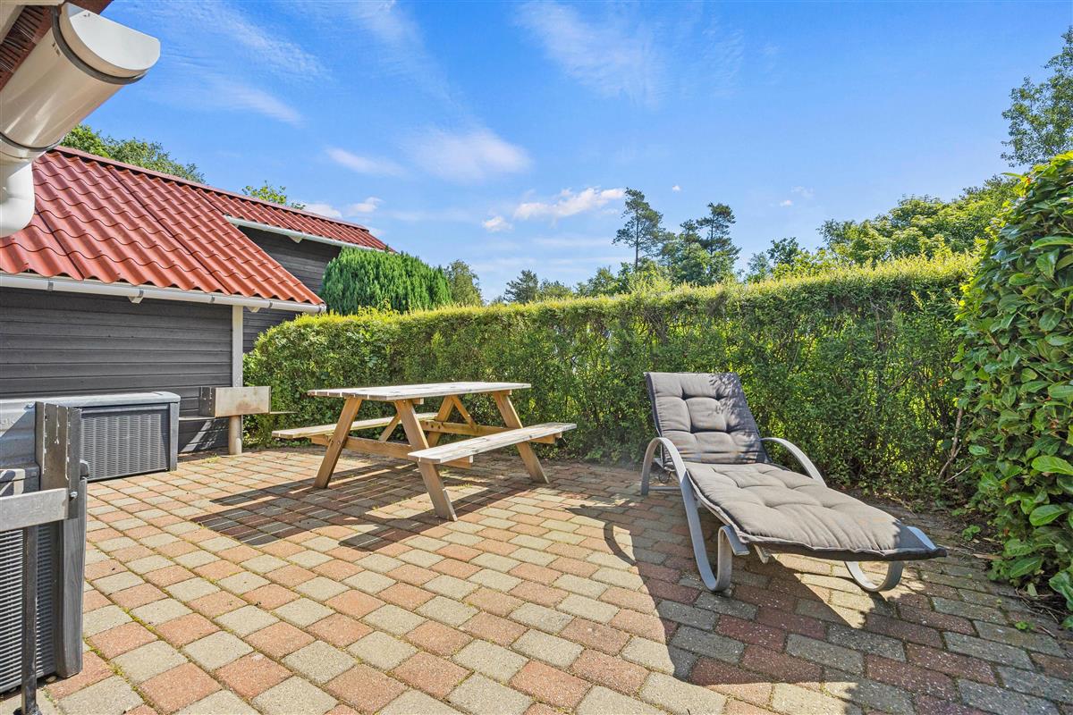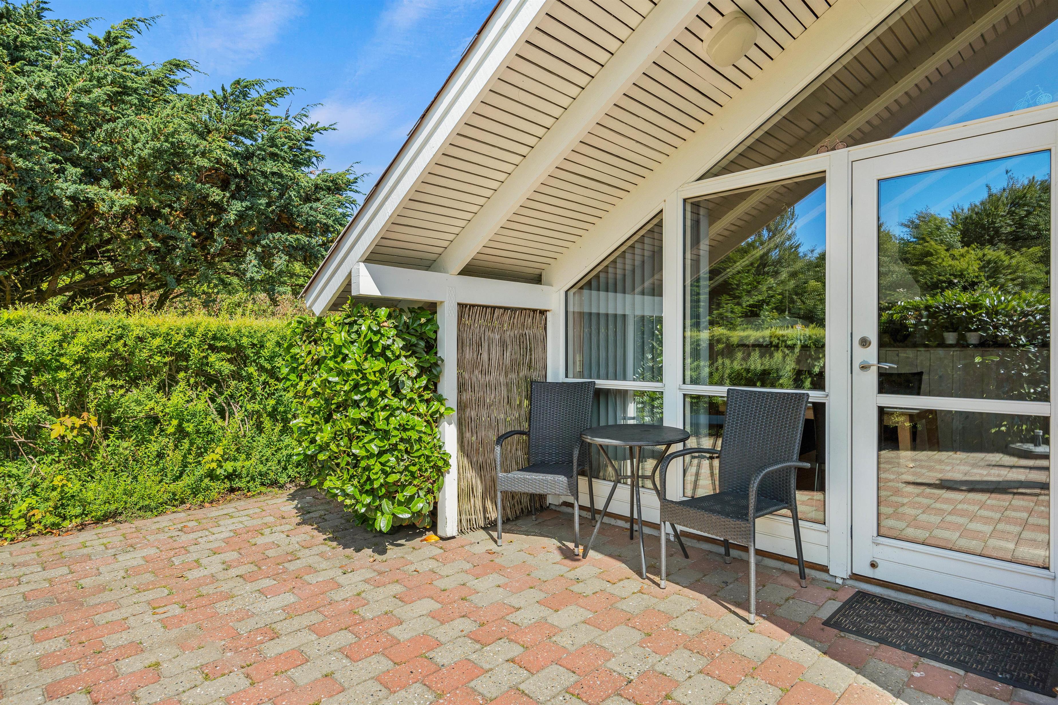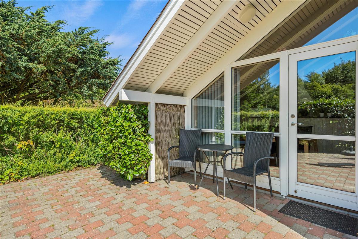 The holiday home at Fyrrelunden 50 is surrounded by a large lawn and offers plenty of space for outdoor activities. Various terraces provide numerous options for outdoor living. An open terrace is perfect for enjoying the sun's warmth or celebrating breakfast outdoors. For moments when more privacy is desired, the screened terrace offers a cosy retreat. Additionally, the covered terrace allows full use of the outdoor area even in unpredictable weather, whether for a comfortable dinner or relaxing hours with a cup of tea.