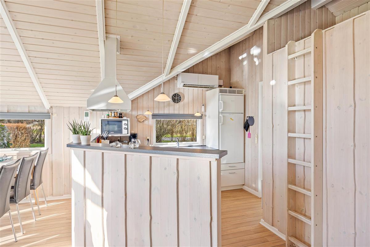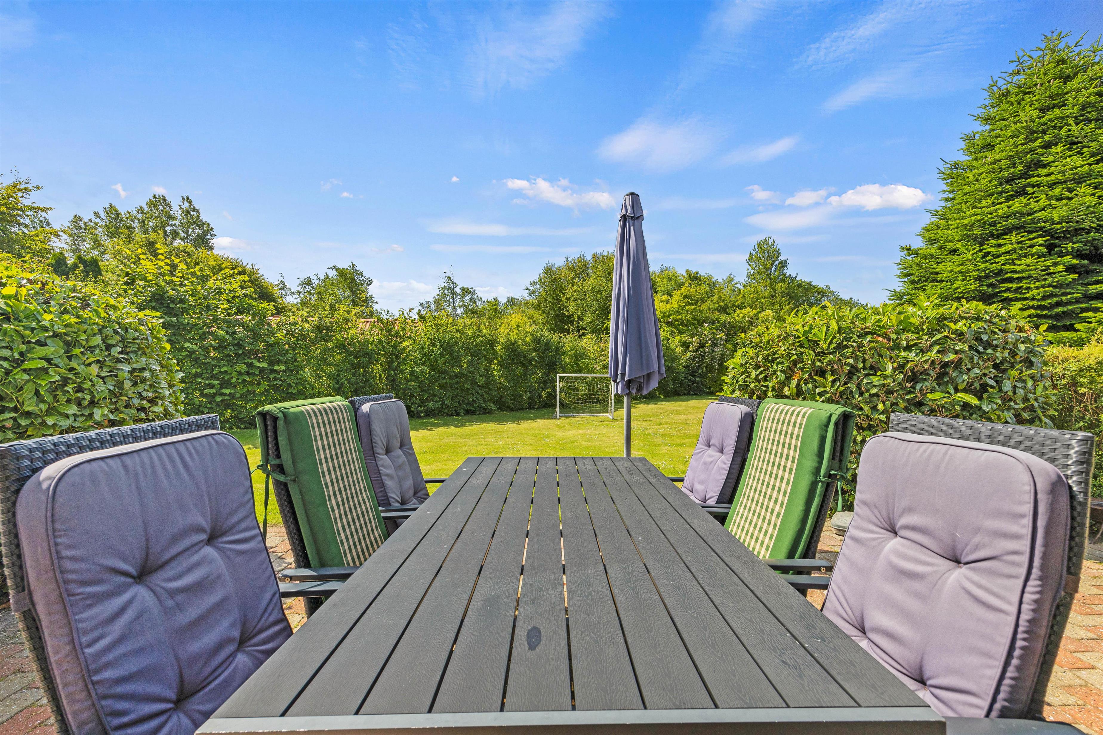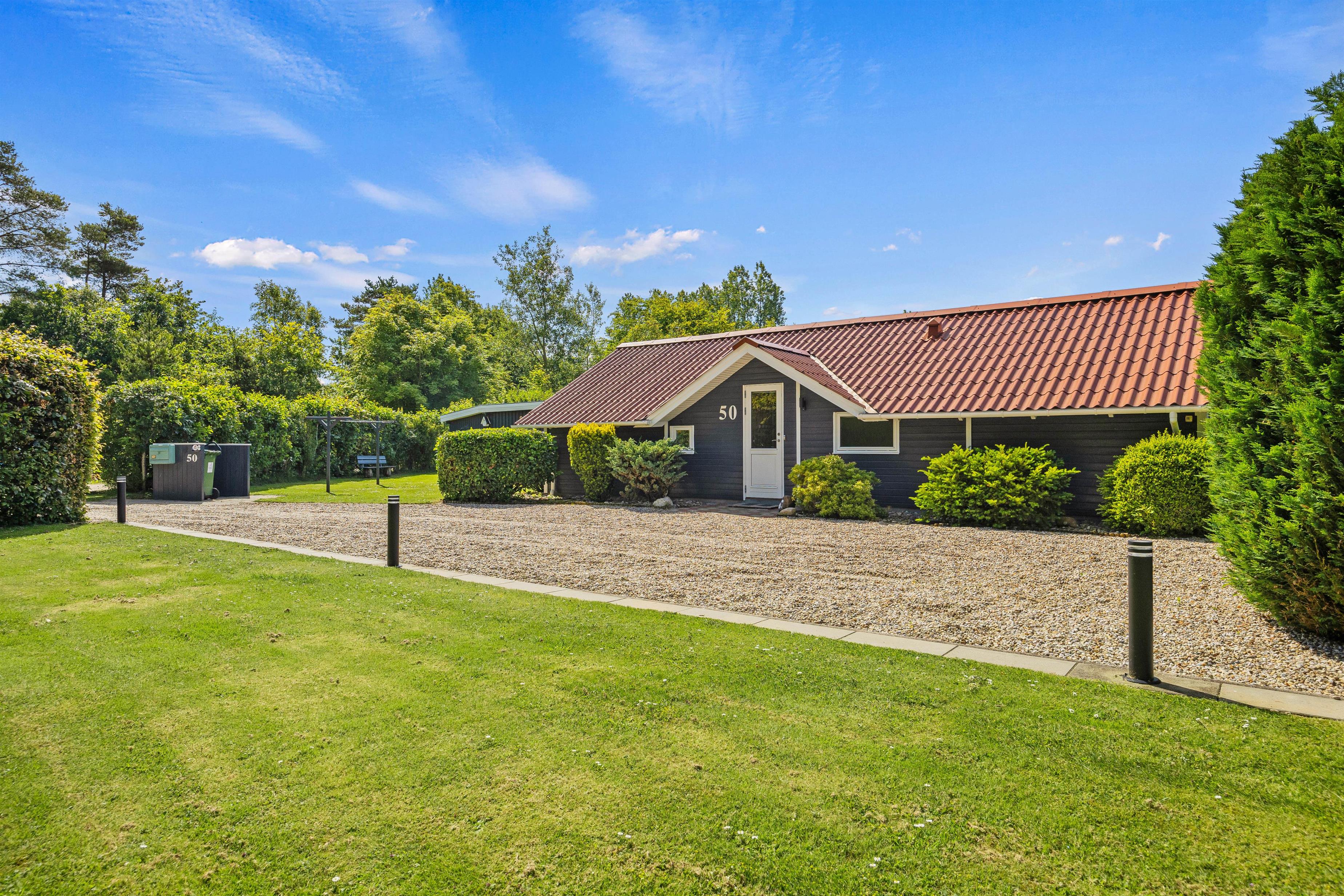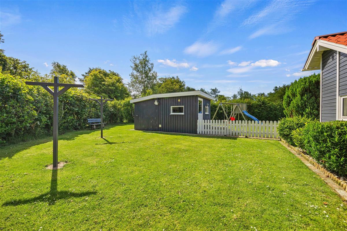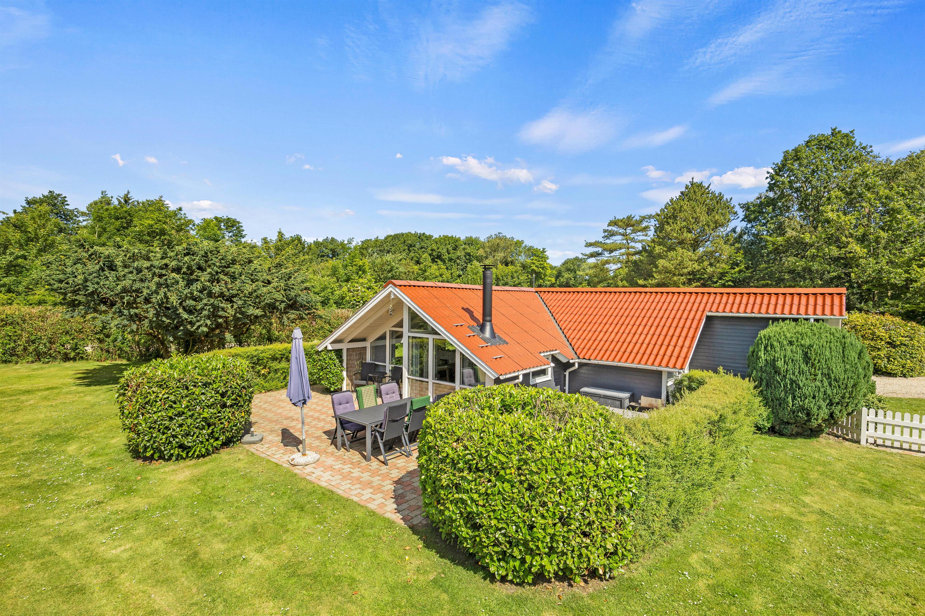 The holiday home at Fyrrelunden 50 is surrounded by a large lawn and offers plenty of space for outdoor activities. Various terraces provide numerous options for outdoor living. An open terrace is perfect for enjoying the sun's warmth or celebrating breakfast outdoors. For moments when more privacy is desired, the screened terrace offers a cosy retreat. Additionally, the covered terrace allows full use of the outdoor area even in unpredictable weather, whether for a comfortable dinner or relaxing hours with a cup of tea.