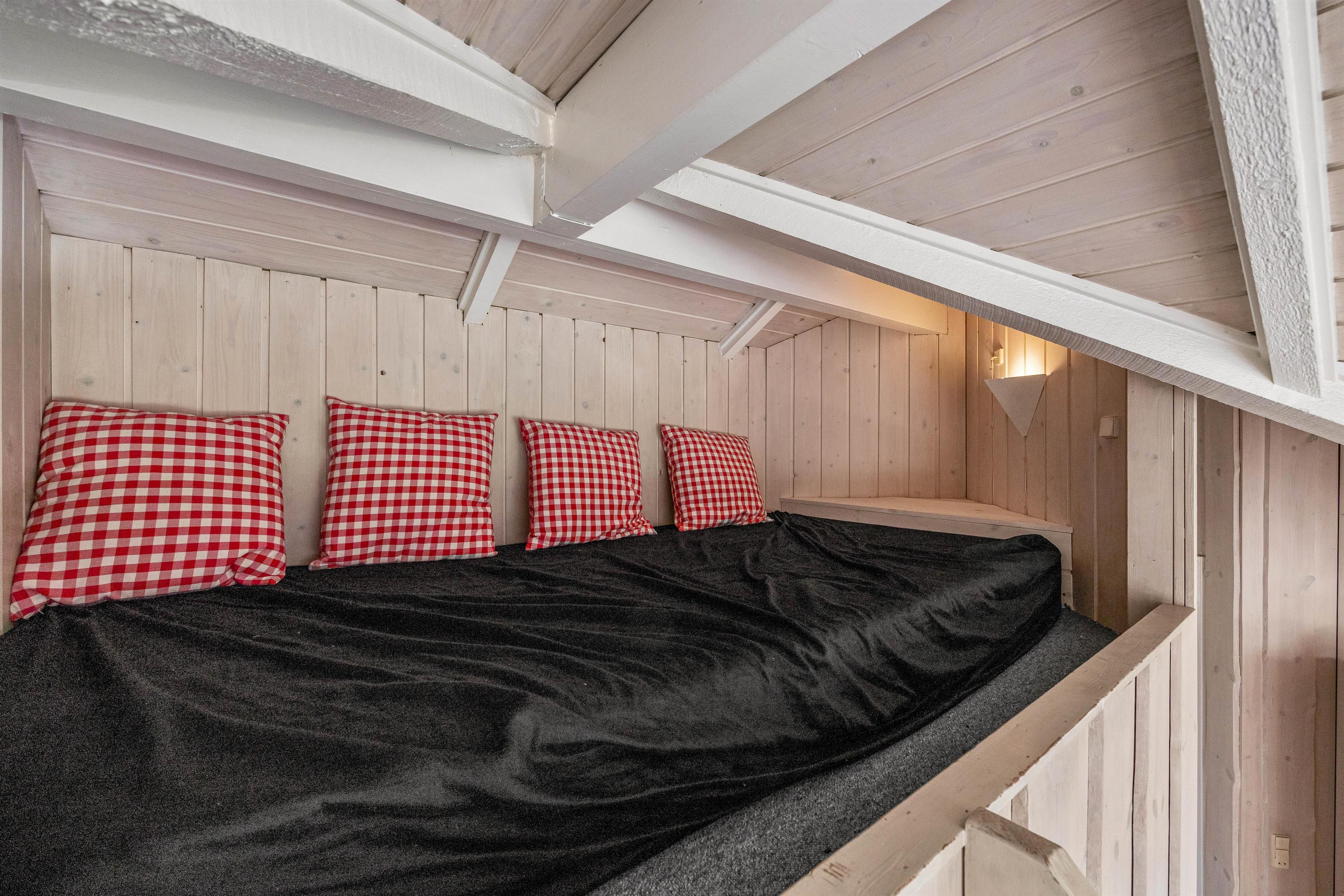 The holiday home's three bedrooms provide comfortable sleeping arrangements for up to 6 people. Two double beds and one bunk bed offer comfortable sleeping options for both adults and children. The modern bathroom features underfloor heating, ensuring pleasant temperatures throughout the year. A highlight is the hot tub, offering relaxation after an active day.