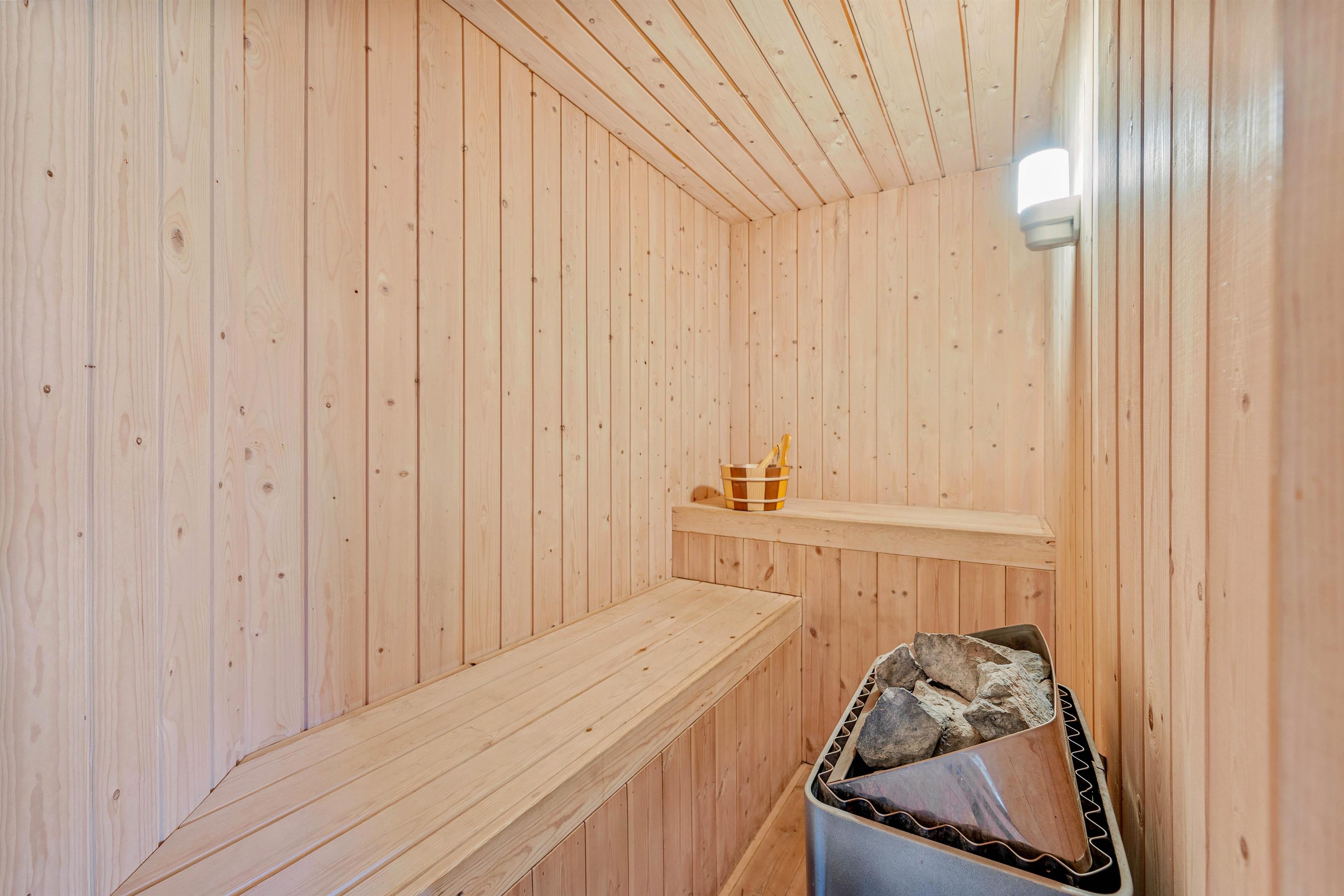 Wood-burning stove, sauna & hot tub at Fyrrelunden 50
