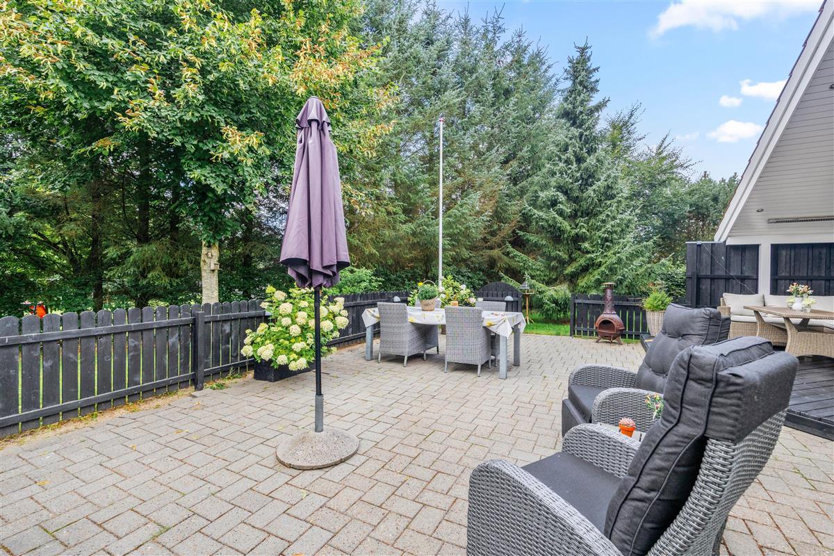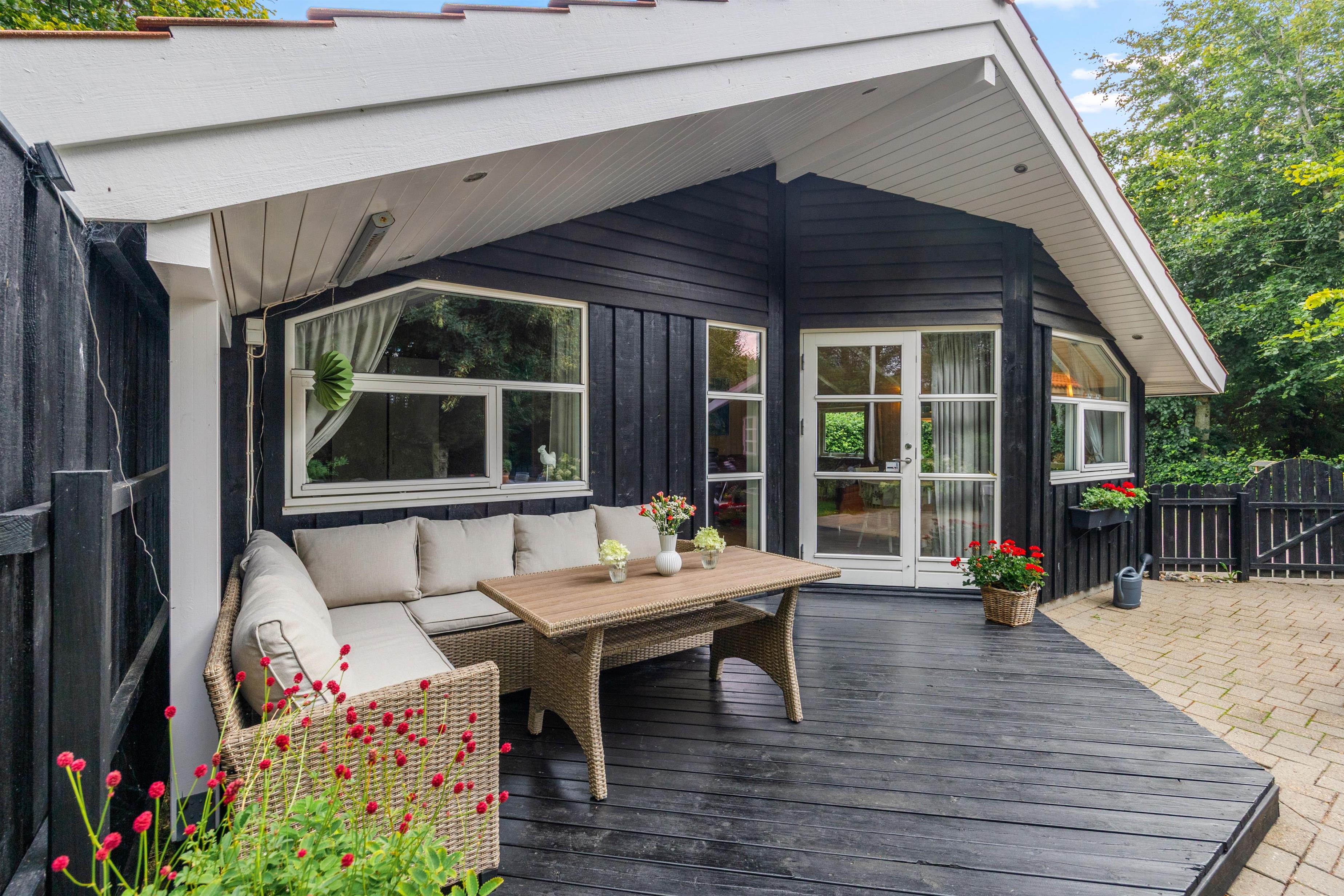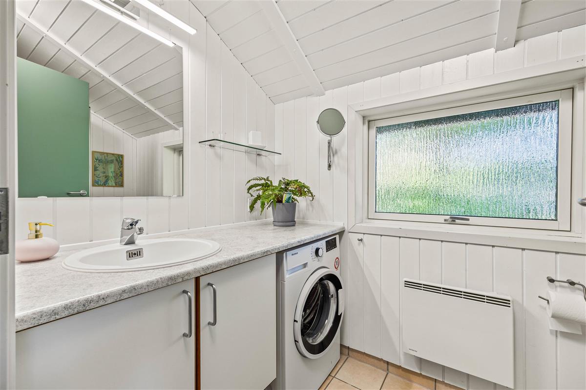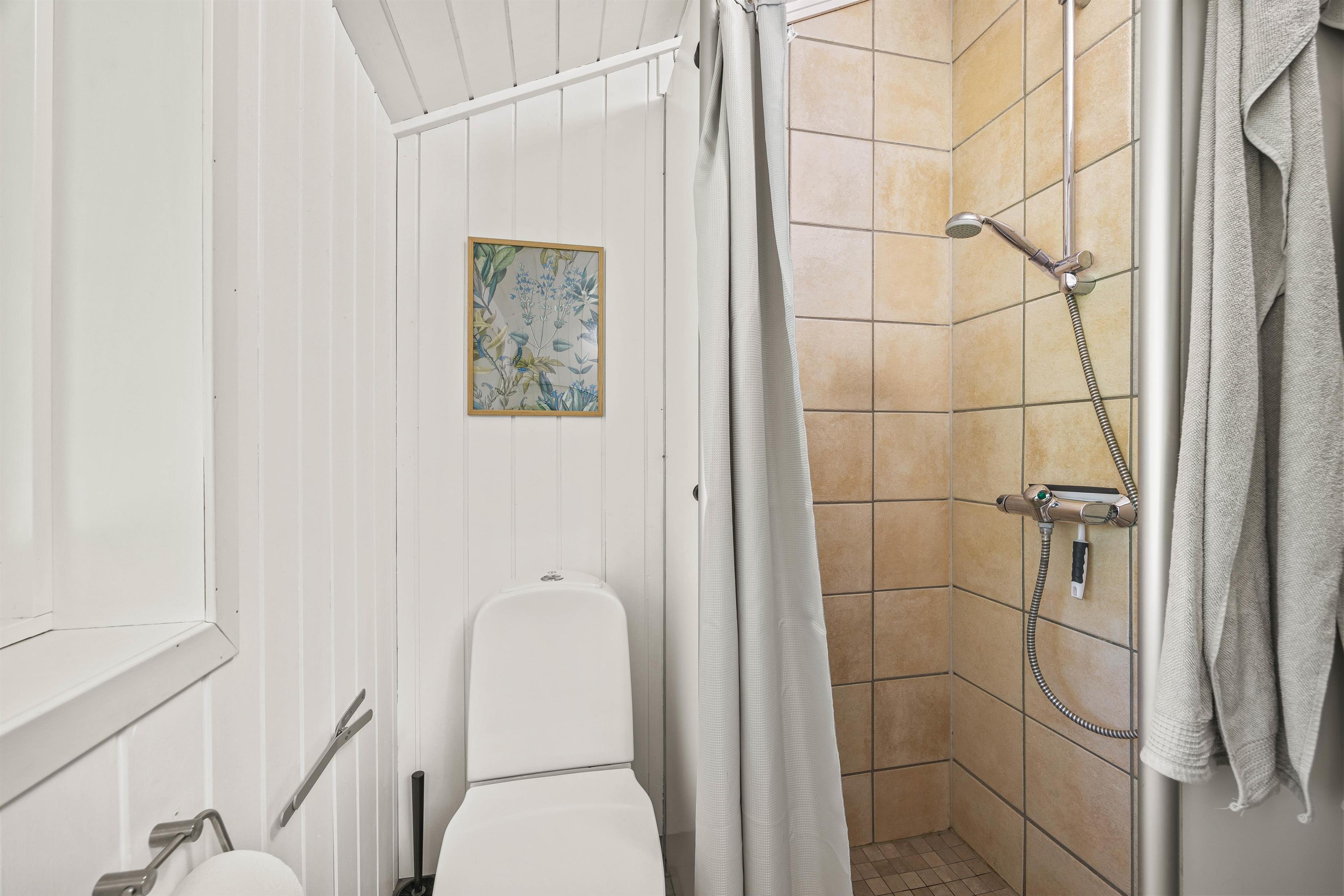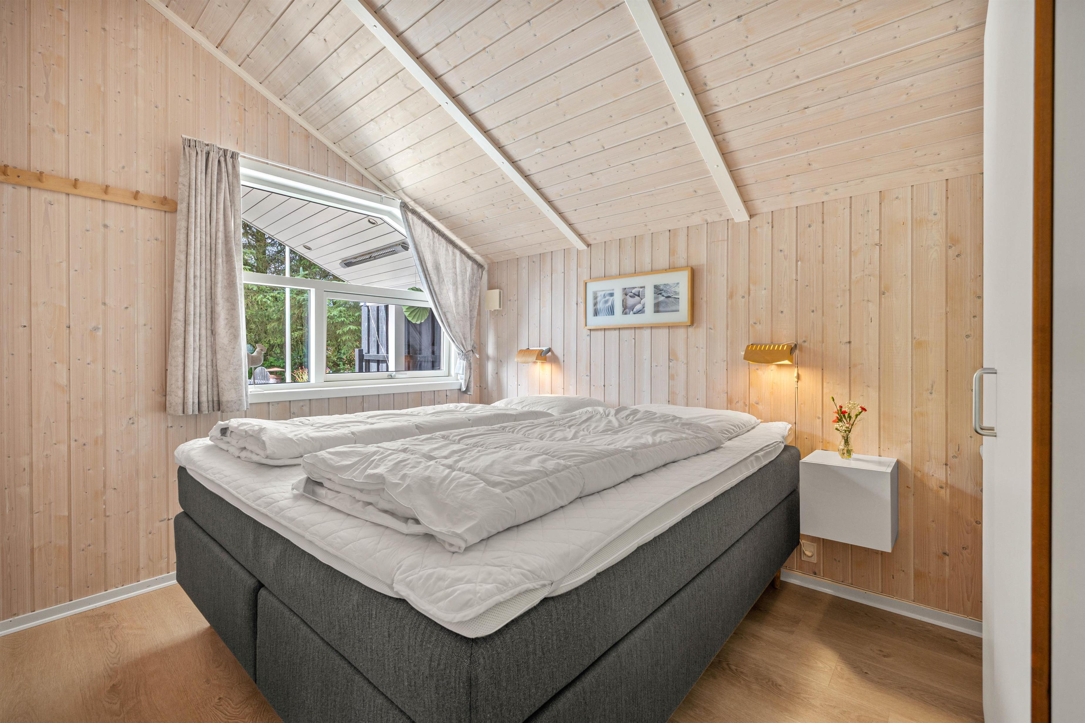 The holiday home at Blomstervangen 12 features a sheltered, enclosed and covered terrace, perfect for relaxing moments outdoors. Garden furniture and a barbecue are provided for al fresco dining. Children can enjoy the sandpit located on the natural lawn area, providing extra entertainment.