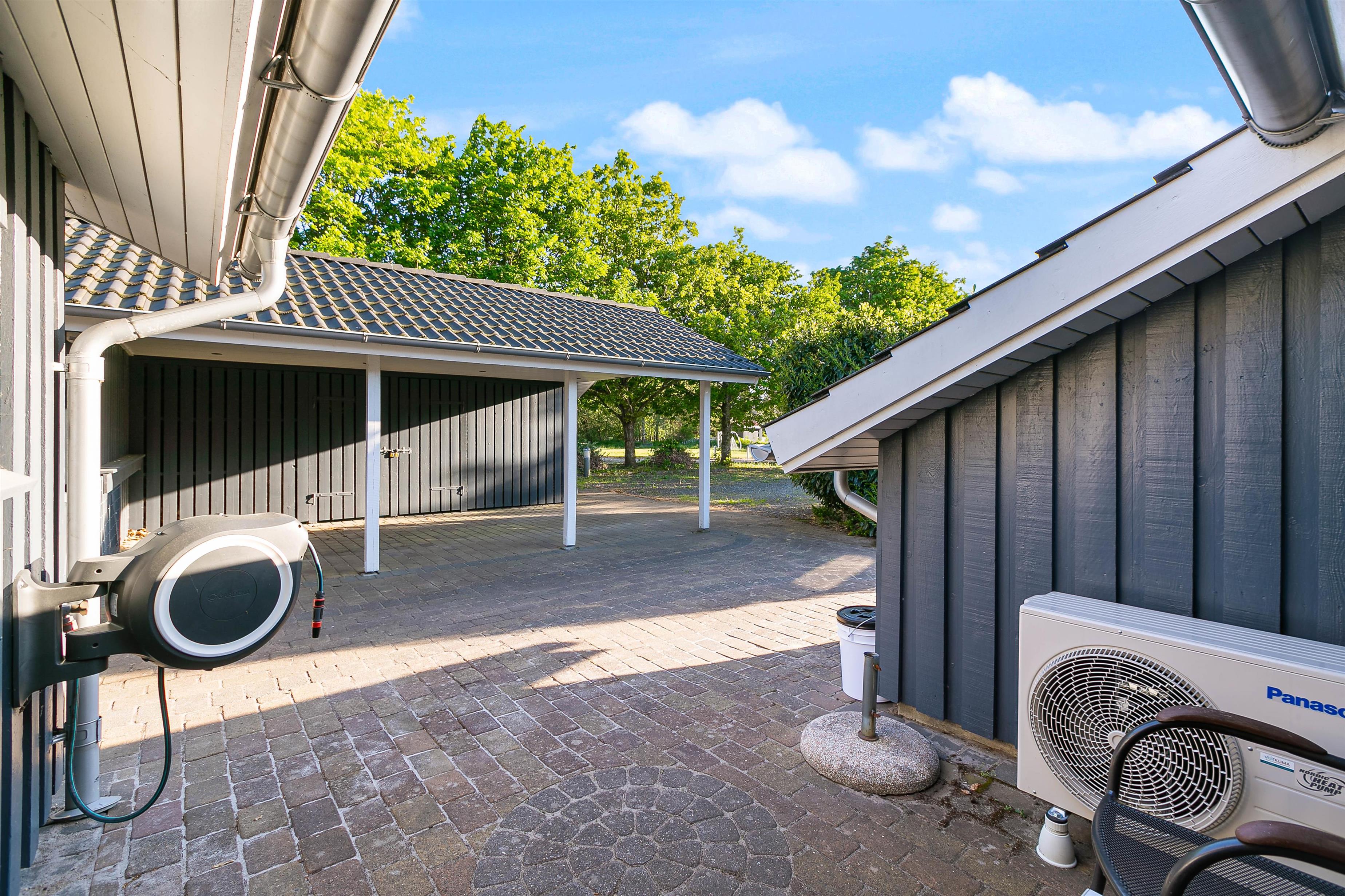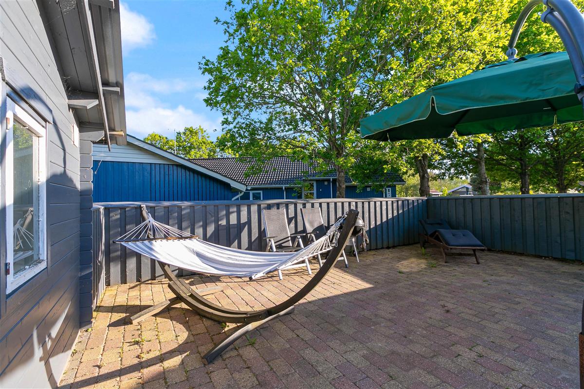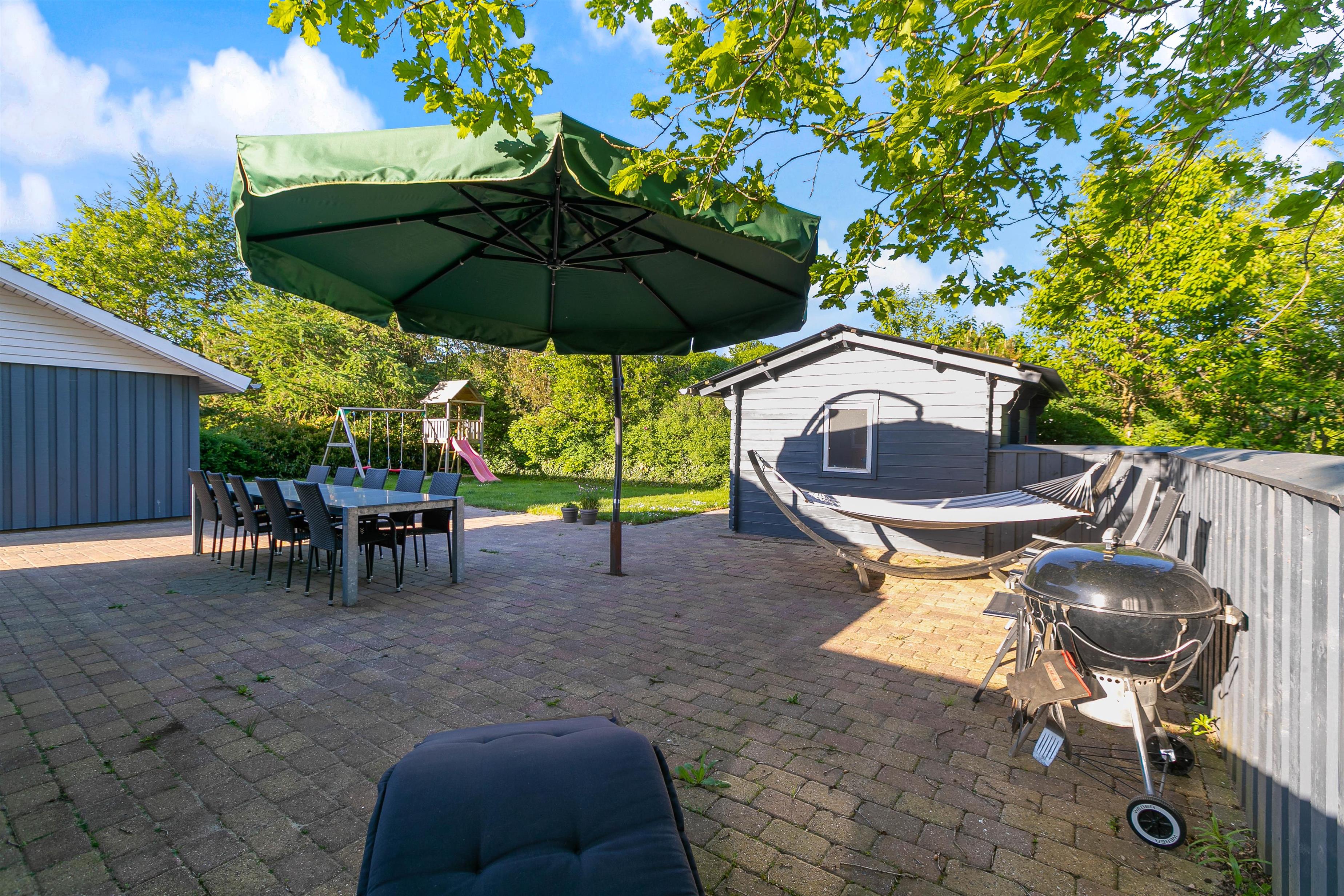 The outdoor area at Blomstervangen 84 is a paradise for those who enjoy spending time outside. The fenced lawn offers peace of mind and security for both children and your four-legged companions. Here they can play freely while you relax and take in the green landscape.