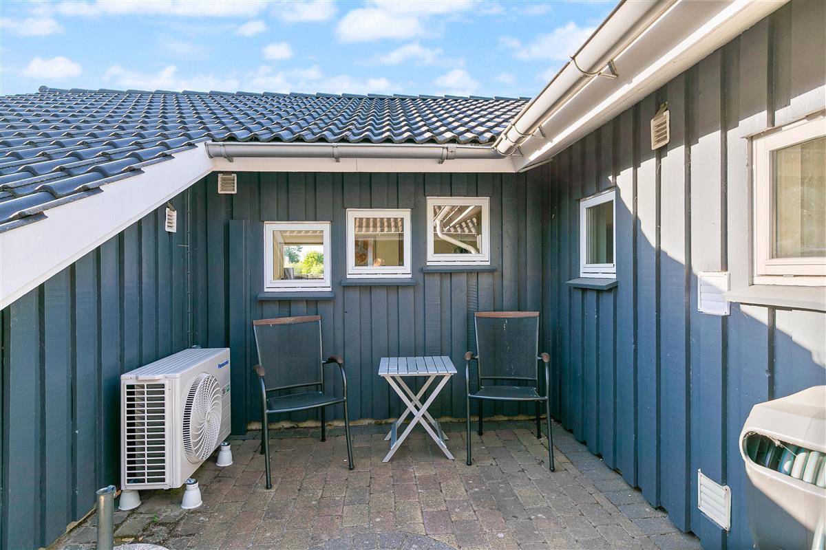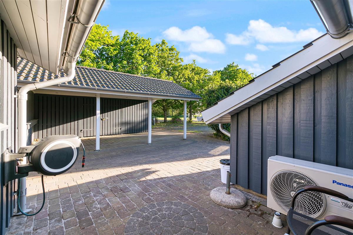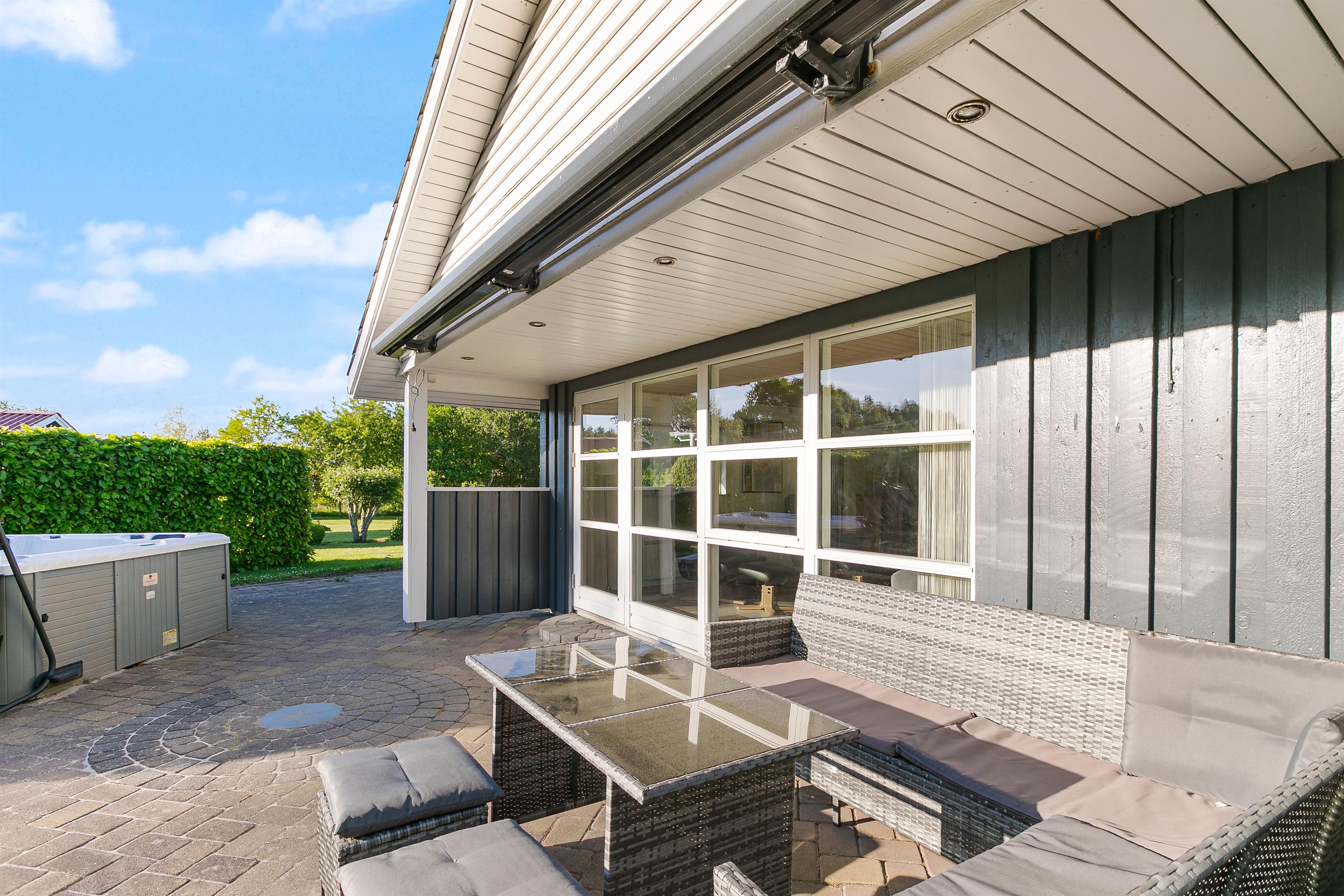 The outdoor area at Blomstervangen 84 is a paradise for those who enjoy spending time outside. The fenced lawn offers peace of mind and security for both children and your four-legged companions. Here they can play freely while you relax and take in the green landscape.