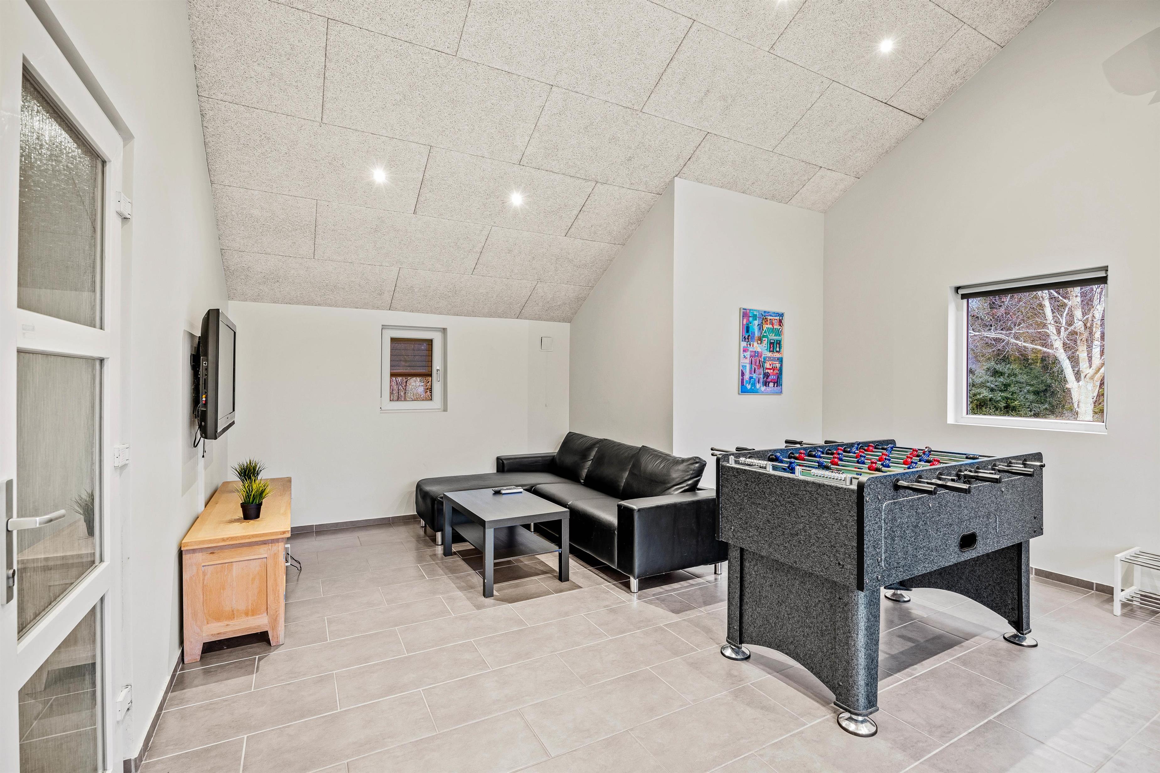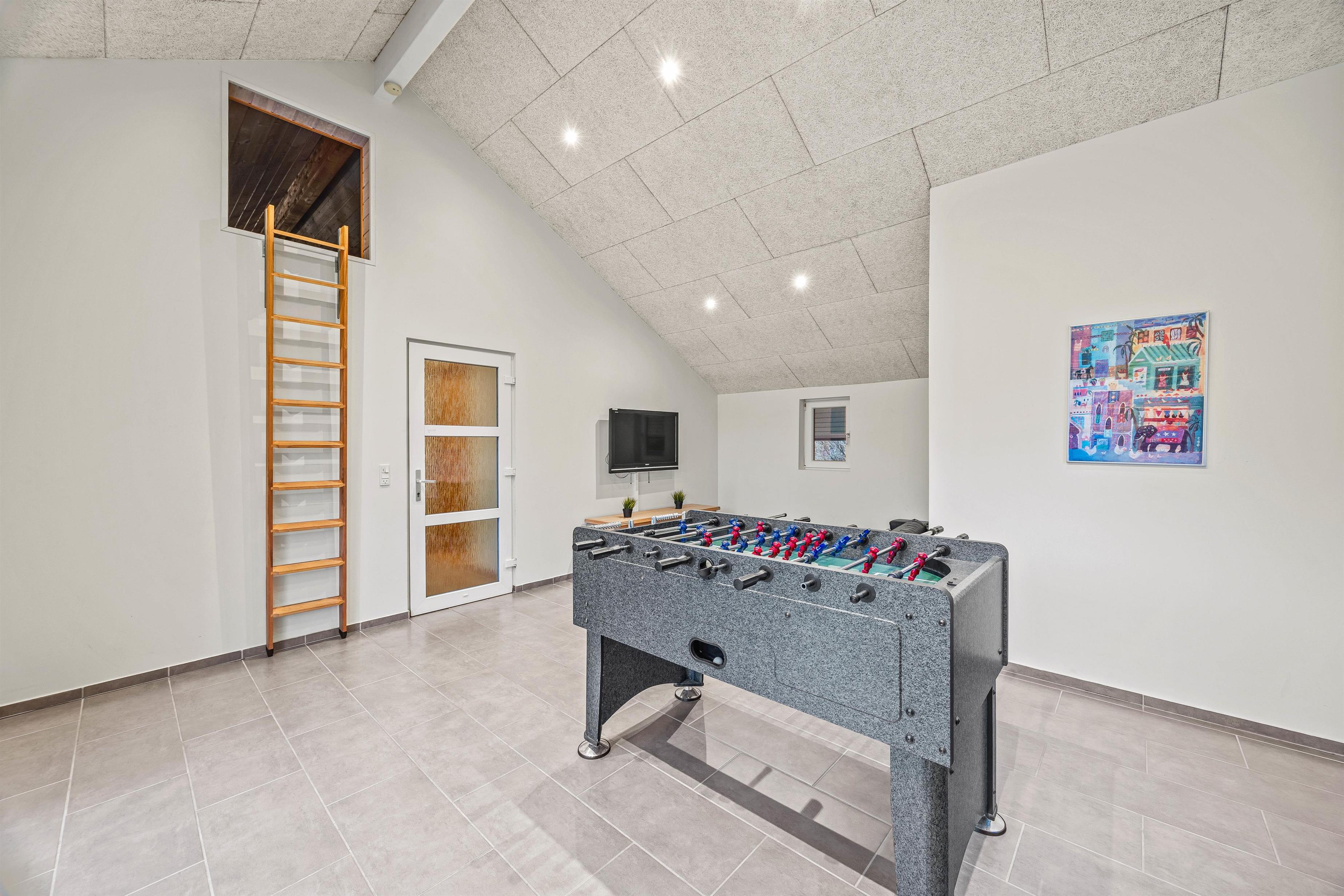 In addition to the various relaxation options in and around the holiday home, a dedicated leisure room provides perfect entertainment. Here you can challenge each other to table football matches. The room is equipped with a comfortable sofa and television, perfect for cosy film evenings together.