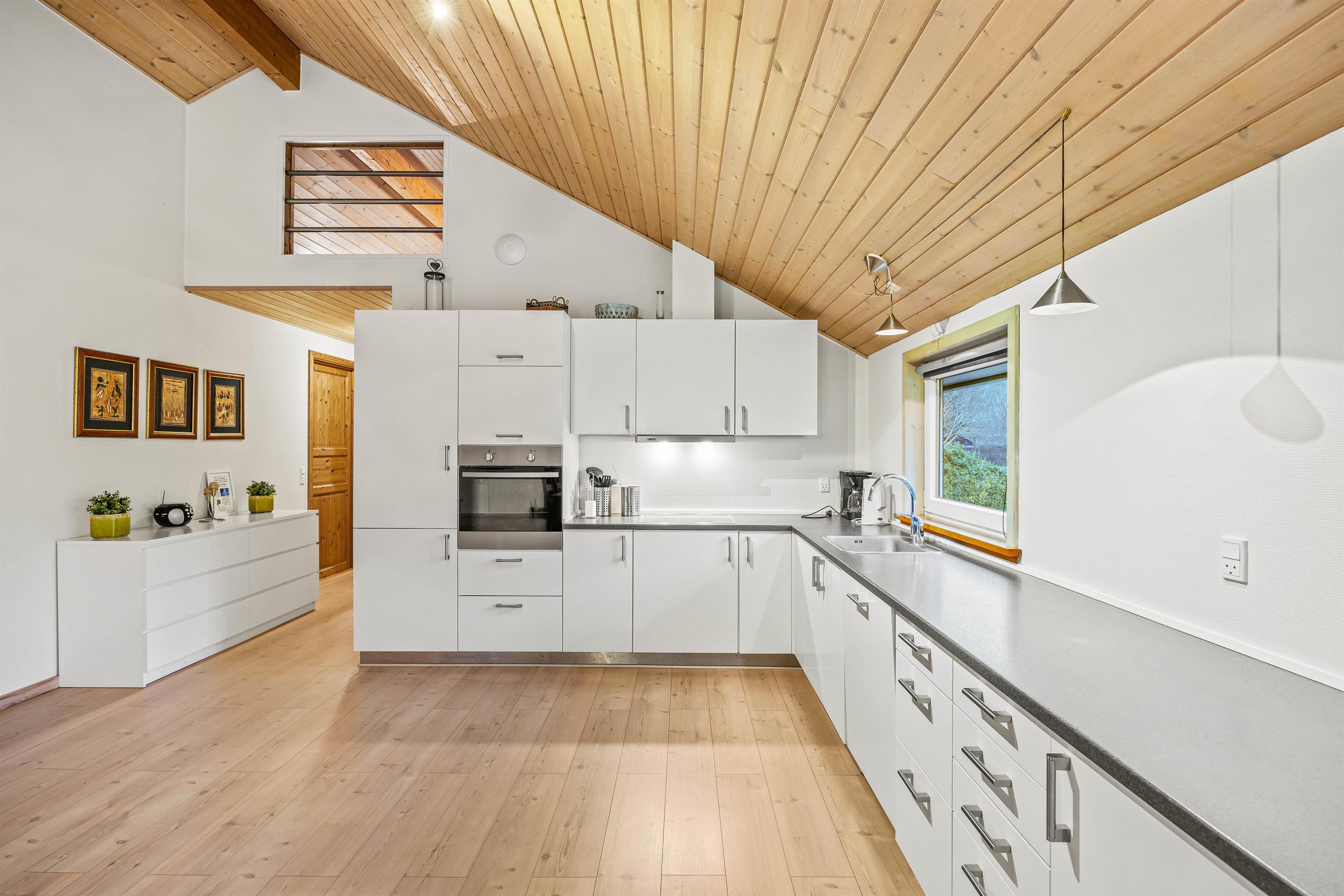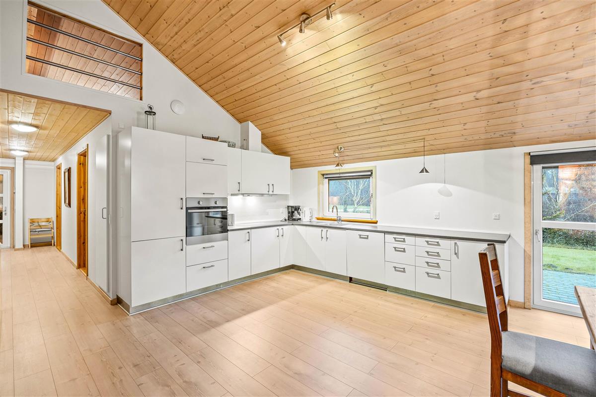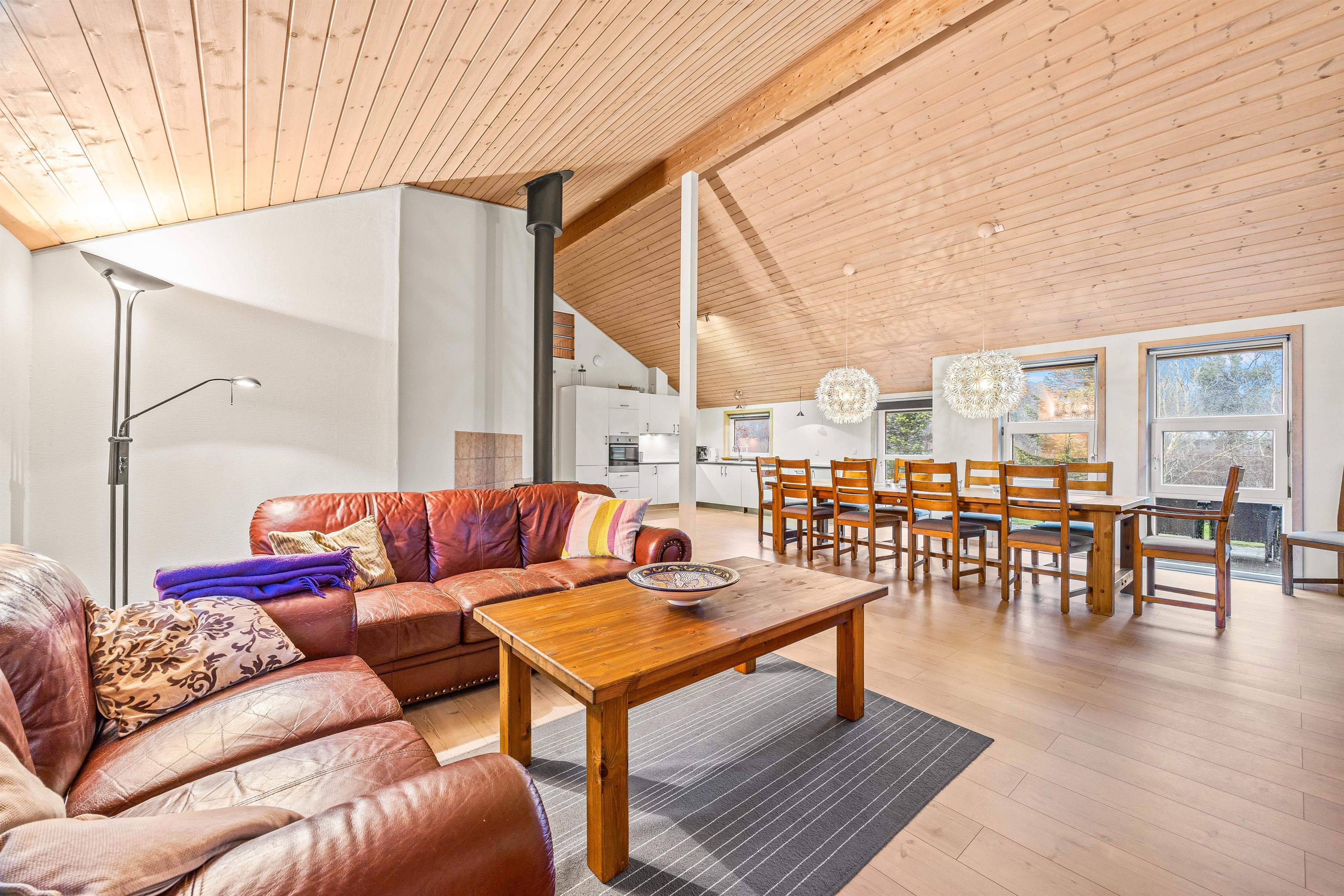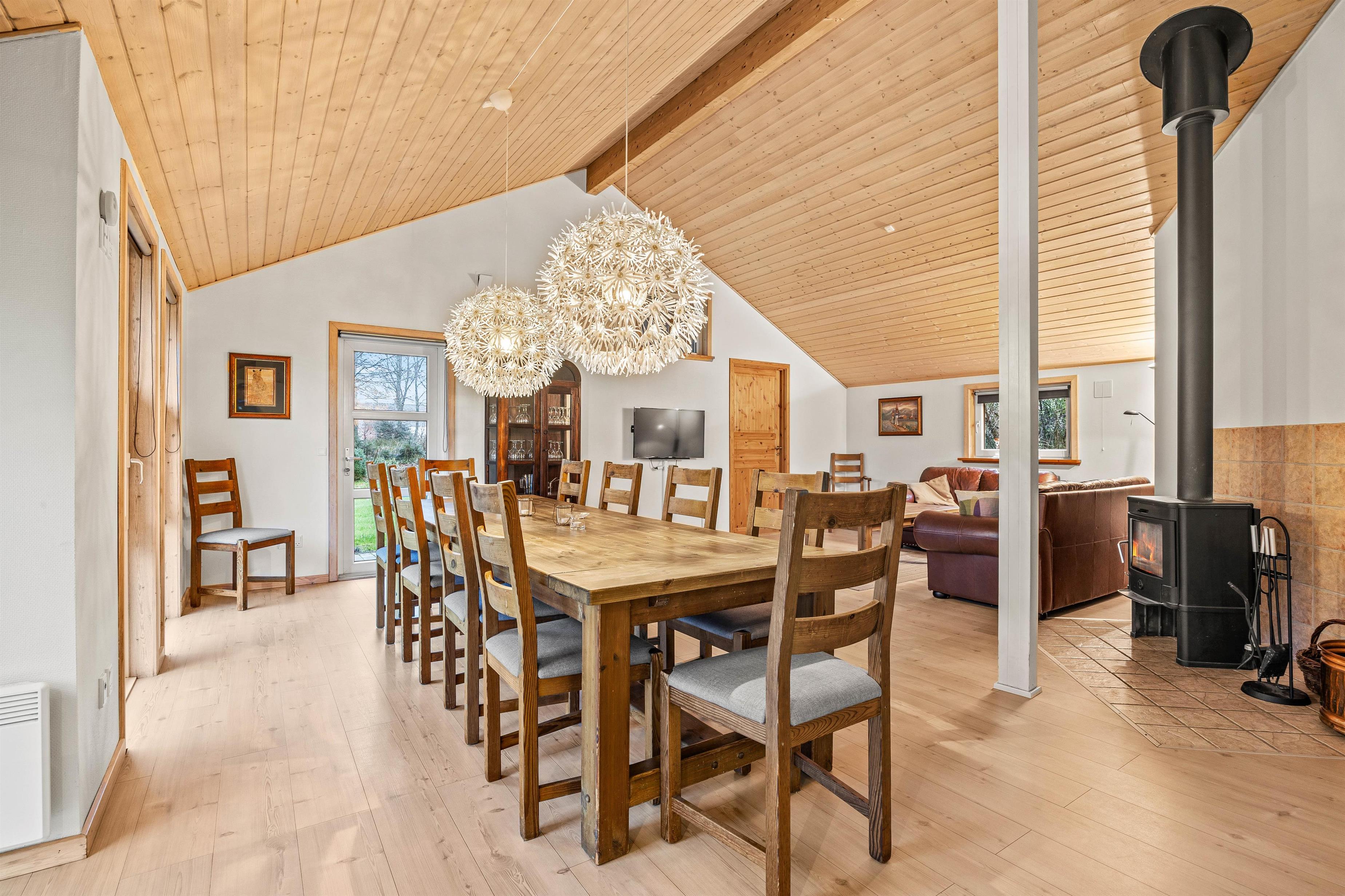 Inside, you'll find a spacious living and dining area perfect for socialising. Whether you're cooking together, dining or simply relaxing – there's plenty of space for memorable moments with family and friends. During cooler months, you can get cosy by the wood-burning stove while the warmth of the fire creates a comfortable atmosphere. With four bedrooms, the house comfortably accommodates up to eight people – ideal for family holidays or getaways with friends. The fully equipped kitchen features a dishwasher making cleanup effortless. A washing machine and tumble dryer are also provided. For added convenience, the house offers a main bathroom and a guest toilet, ensuring both privacy and flexibility.