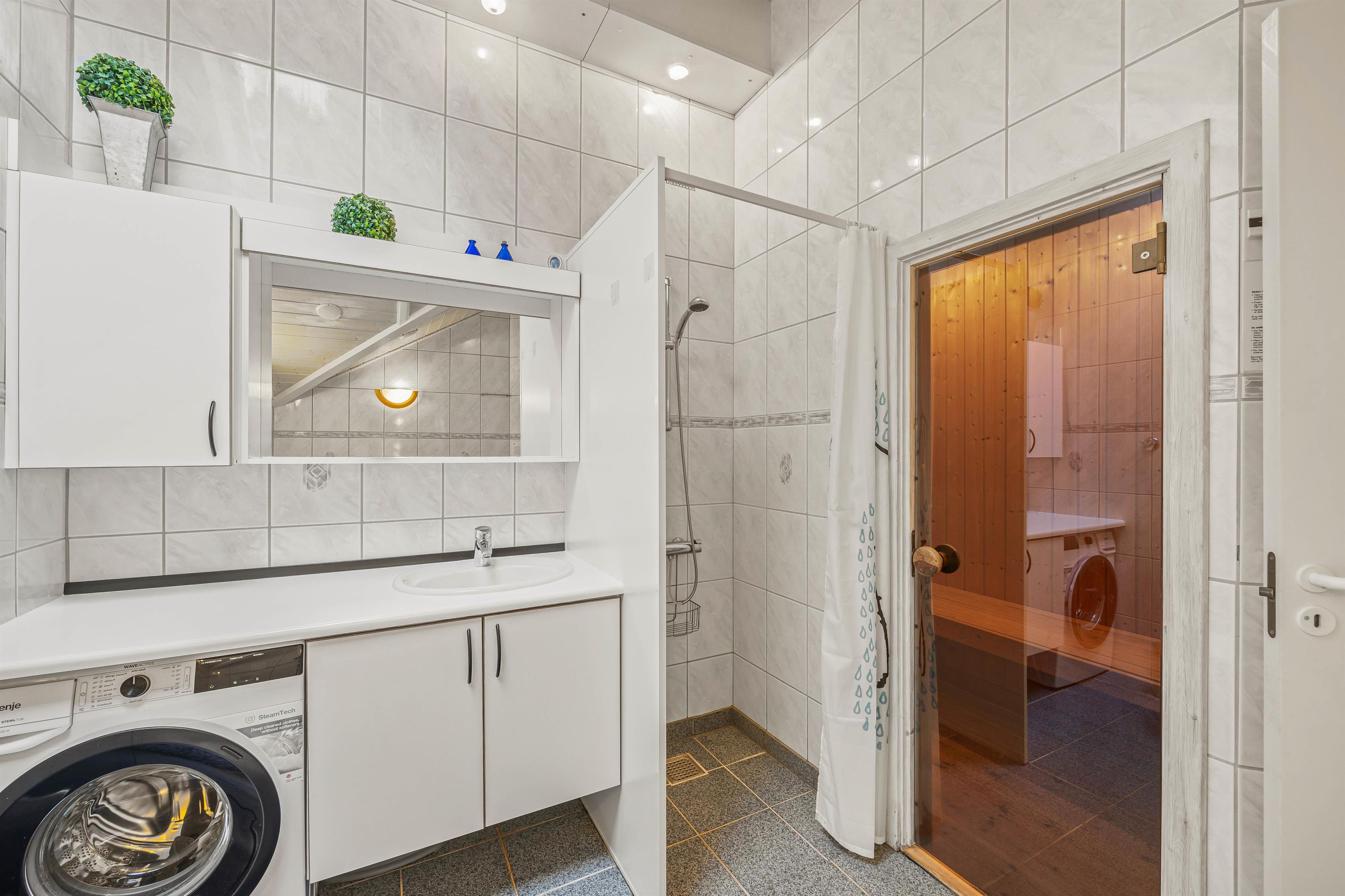 A washing machine makes daily life considerably easier, especially during longer stays, ensuring you always have fresh clothes available.