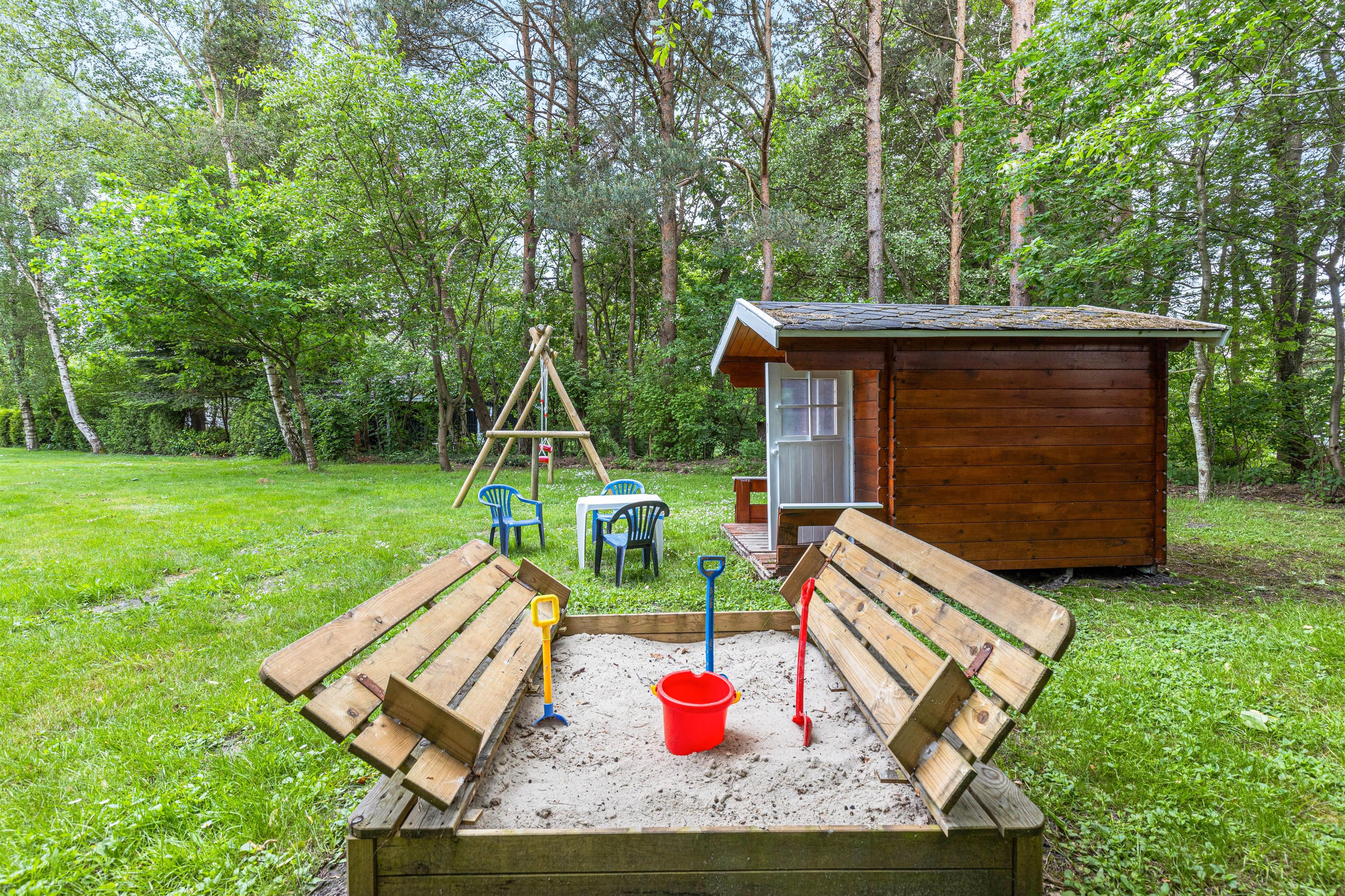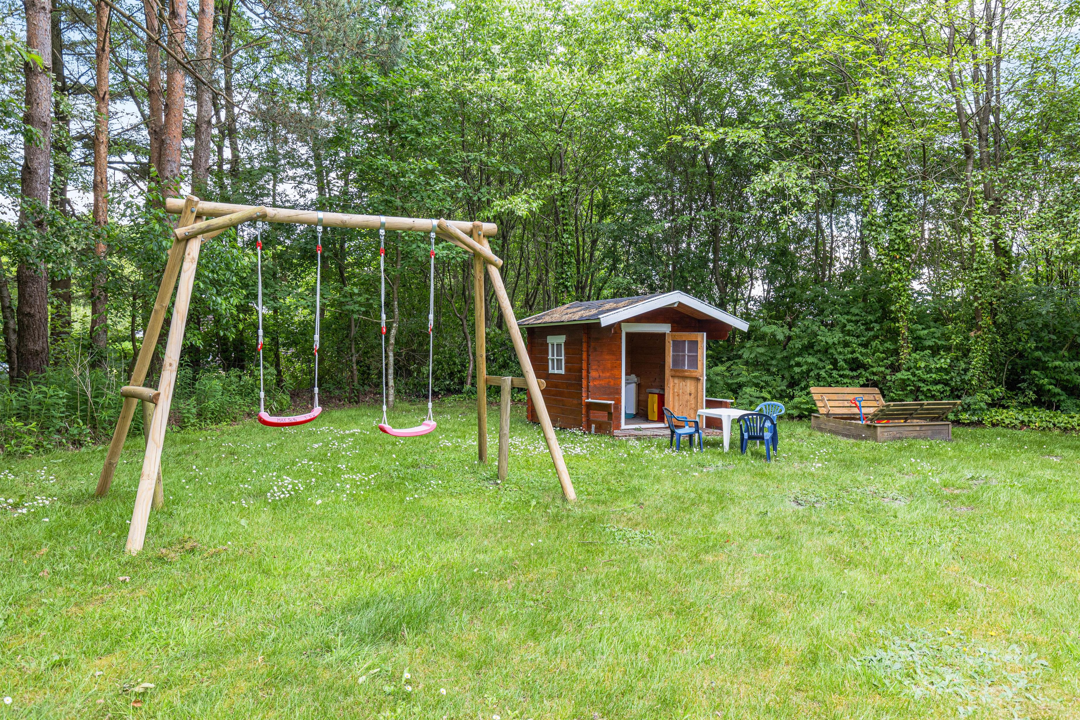 Children will love the swing and sandpit, offering endless play opportunities. The playhouse is sure to be popular, allowing children to let their imagination run wild. The open terrace is perfect for outdoor dining, equipped with a barbecue for enjoyable BBQ evenings or relaxed breakfasts in the morning sun. Thanks to the covered terrace section, you can enjoy the outdoor space and fresh air even in less sunny weather.