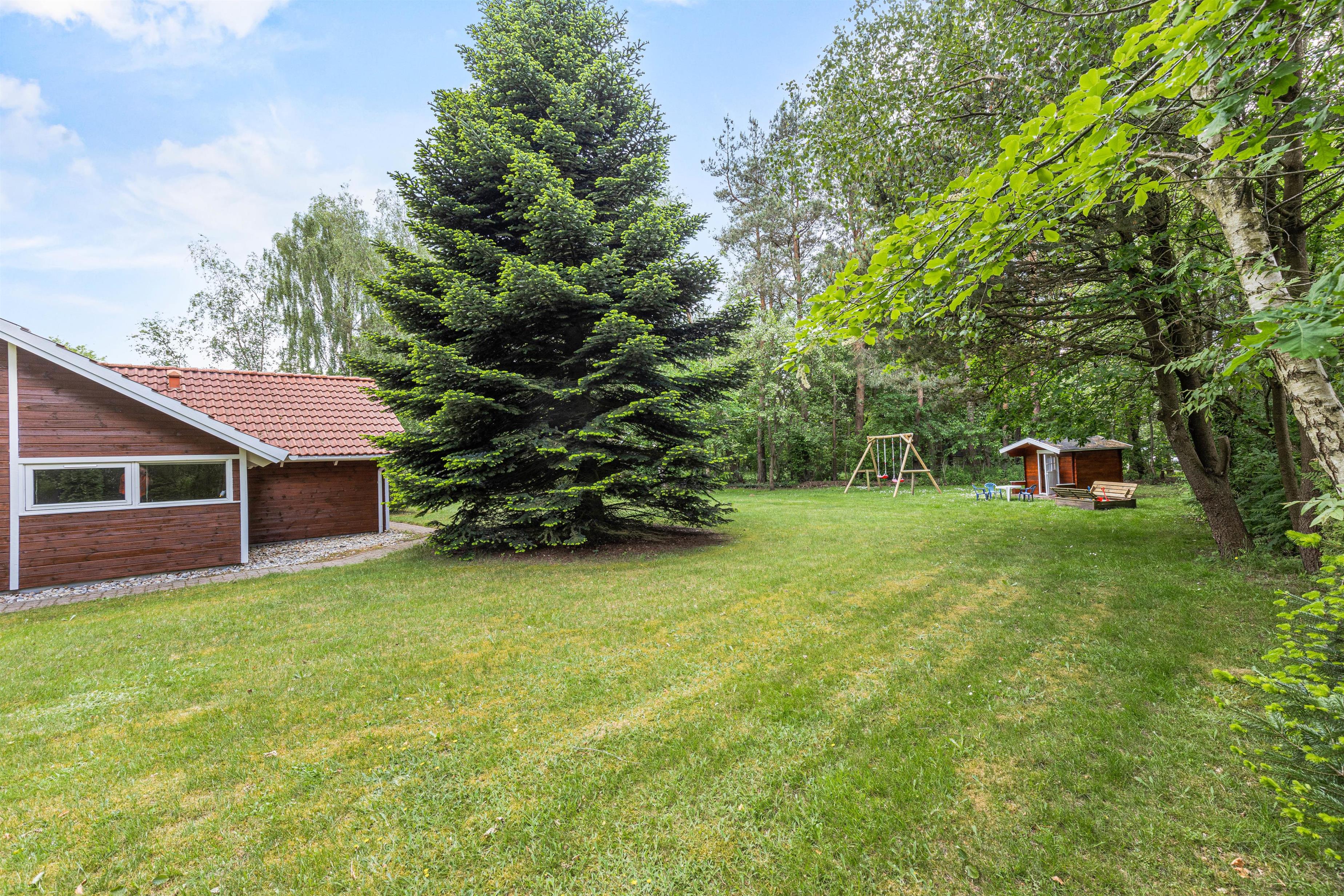 The spacious lawn offers plenty of room to relax in nature or enjoy various leisure activities.