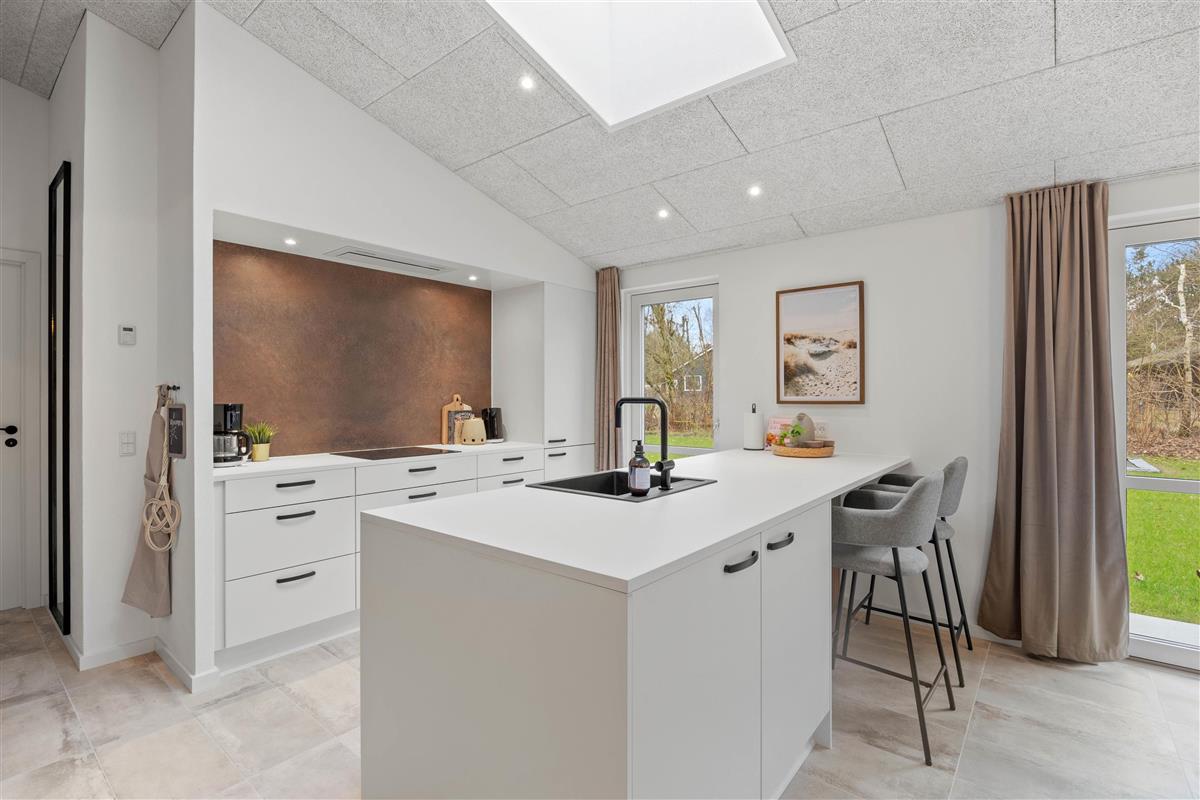 The outdoor areas surrounding the holiday home offer opportunities to enjoy the fresh air and beautiful surroundings of the Jegum holiday region. The covered terrace is ideal for starting your day with a cup of coffee or ending it with a glass of wine while enjoying views of the natural surroundings.