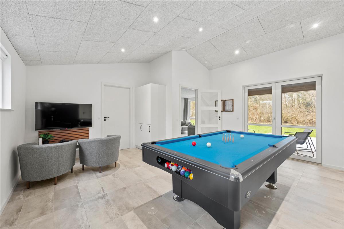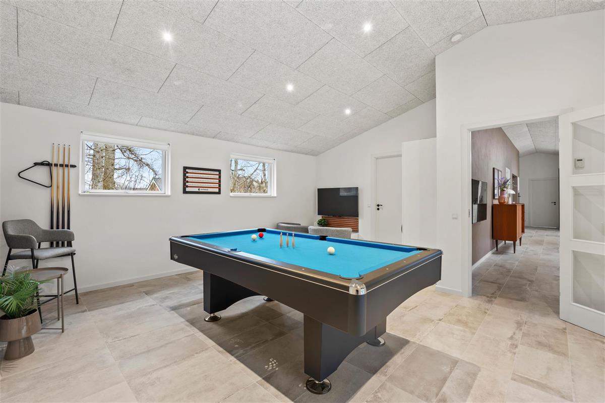 Adjacent to the kitchen area, you'll find the spacious games room with an inviting pool table, ensuring plenty of evening entertainment. It's the perfect spot to unwind over a game of pool. Table tennis is also available.
