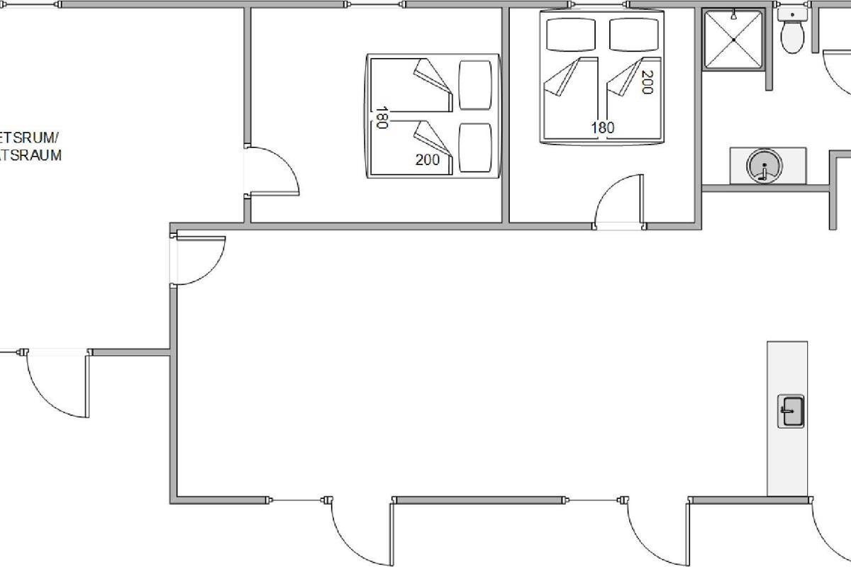 Two of the four spacious bedrooms can be accessed directly from the games room. Both feature comfortable double beds ensuring a restful night's sleep. The other two bedrooms are located next to the kitchen and in the hallway respectively. One offers a cosy double bed, while the other is furnished with two single beds.