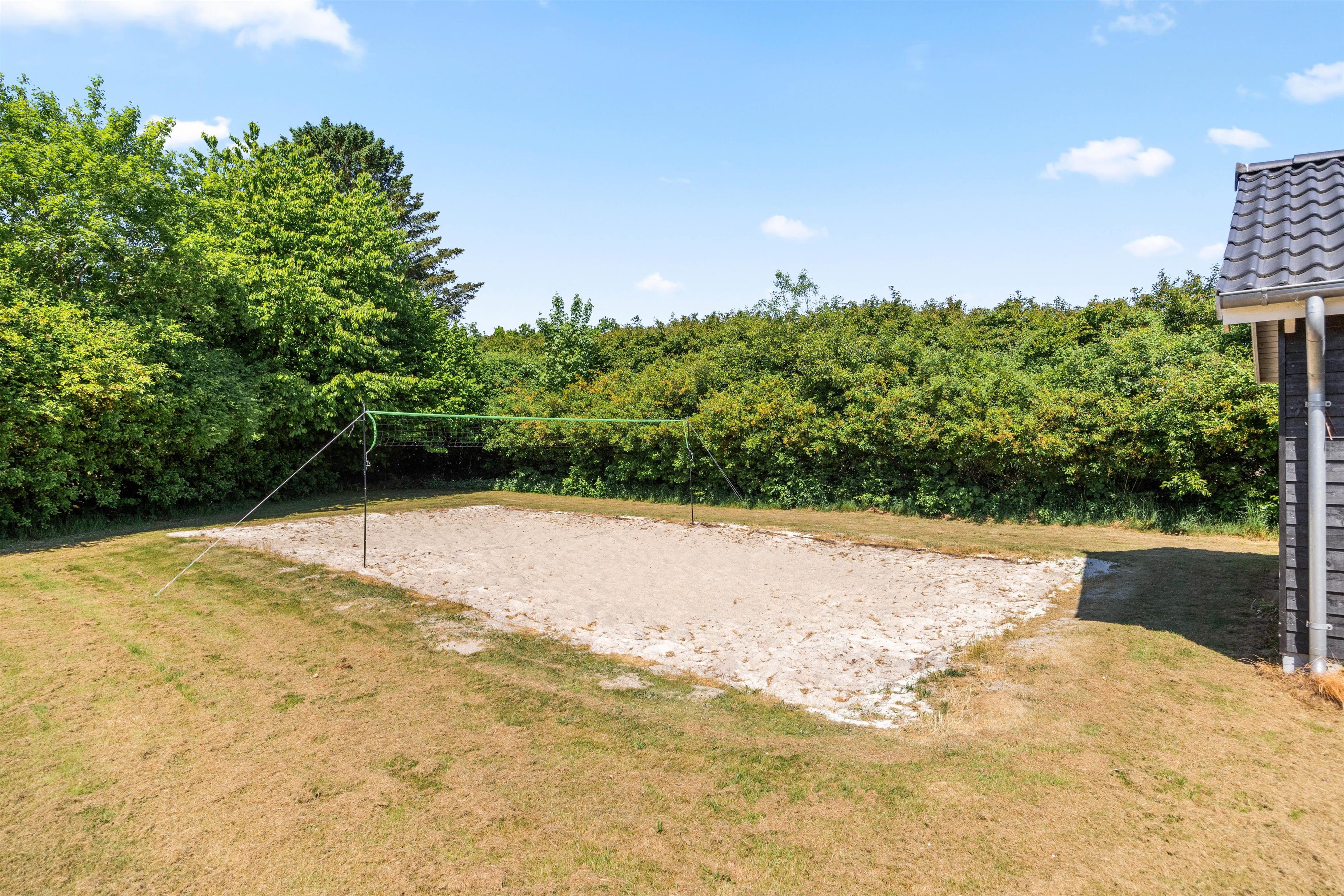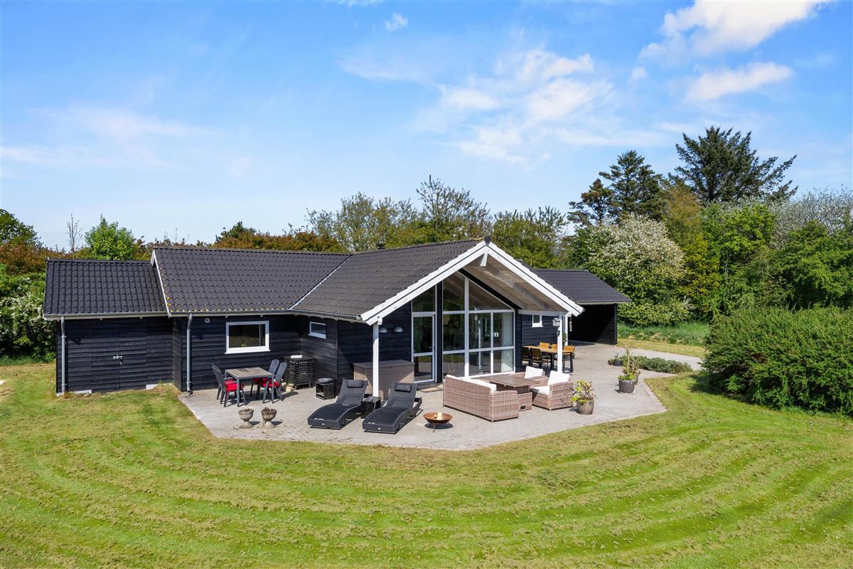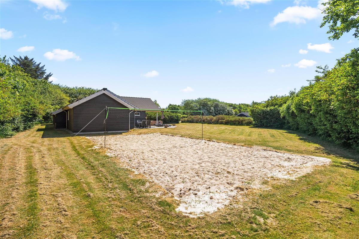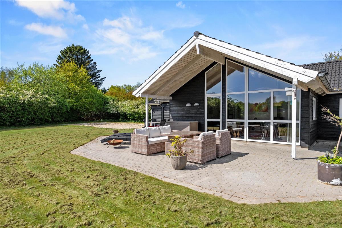 The outdoor area of your holiday home at Enebærvangen 7 offers a variety of options for relaxation and entertainment in the open air. The spacious open terrace invites you to spend cozy hours outside in the sunshine. Here you can enjoy the sun’s rays on comfortable loungers or start the day with a shared breakfast outdoors.