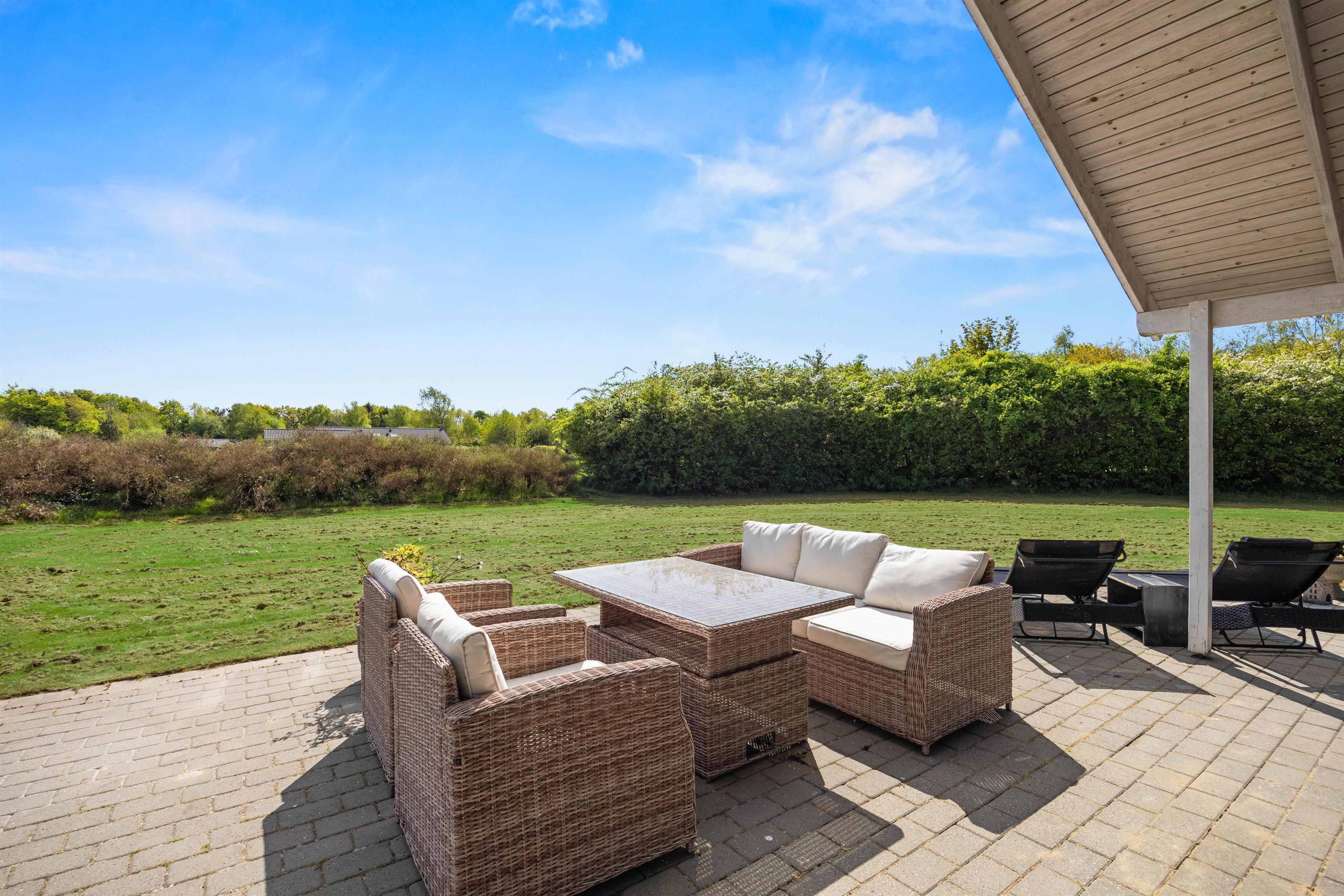 If you prefer something a bit more sheltered, the covered terrace offers a perfect alternative. Here you are independent of the weather and can breathe in the fresh Danish air even on rainy days without having to give up spending time outside. The terrace is the ideal spot for an evening barbecue or a relaxed glass of wine at sunset.