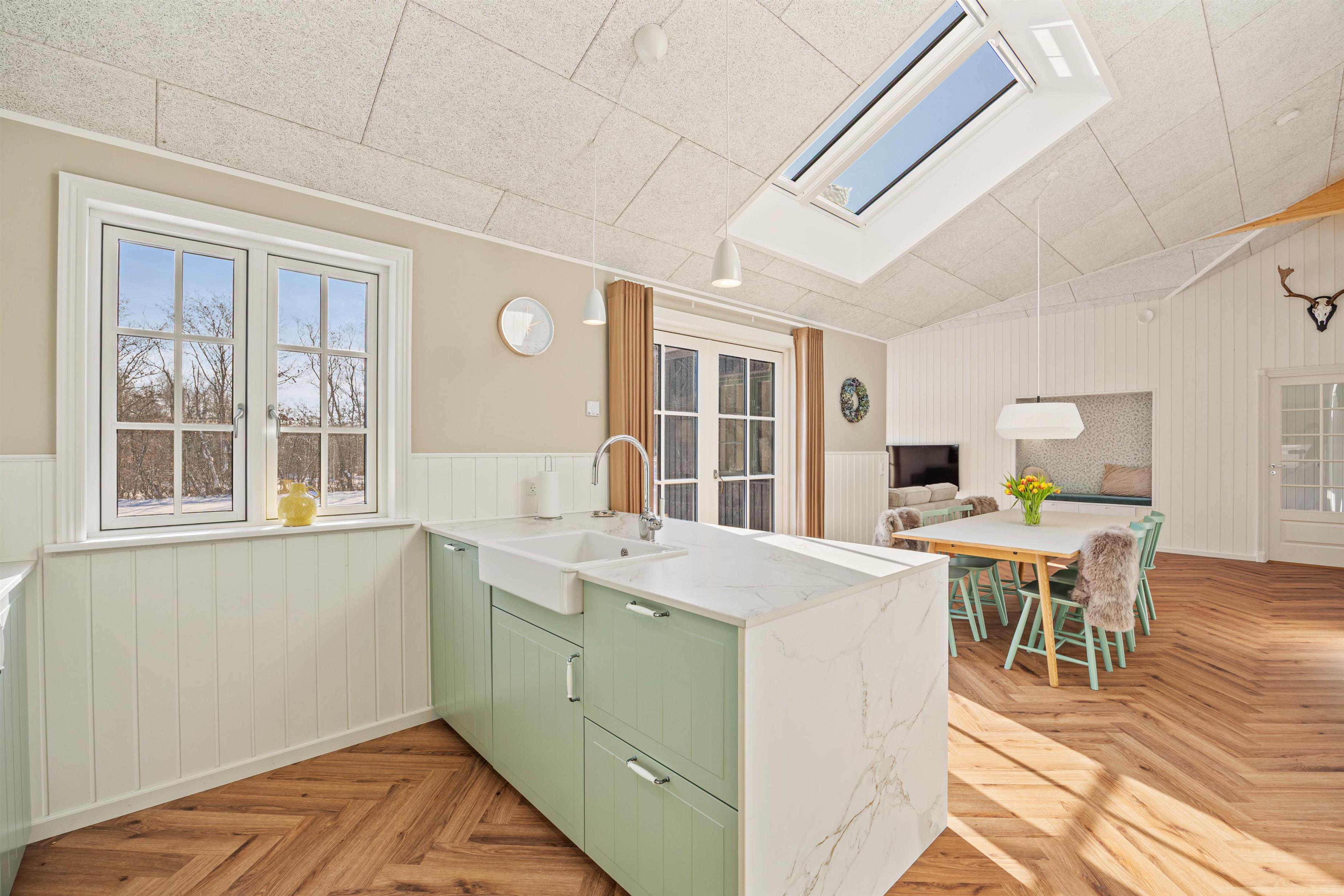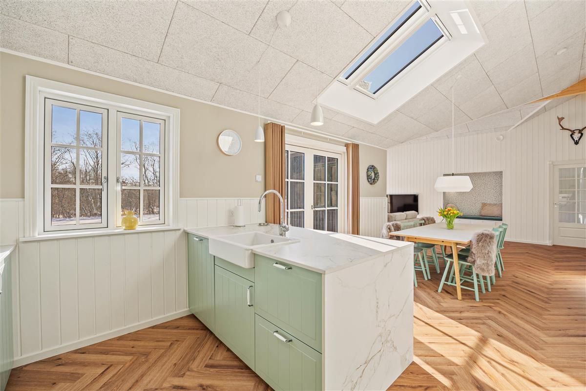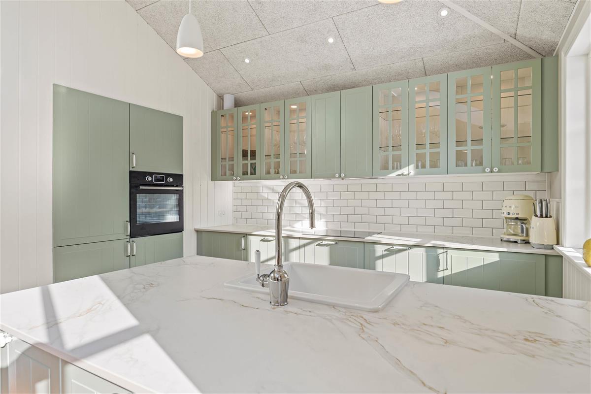 Upon entering this well-equipped summer house, you’ll immediately notice a layout designed for cozy moments, fun, and relaxation. In the activity room, the family can gather for a game of table tennis or pool – perfect for friendly competitions and laughter-filled moments. The kitchen, designed for conversation and togetherness, makes cooking a pleasure, and with the dishwasher, cleaning up is quick and easy.
